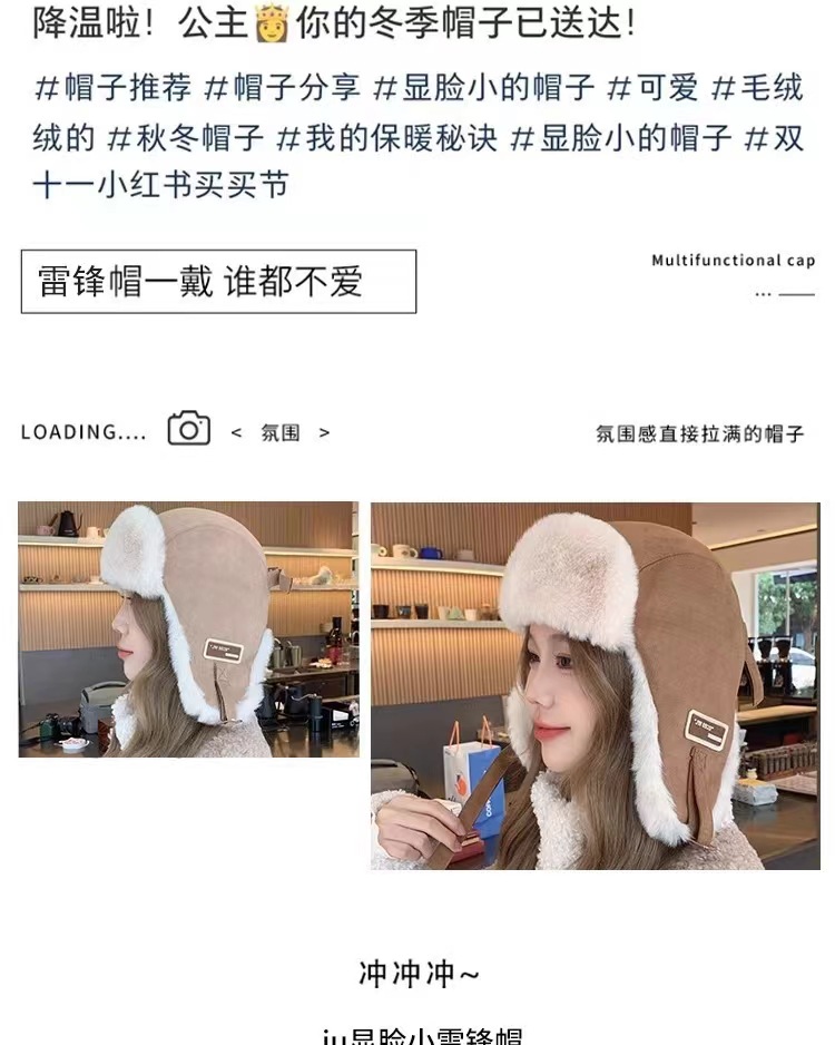 새로운 겨울 방한 및 따뜻한 Lei Feng 모자 여성 복고풍 패션 사이클링 귀 보호 남성 플러스 벨벳 두꺼운 모자 도매스토어 가기