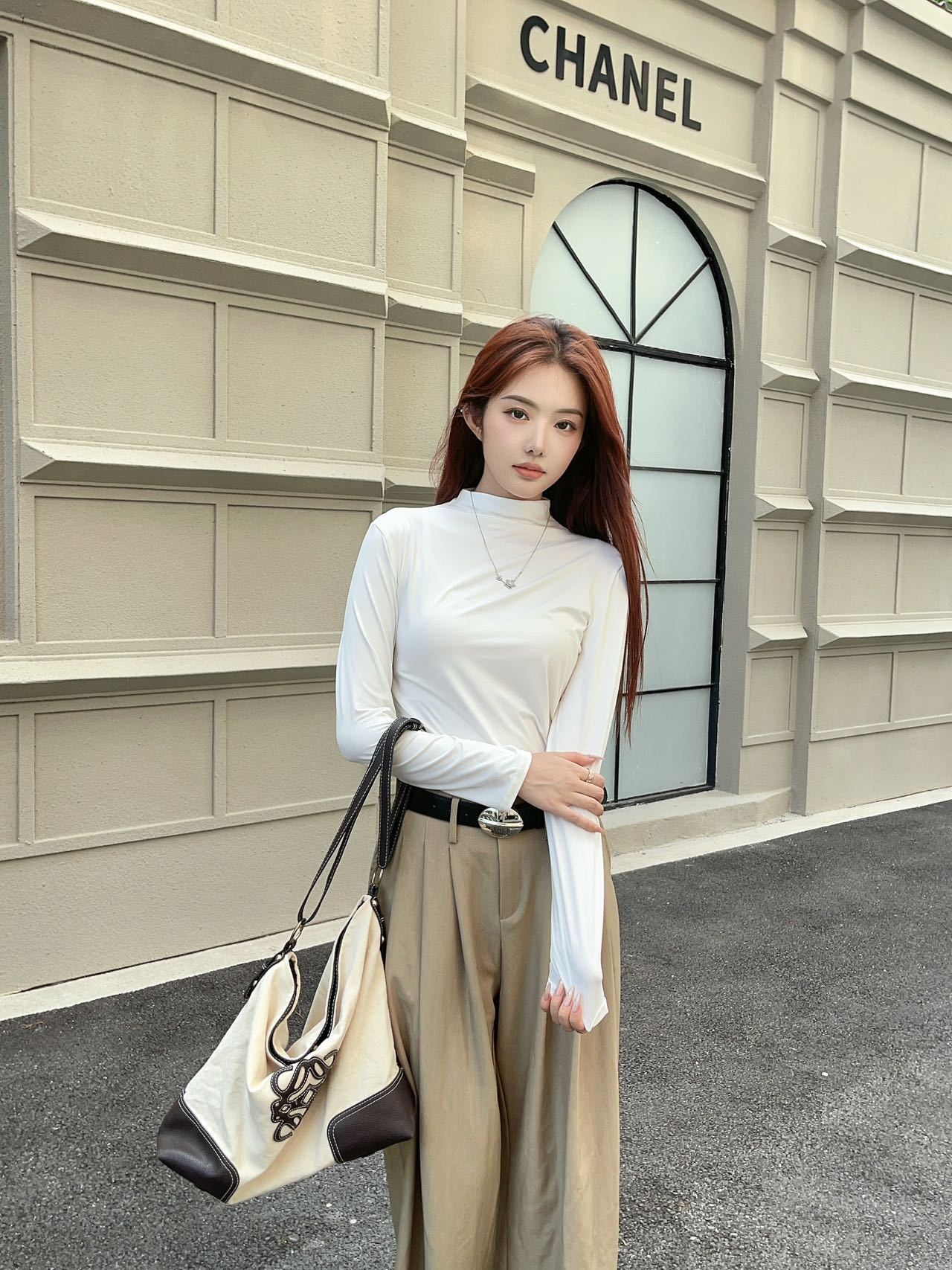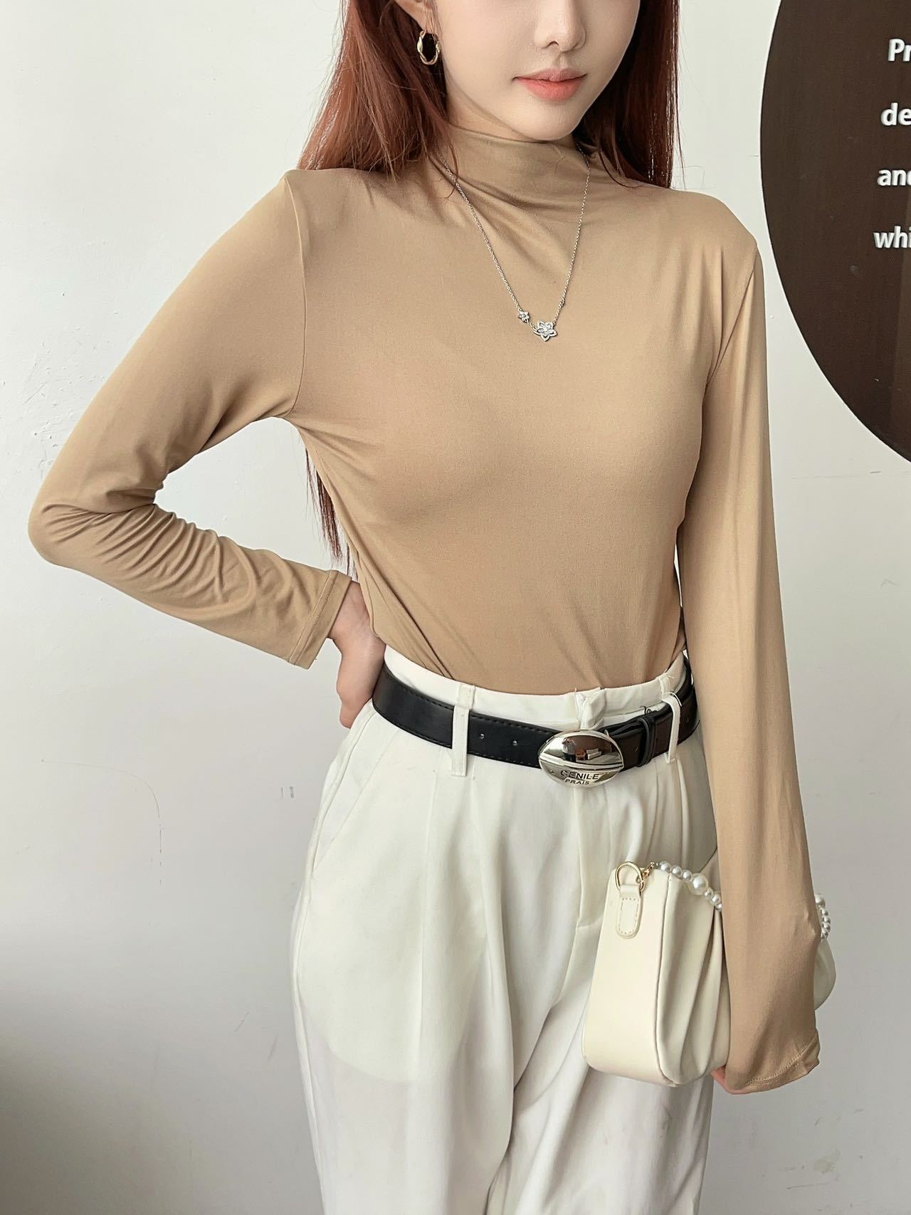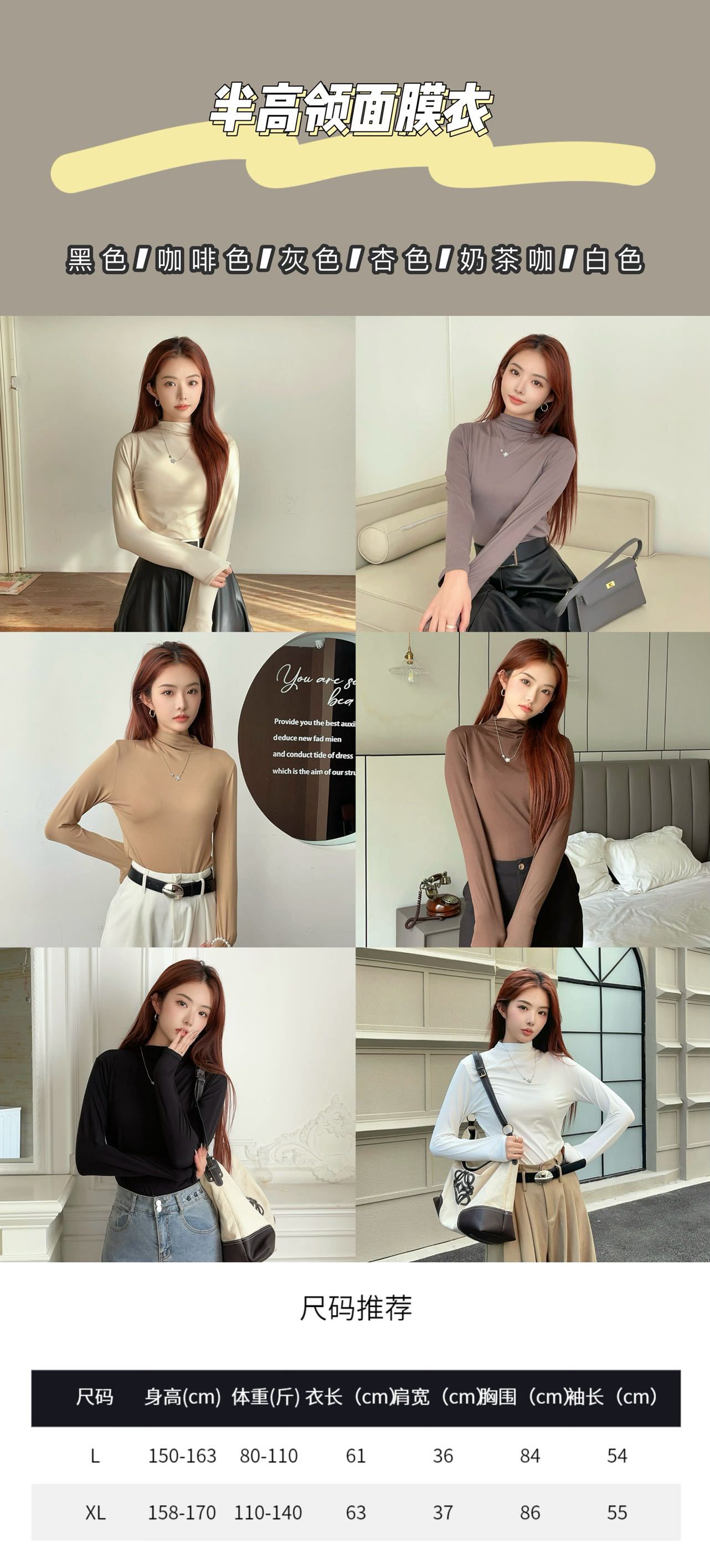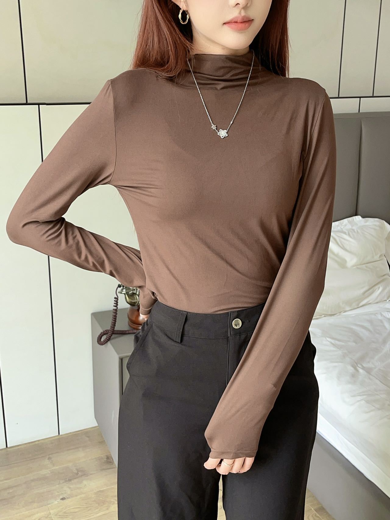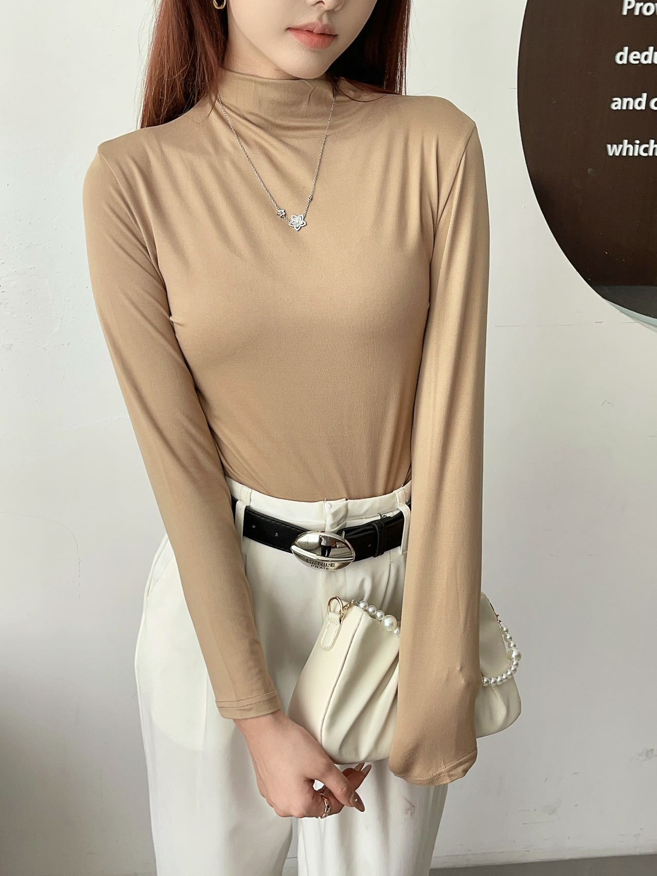 여성용 9컬러 하프 터틀넥 마스크 베이스 셔츠 봄 가을 모달 소재 피부 친화적 슬림핏 다용도 상의 패셔너블하고 다재다능한스토어 가기