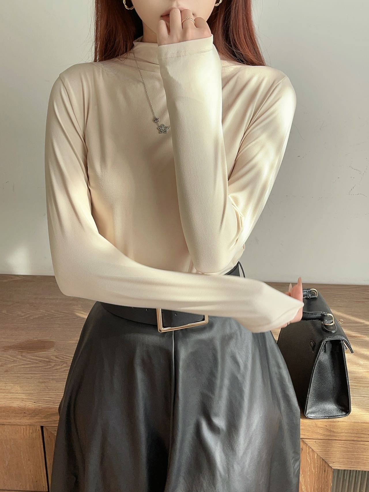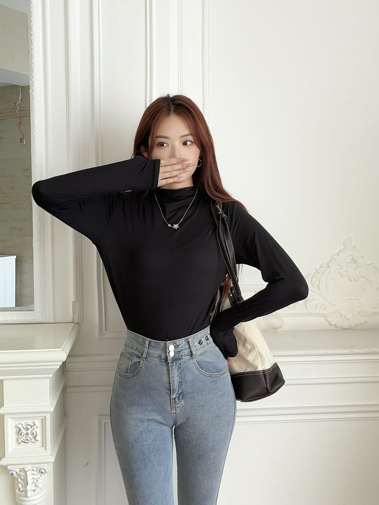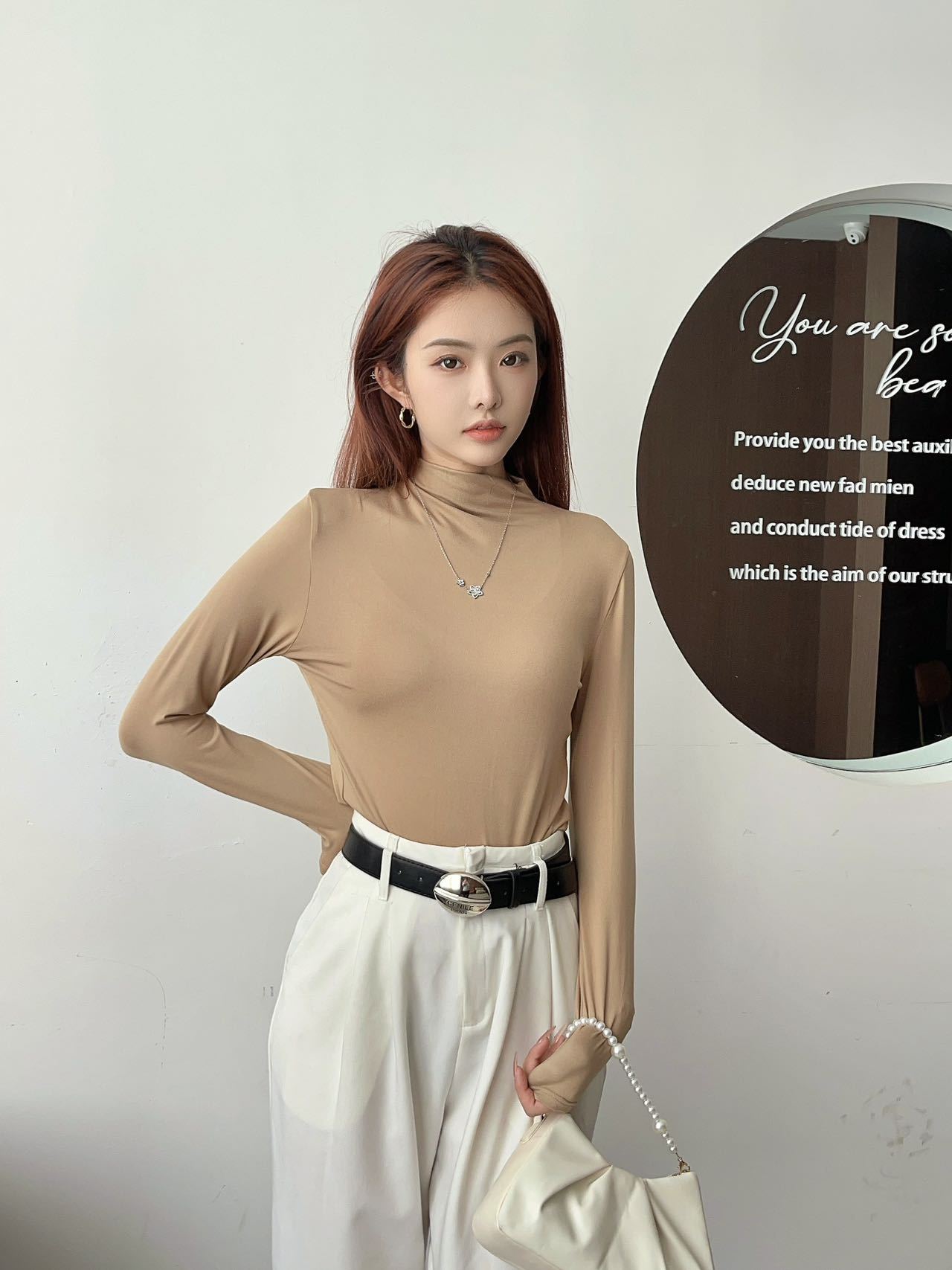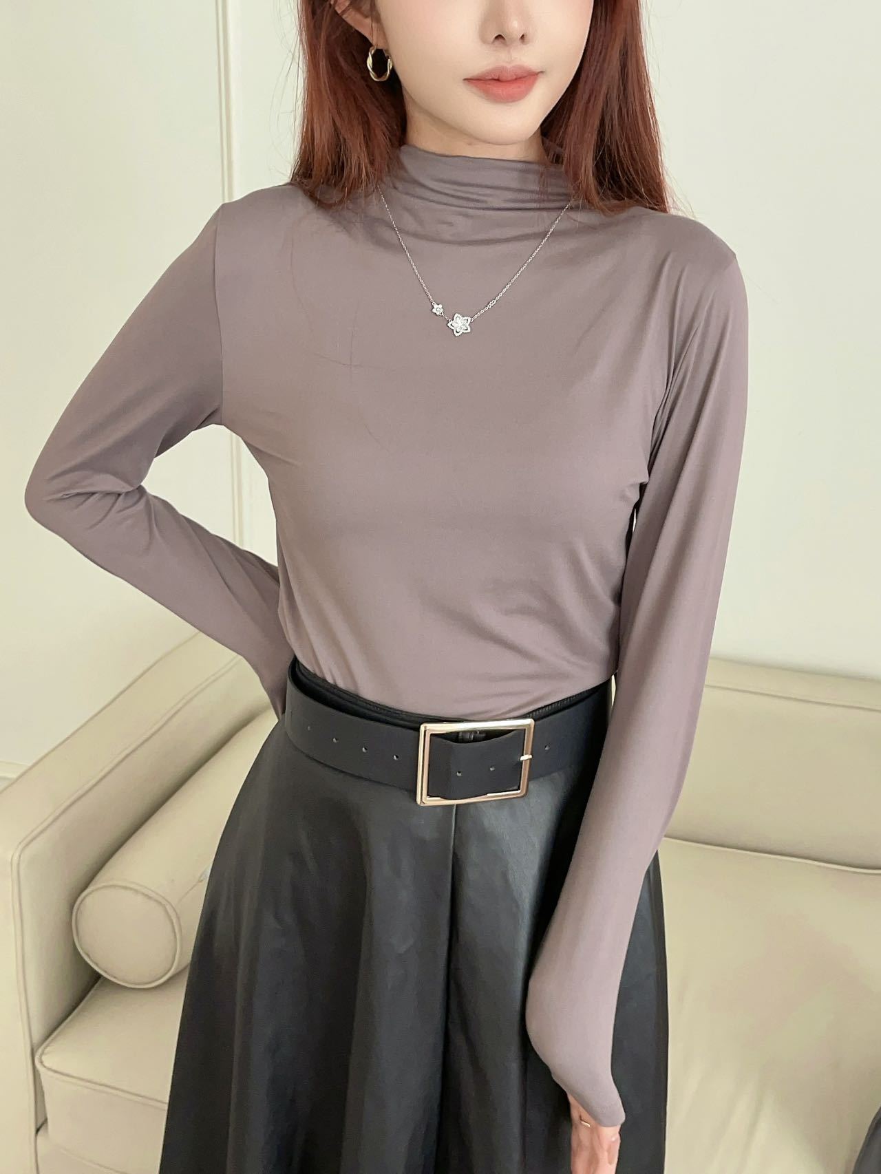 여성용 9컬러 하프 터틀넥 마스크 베이스 셔츠 봄 가을 모달 소재 피부 친화적 슬림핏 다용도 상의 패셔너블하고 다재다능한스토어 가기