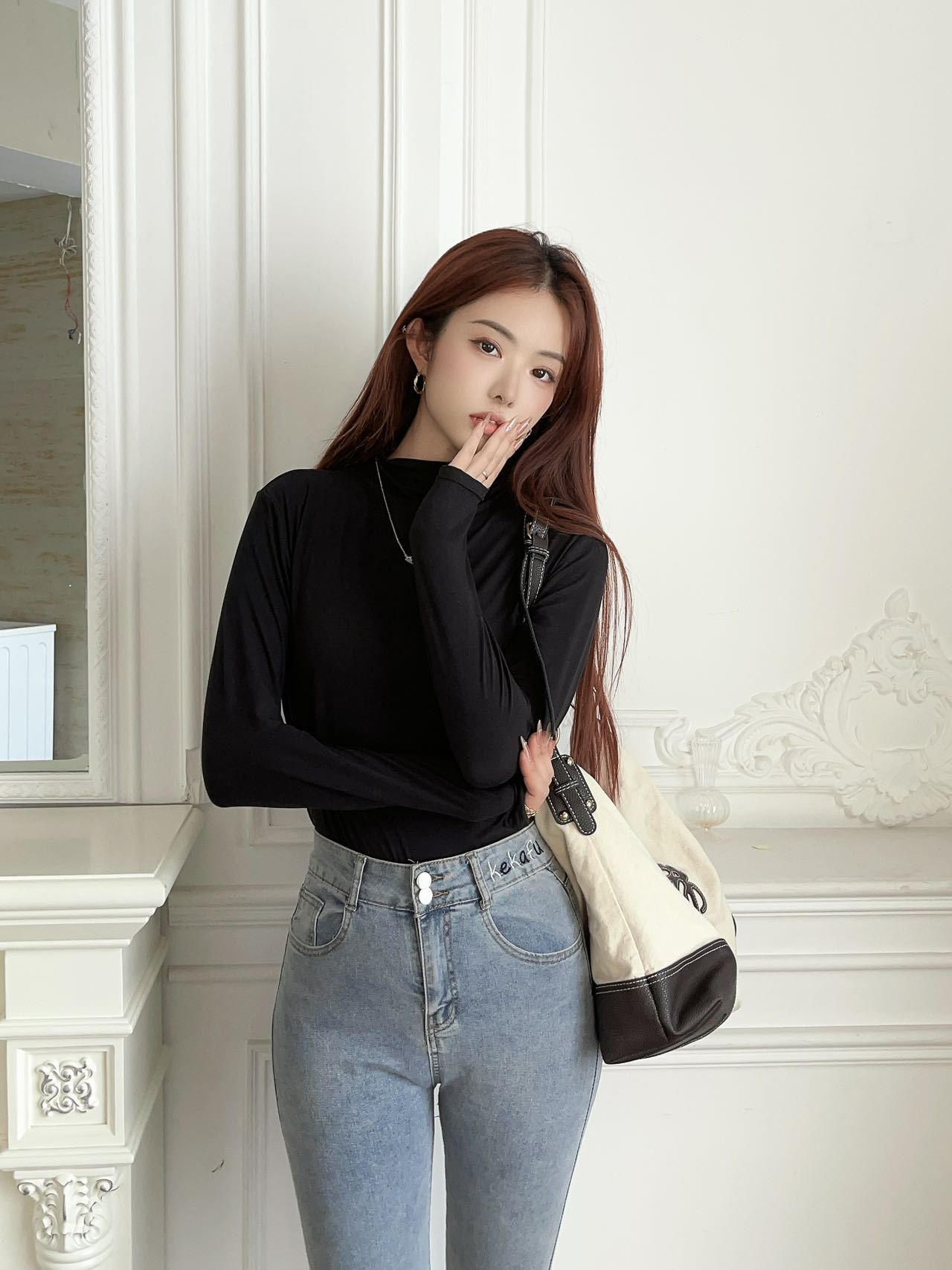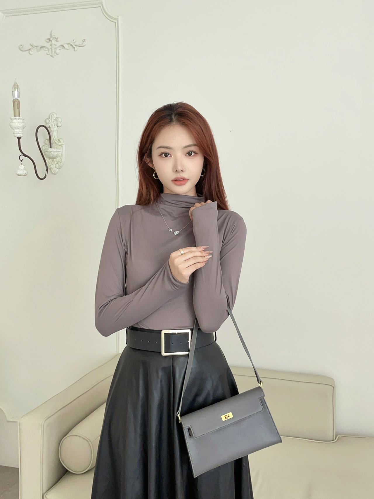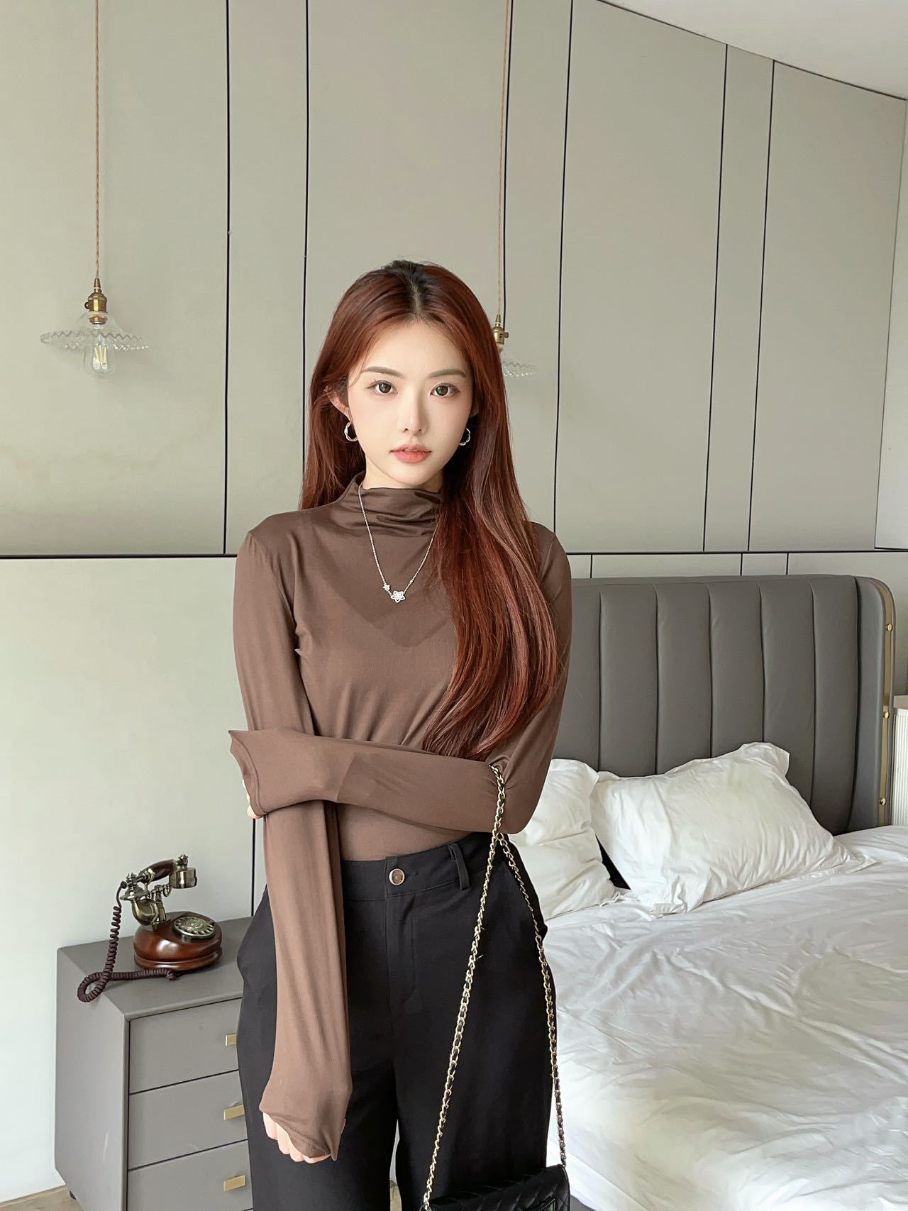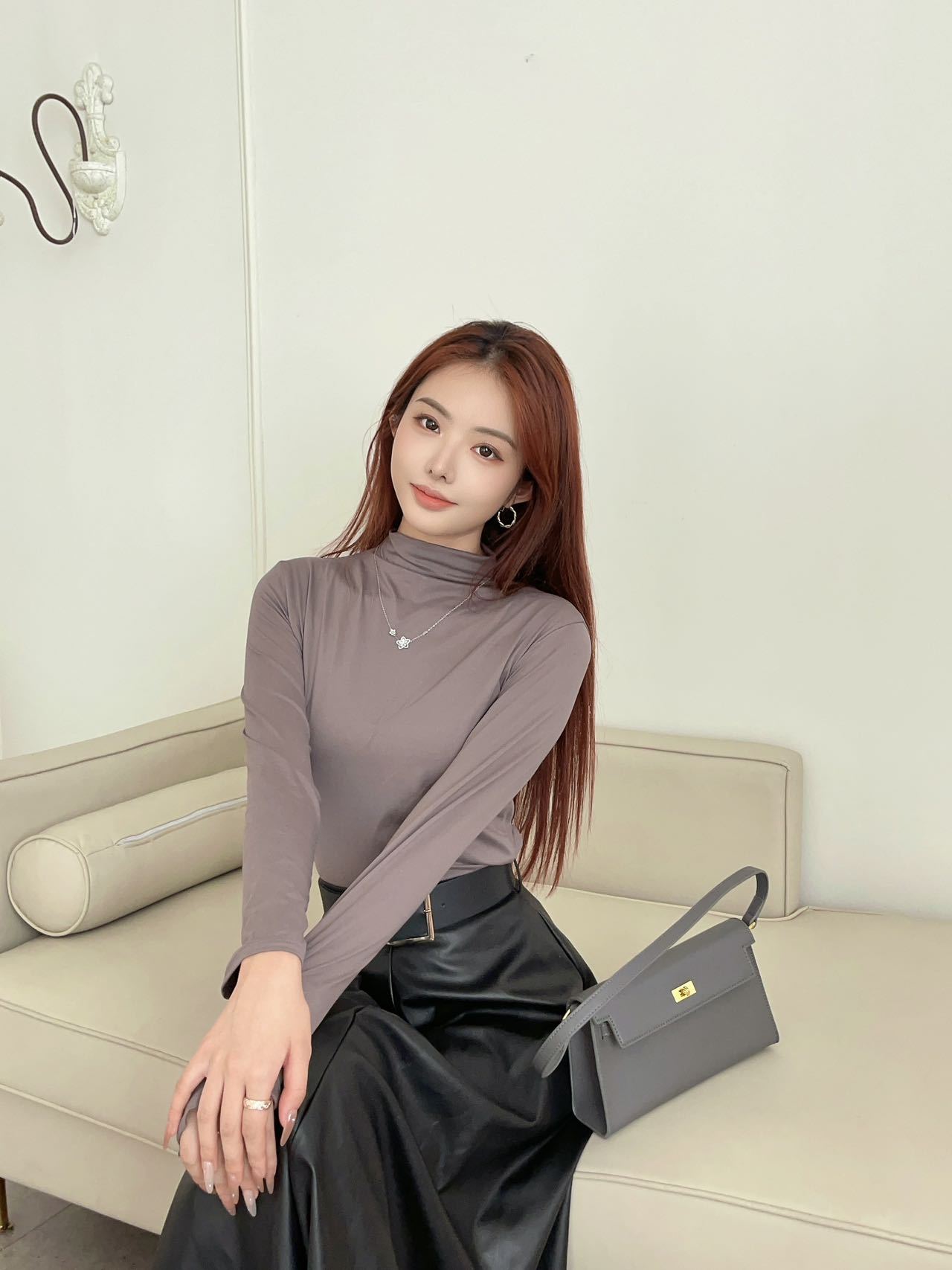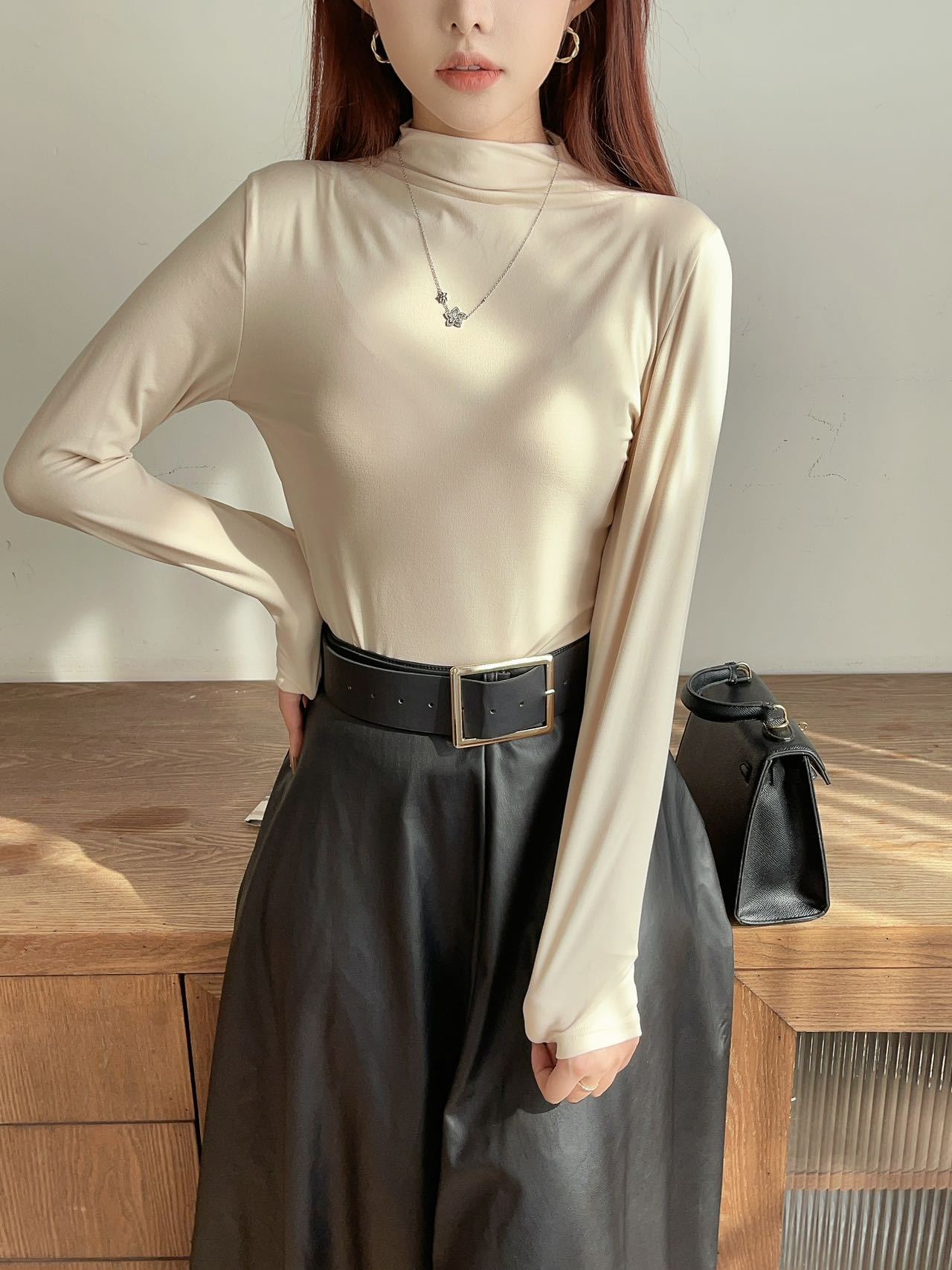 여성용 9컬러 하프 터틀넥 마스크 베이스 셔츠 봄 가을 모달 소재 피부 친화적 슬림핏 다용도 상의 패셔너블하고 다재다능한스토어 가기
