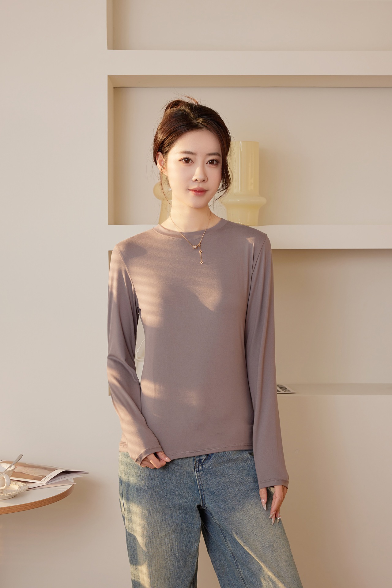 여성용 9컬러 하프 터틀넥 마스크 베이스 셔츠 봄 가을 모달 소재 피부 친화적 슬림핏 다용도 상의 패셔너블하고 다재다능한