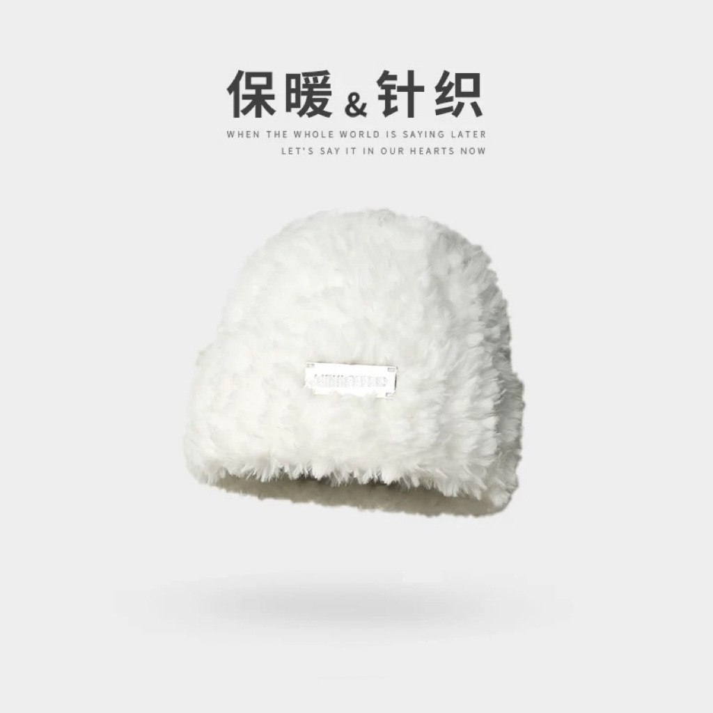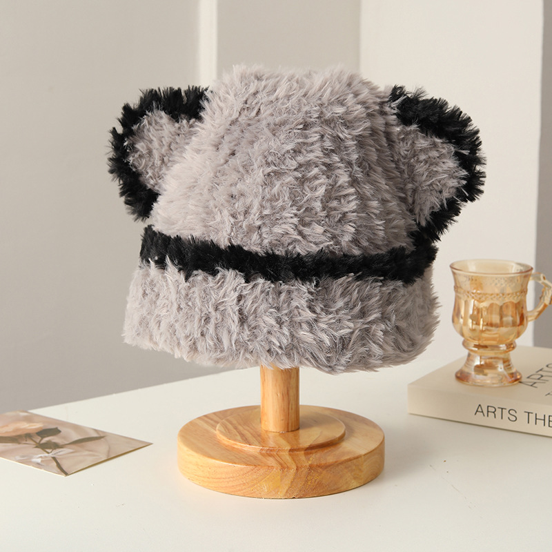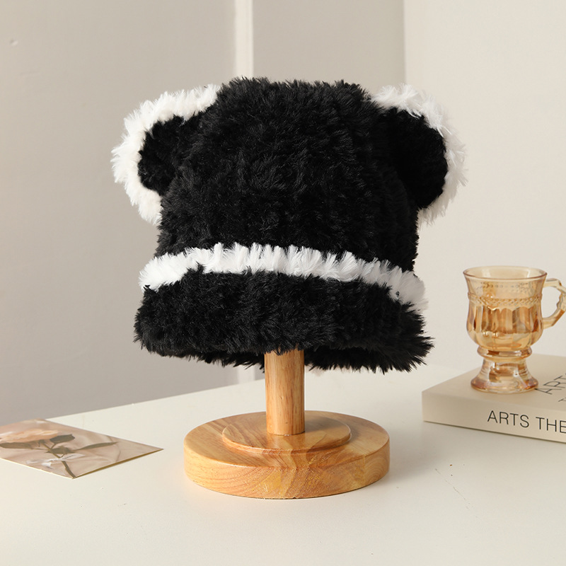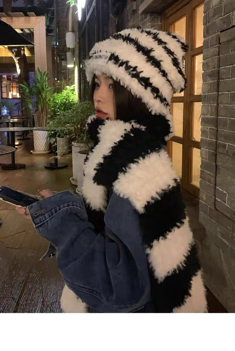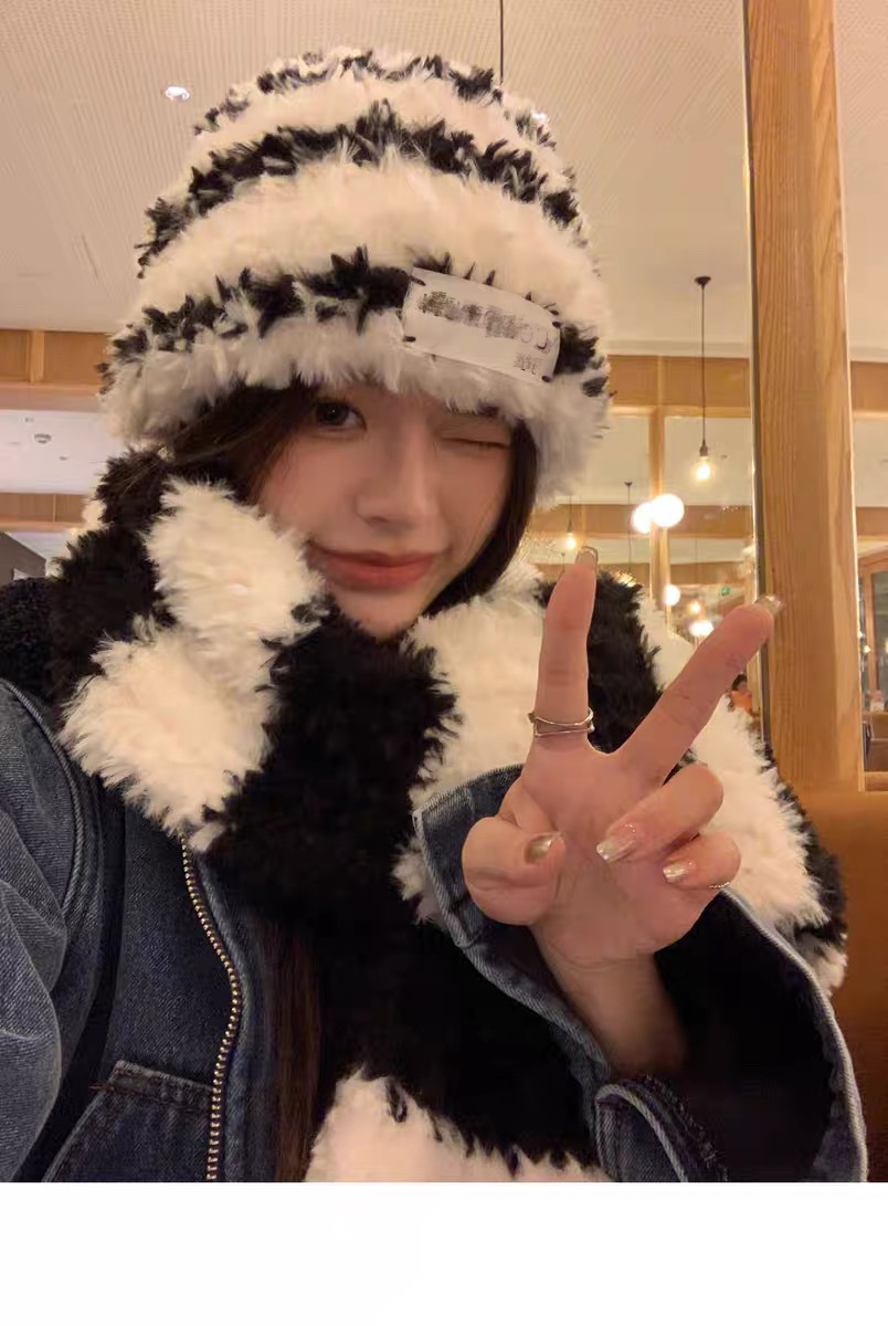 가을과 겨울 따뜻한 큰 머리는 니트 양모 모자 여성의 새로운 귀 보호 느슨한 줄무늬 솜털 모자 얼굴 작은 차가운 모자스토어 가기
