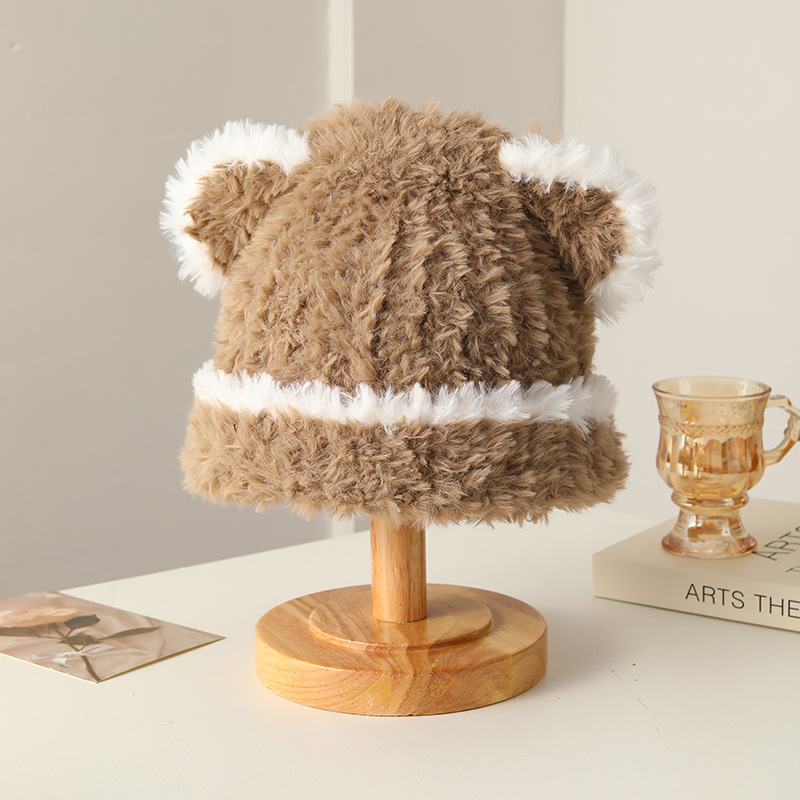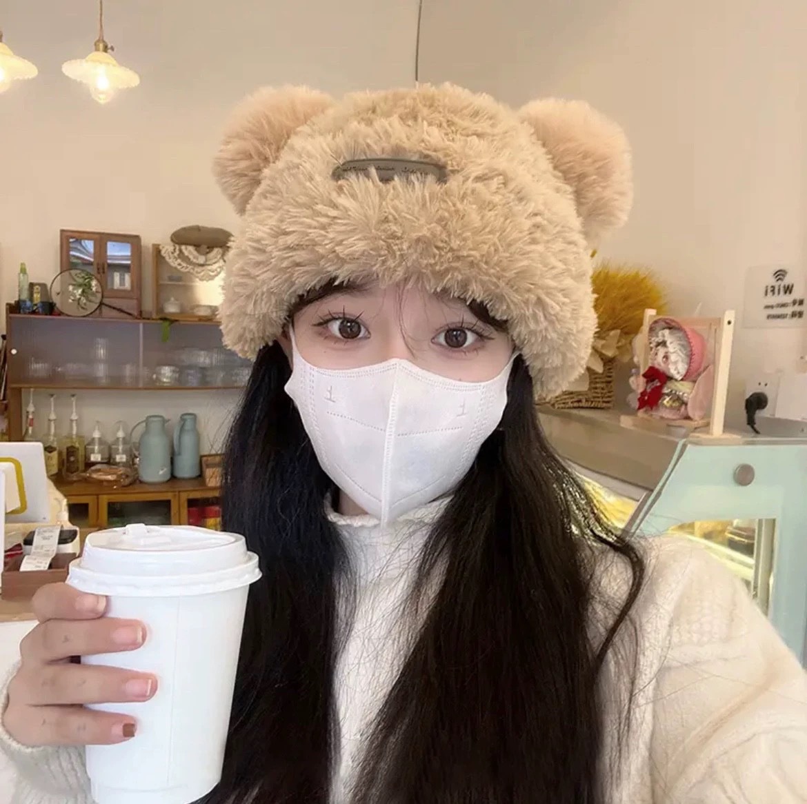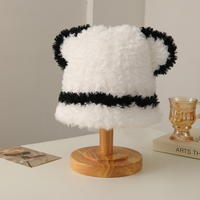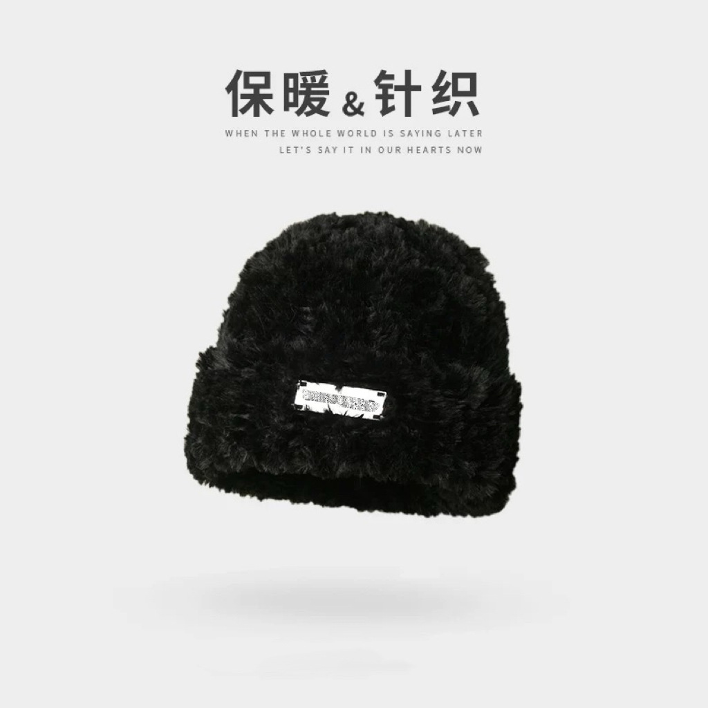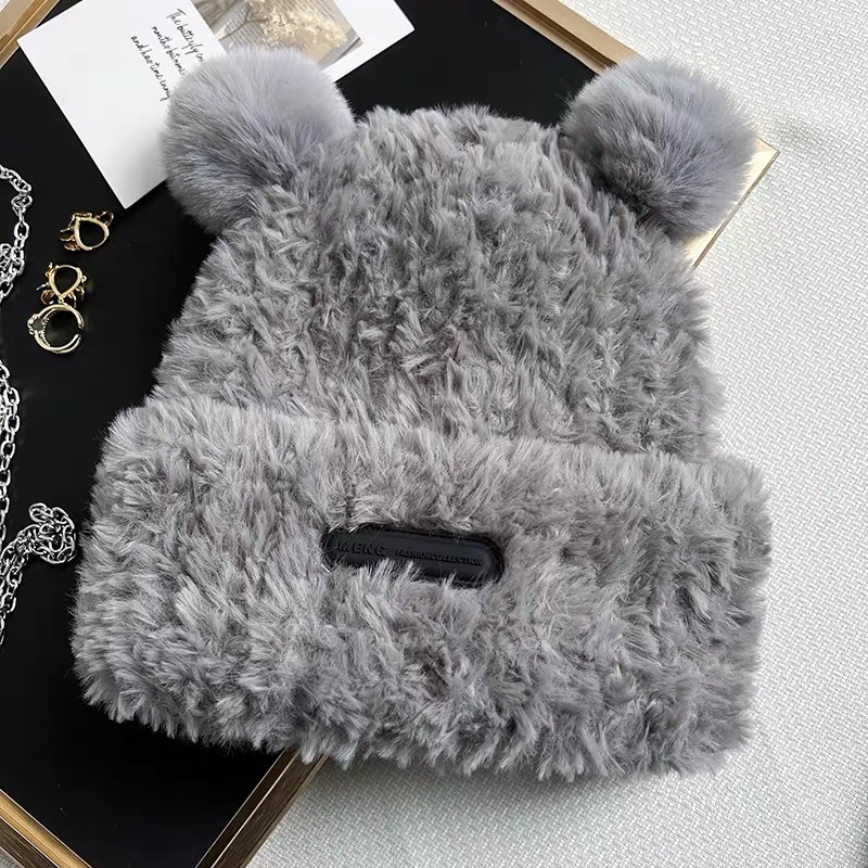 가을과 겨울 따뜻한 큰 머리는 니트 양모 모자 여성의 새로운 귀 보호 느슨한 줄무늬 솜털 모자 얼굴 작은 차가운 모자스토어 가기