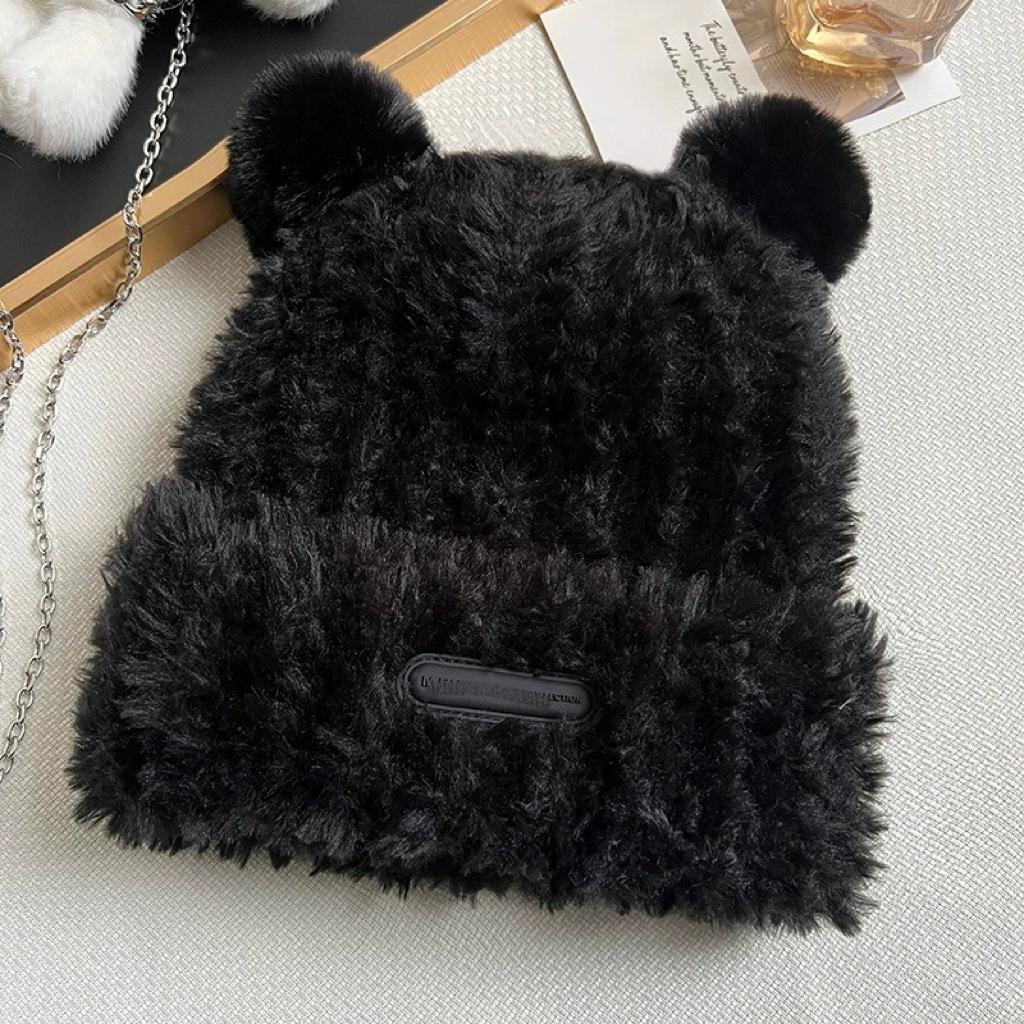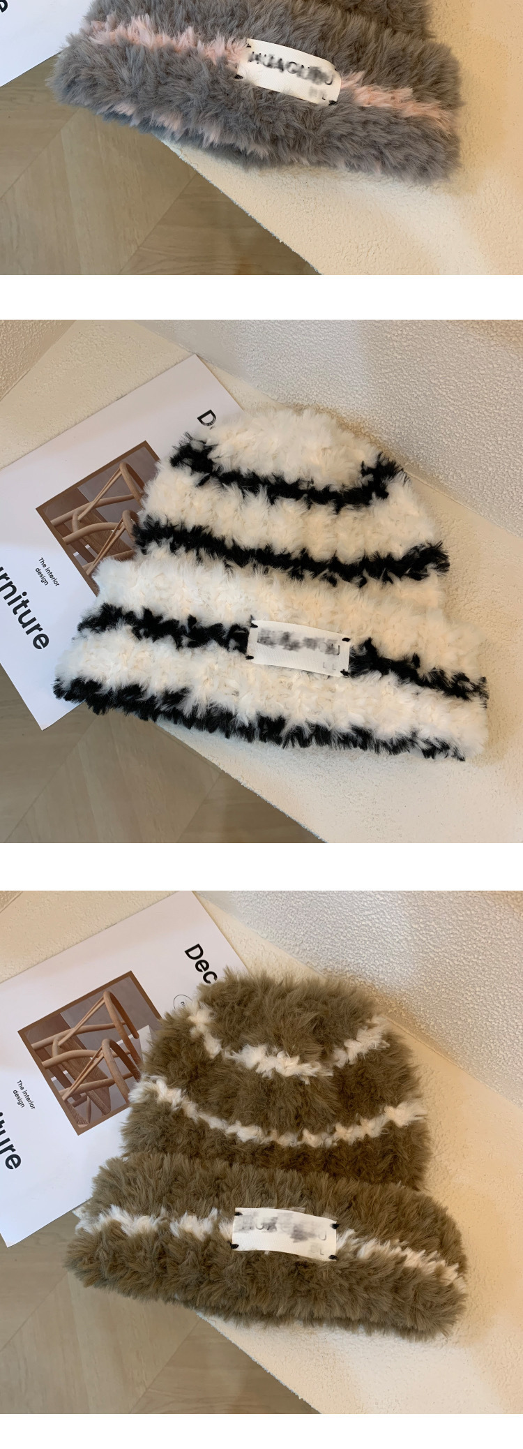 가을과 겨울 따뜻한 큰 머리는 니트 양모 모자 여성의 새로운 귀 보호 느슨한 줄무늬 솜털 모자 얼굴 작은 차가운 모자
