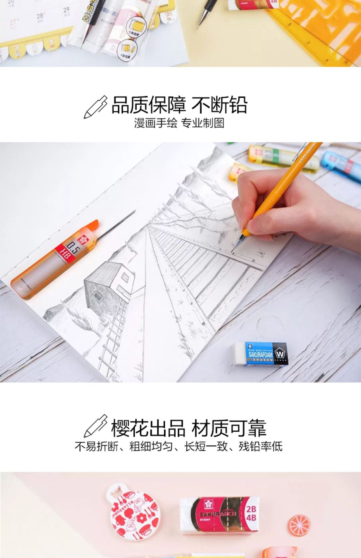 일본 사쿠라 사쿠라 액티브 연필 XS-125/7/9 드로잉 시험 자동 리드 만화 지우개 학생스토어 가기