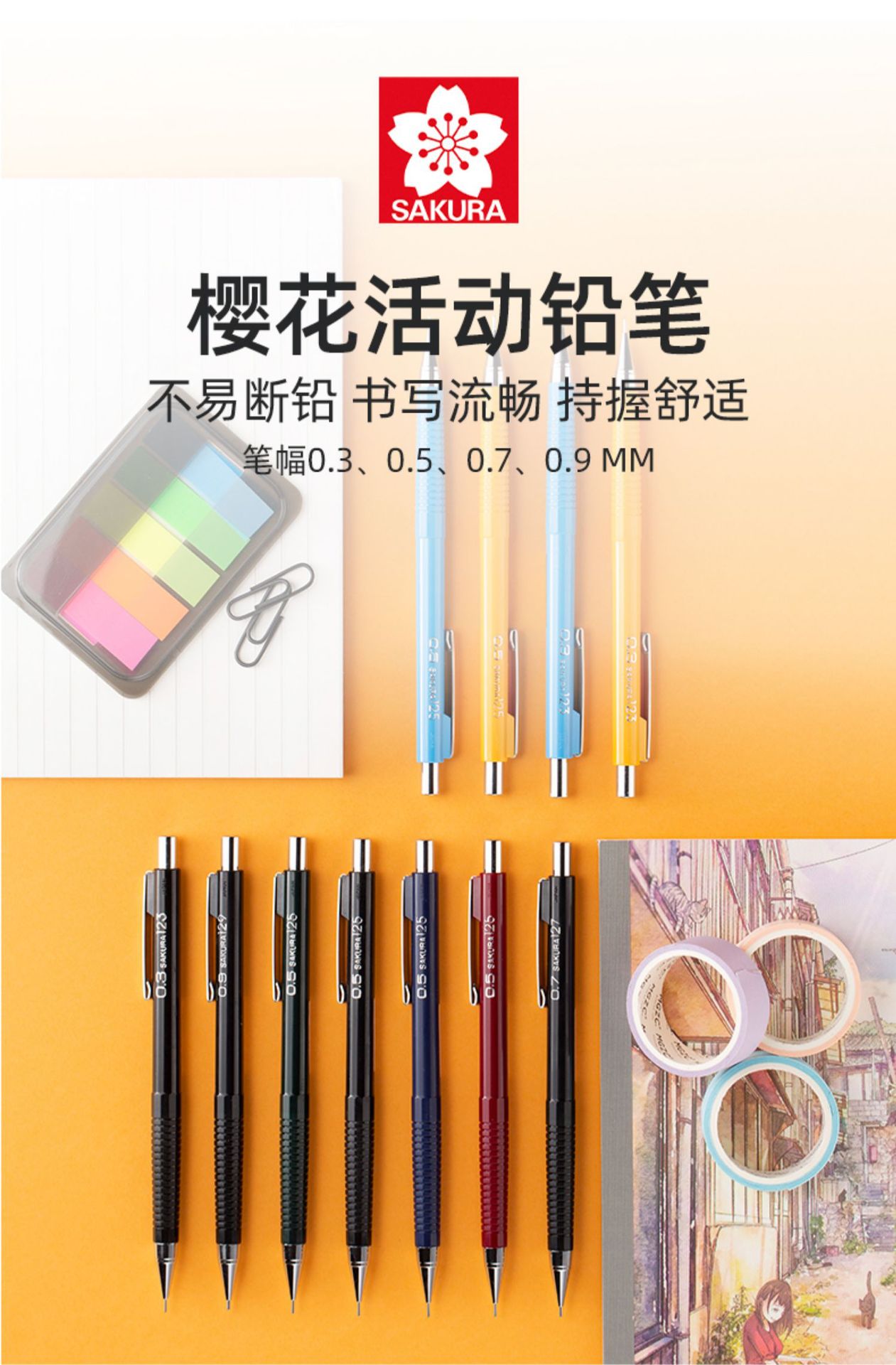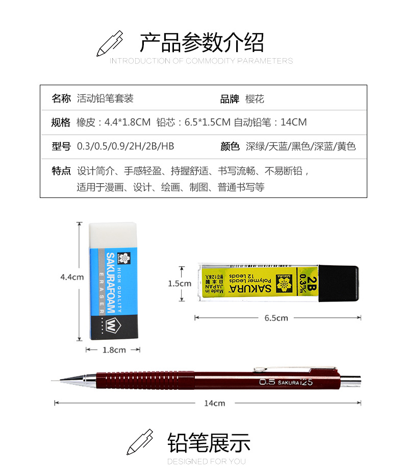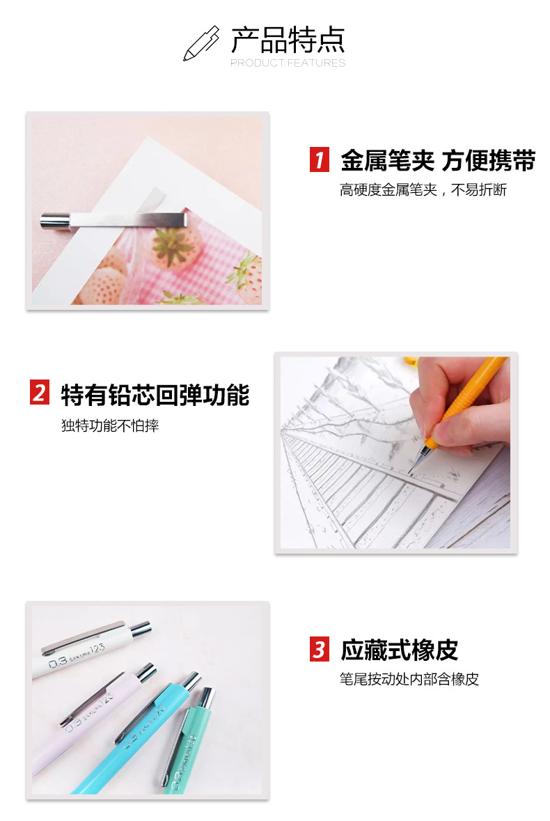 일본 사쿠라 사쿠라 액티브 연필 XS-125/7/9 드로잉 시험 자동 리드 만화 지우개 학생
