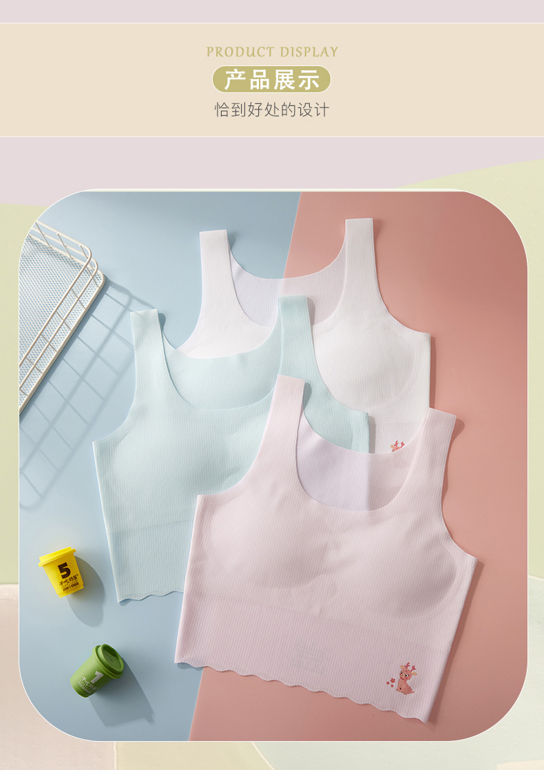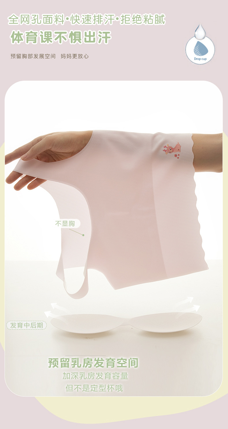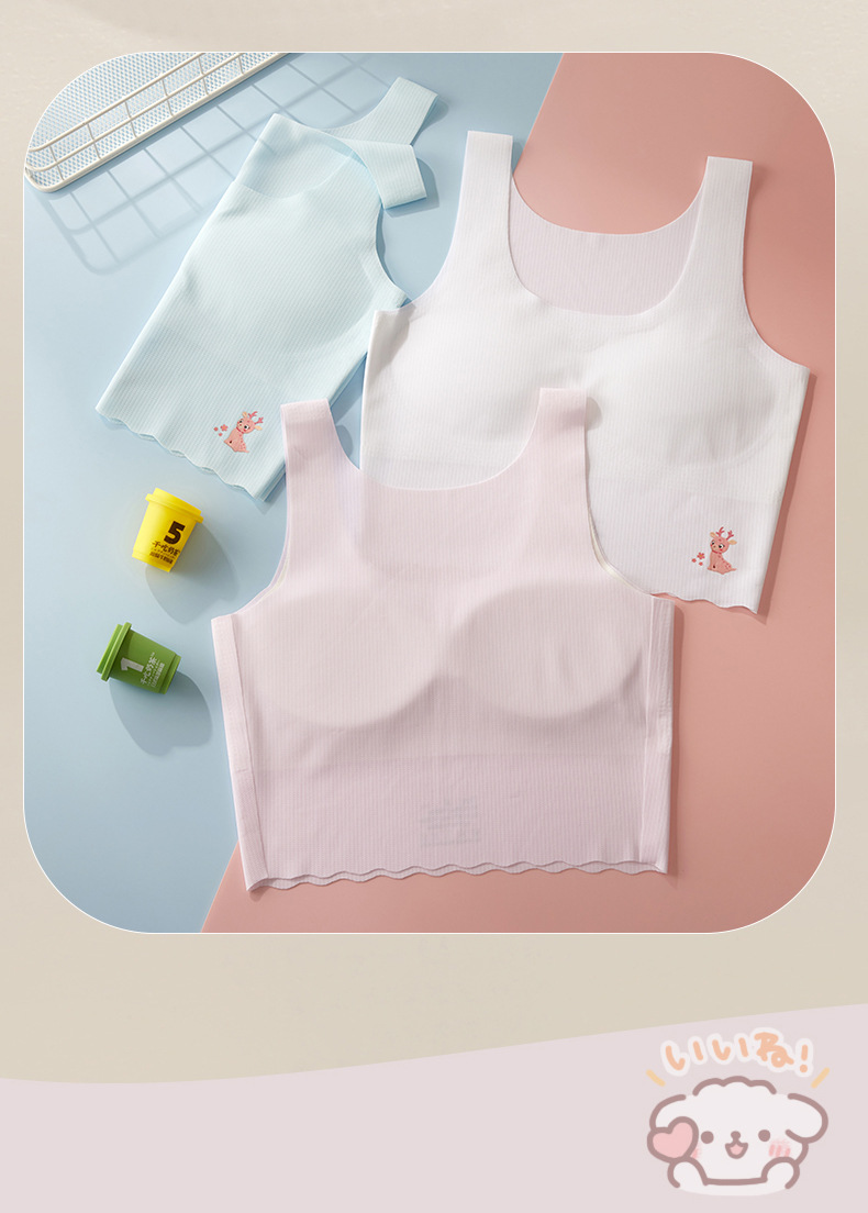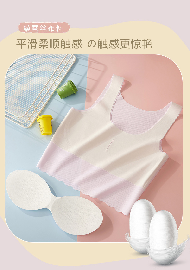 학생 '추적없는 아이스 실크 여아 속옷 발달 어린이 조끼 가슴 패드 안티 범프 10-18 세스토어 가기