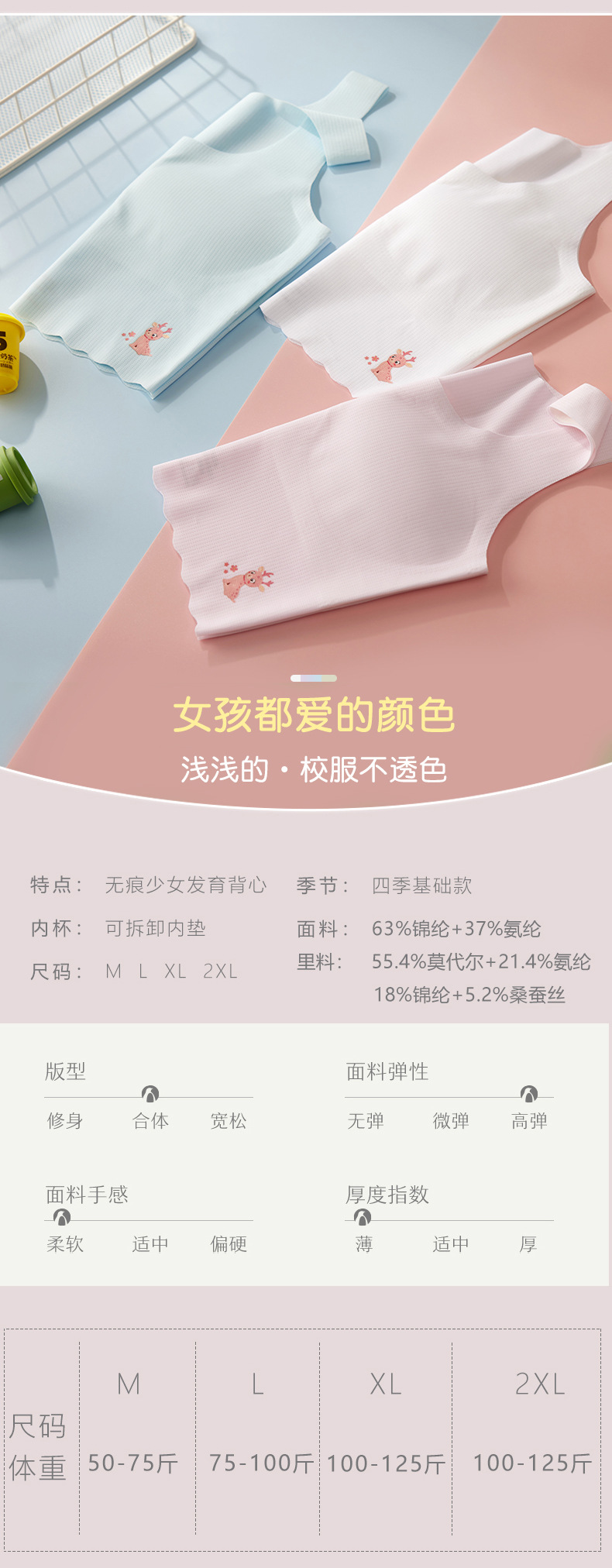 학생 '추적없는 아이스 실크 여아 속옷 발달 어린이 조끼 가슴 패드 안티 범프 10-18 세