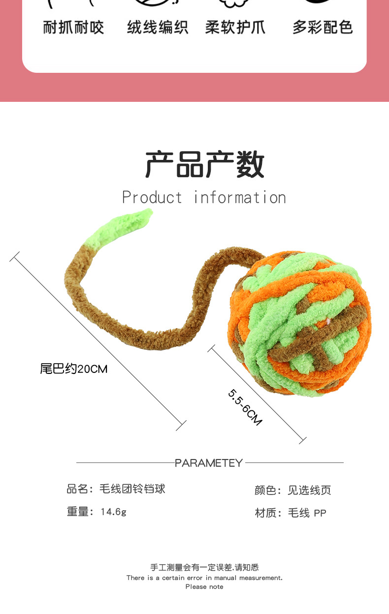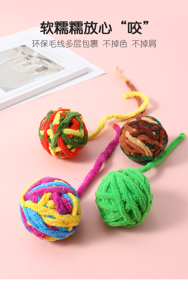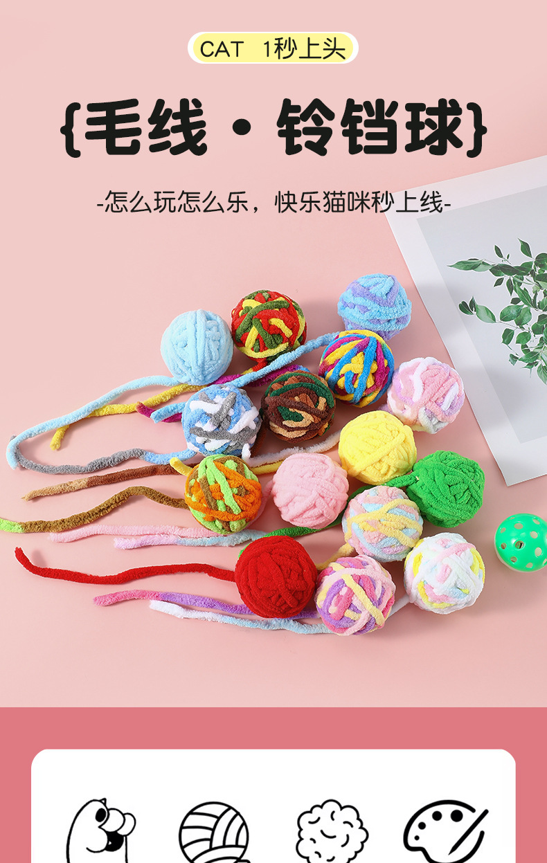 국경 간 고양이 장난감 공 봉제 벨 공 고양이 장난감 애완 동물 물린 방지 대화 형 양모 고양이 공 도매스토어 가기