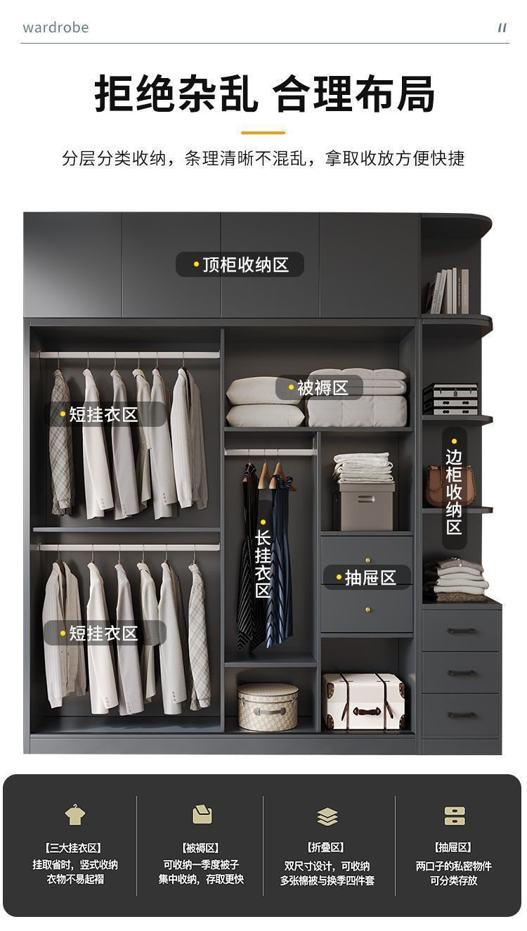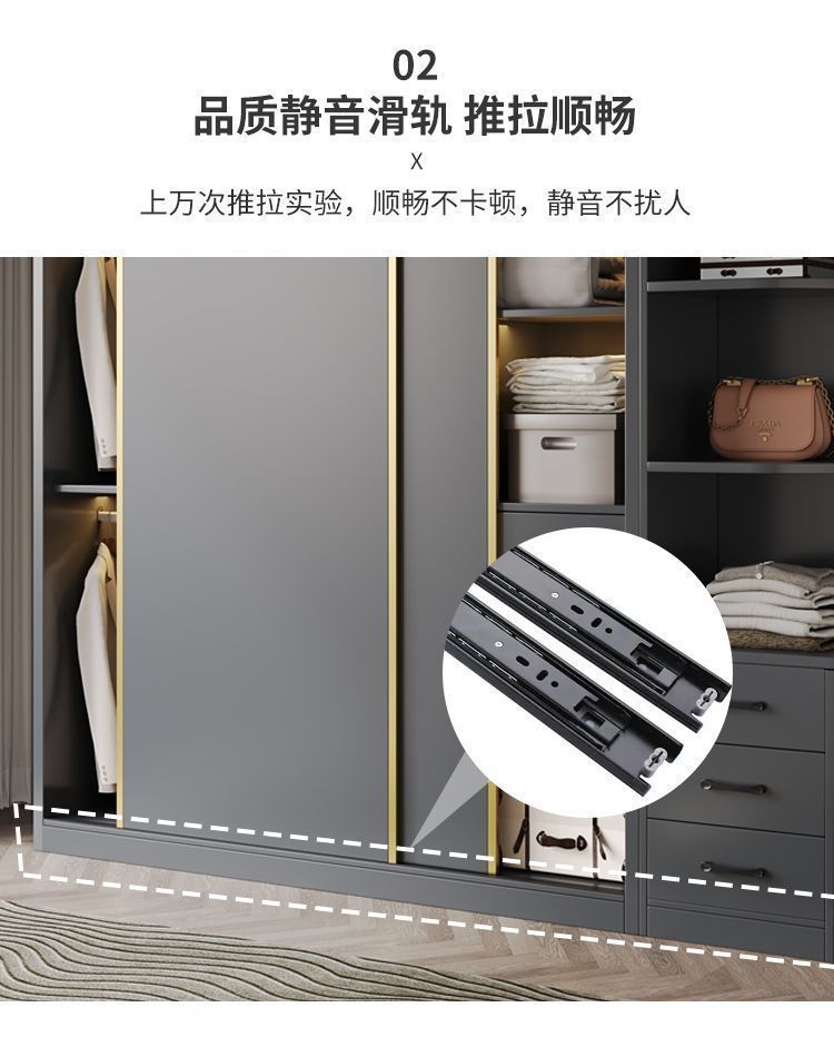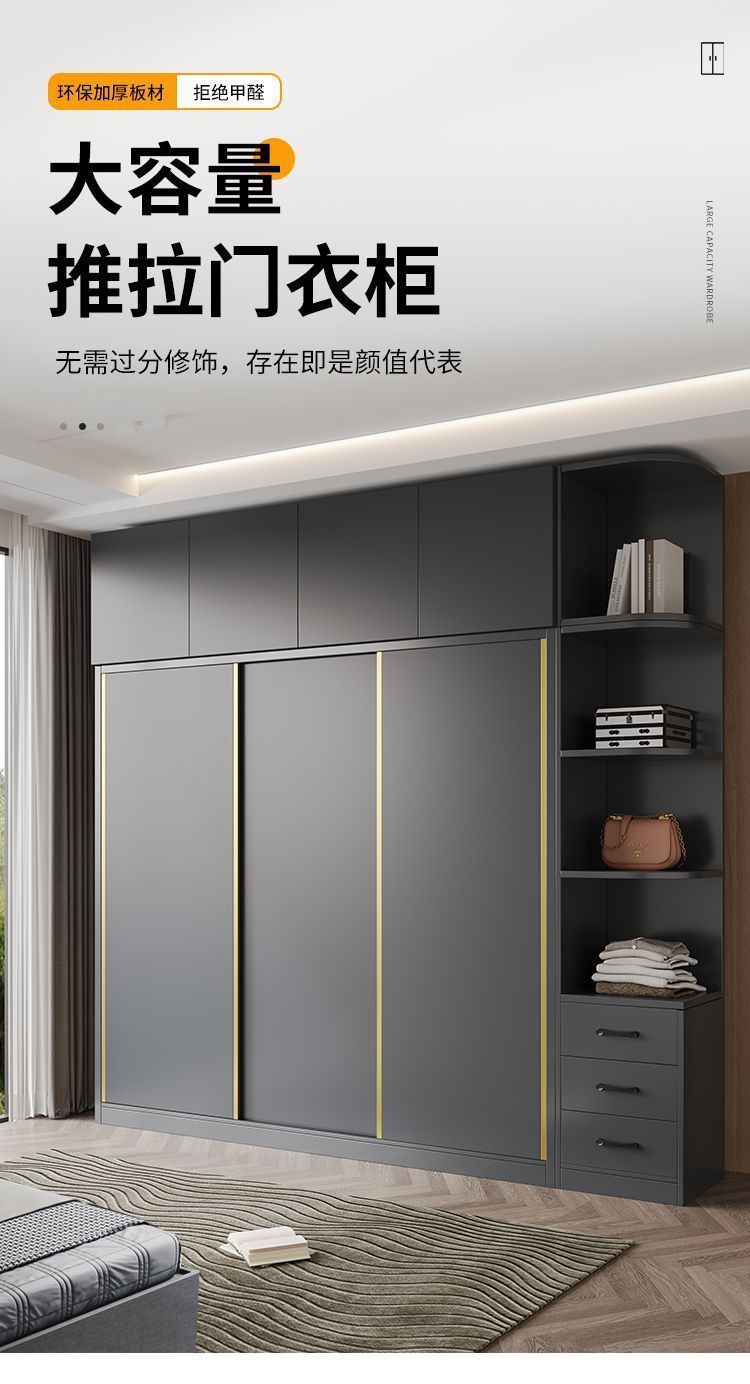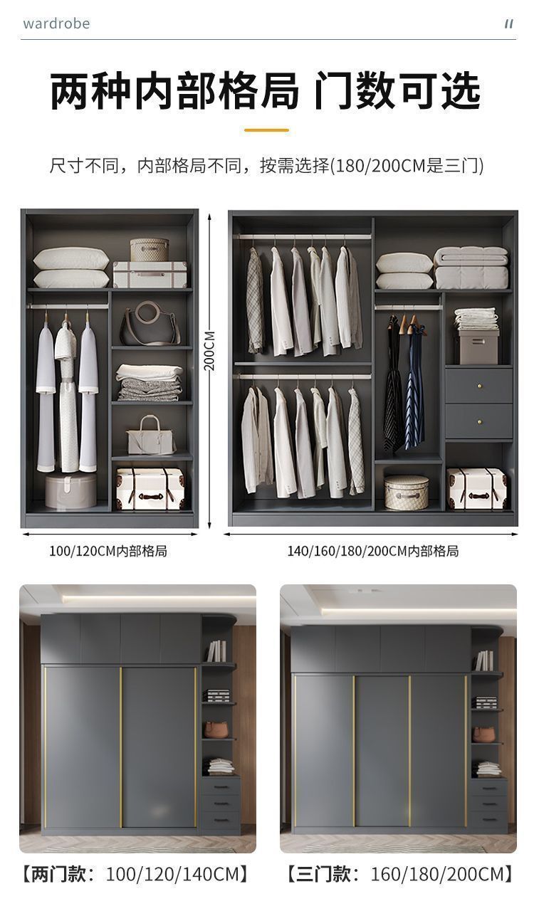 옷장 마스터 침실 슬라이딩 도어 가정용 침실 간단한 작은 아파트 가벼운 고급 보관 캐비닛 두 번째 침실 옷감 옷