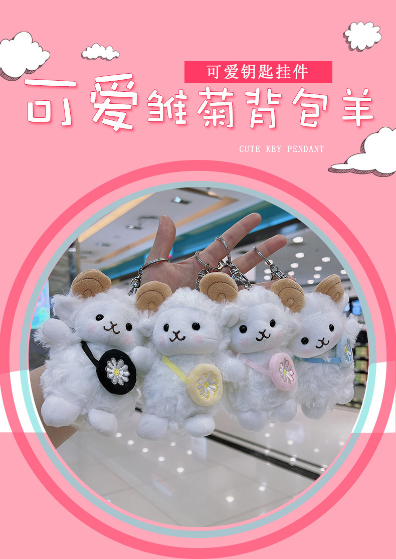 귀여운 작은 양 봉제 펜던트 소녀의 Schoolbag 매달려 데이지 작은 양 인형 키 체인 생일 선물스토어 가기