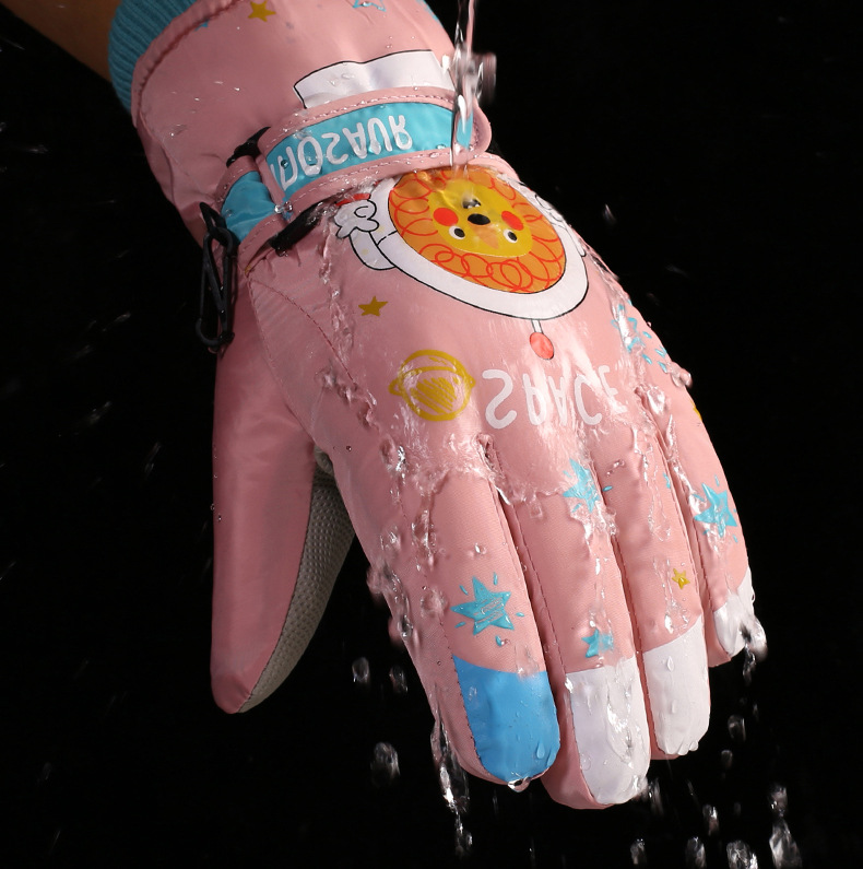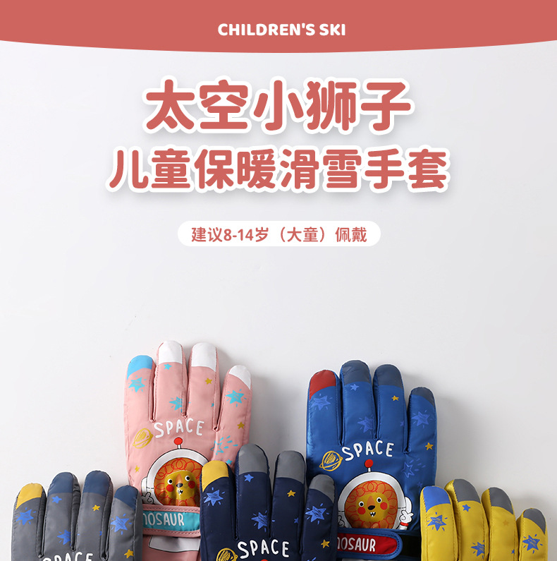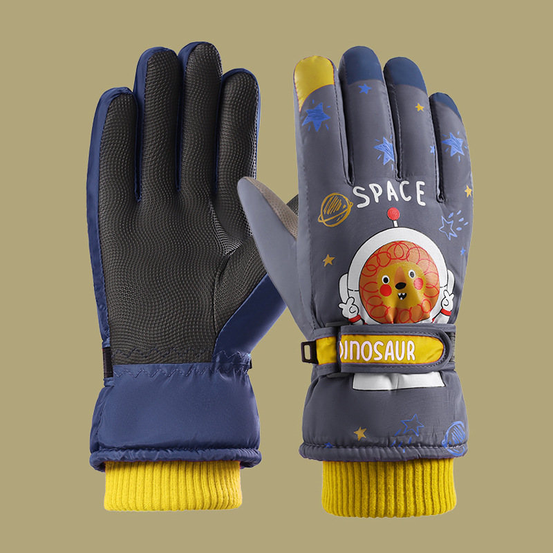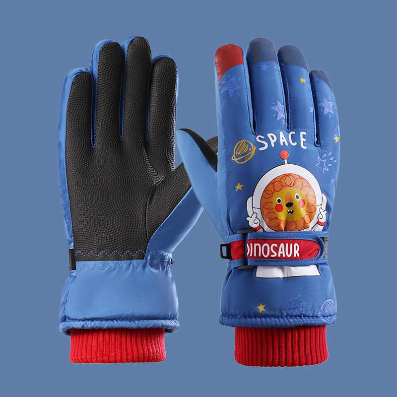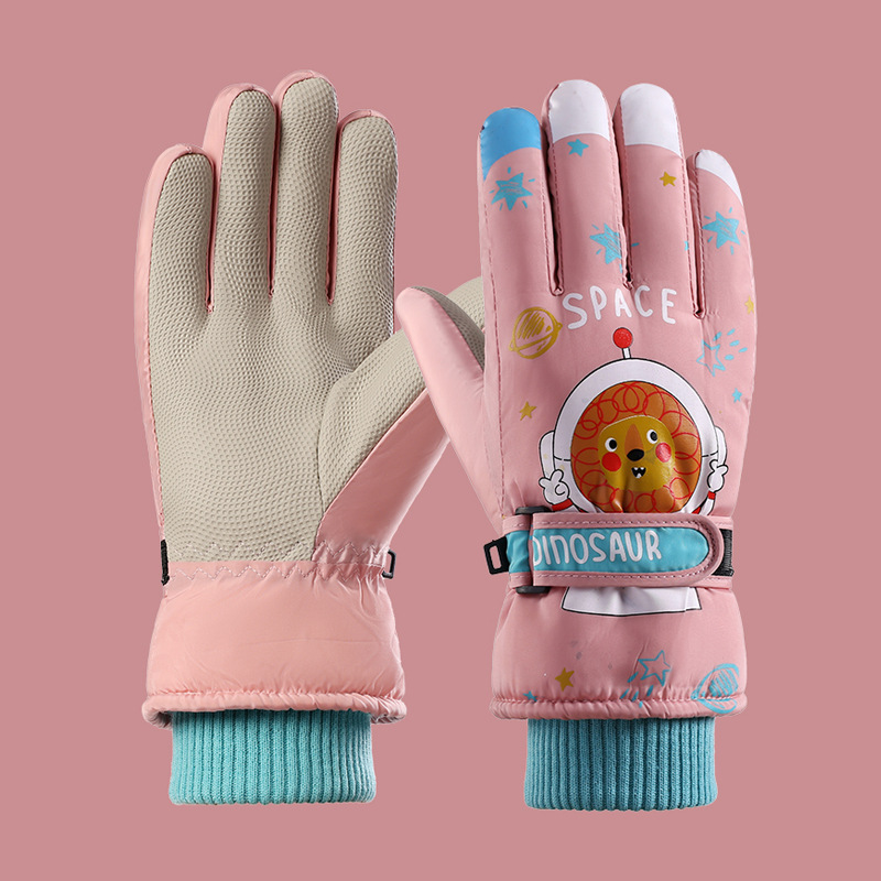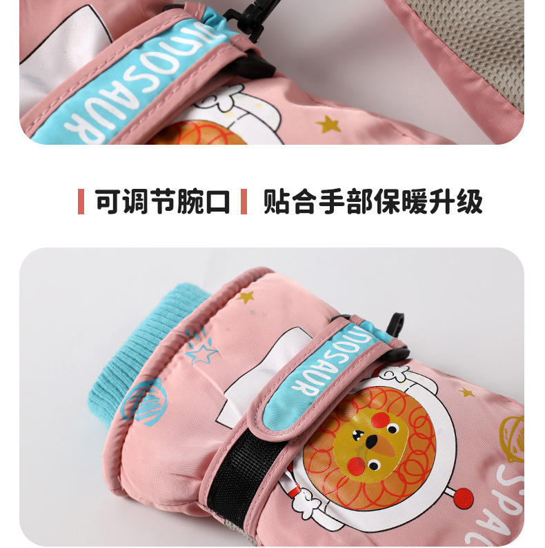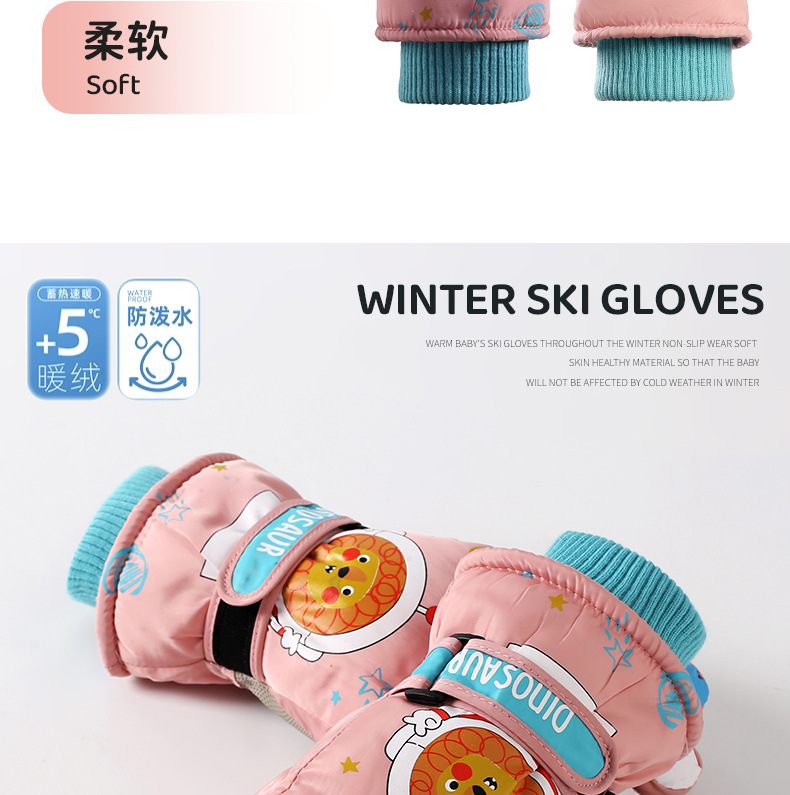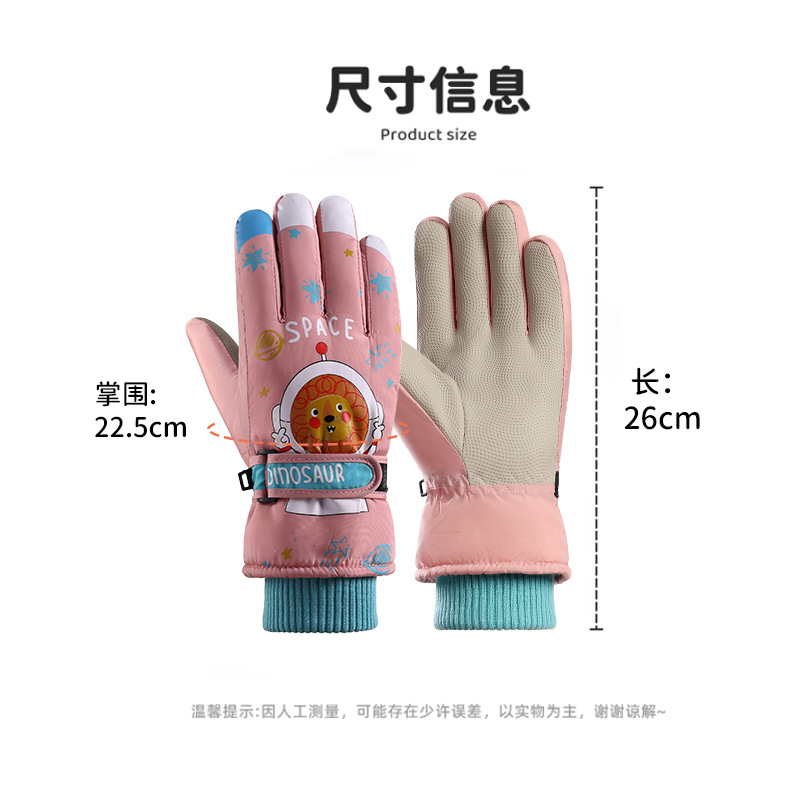 어린이 스키 장갑 소년과 소녀 겨울 기모 두꺼운 방수 작은 사자 만화 사이클링 따뜻한 장갑