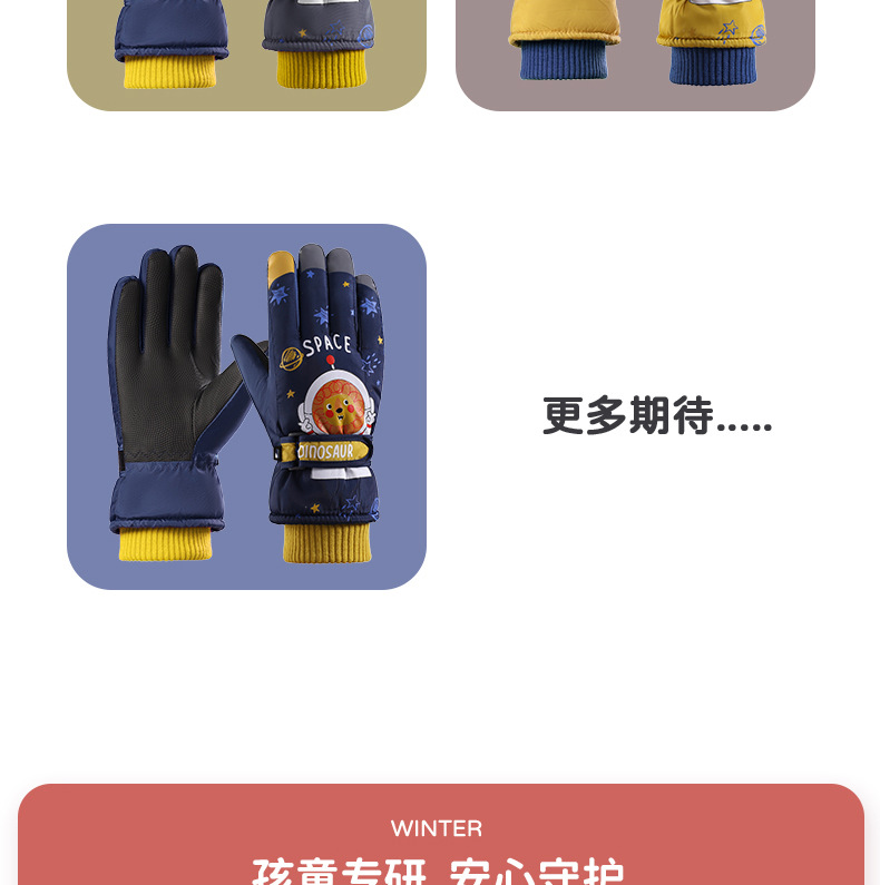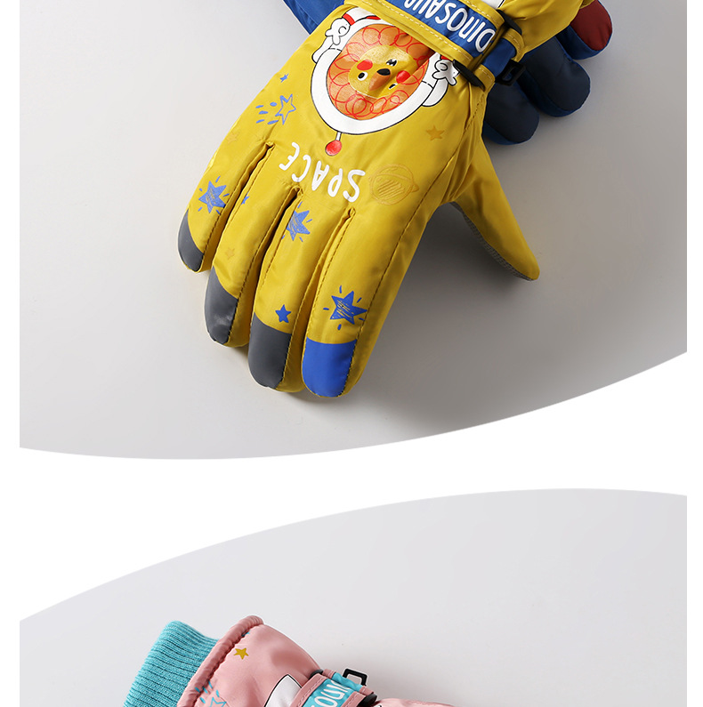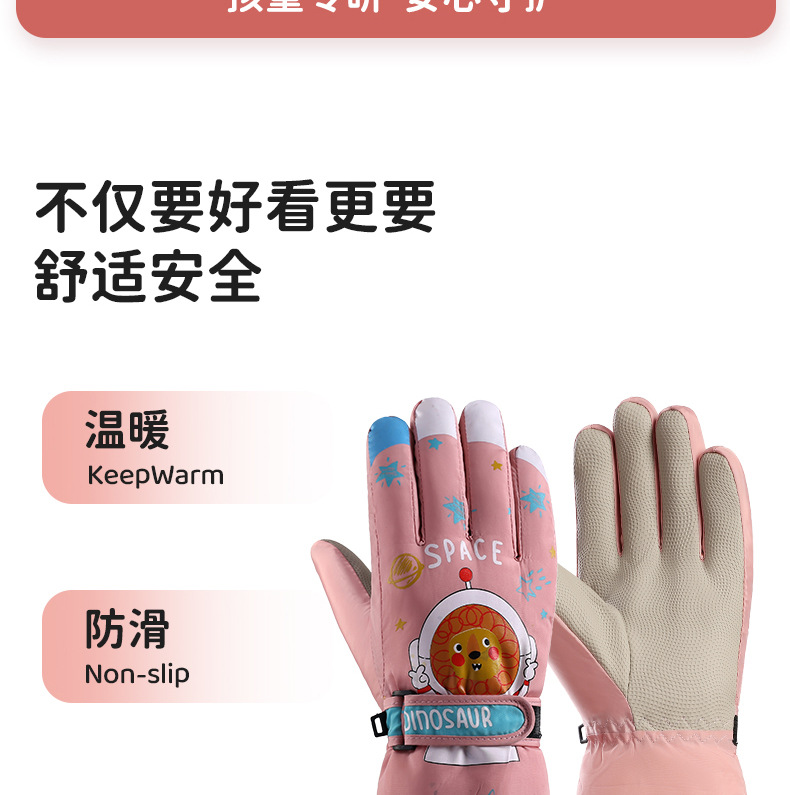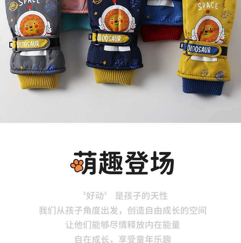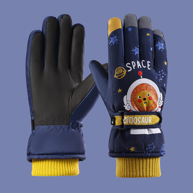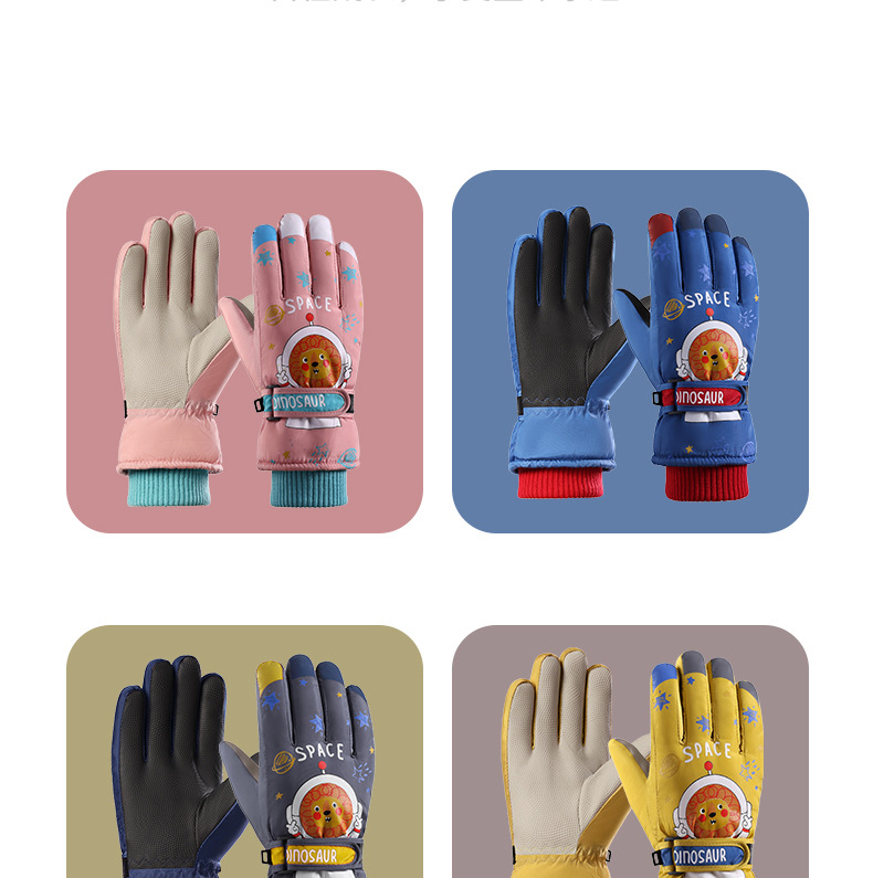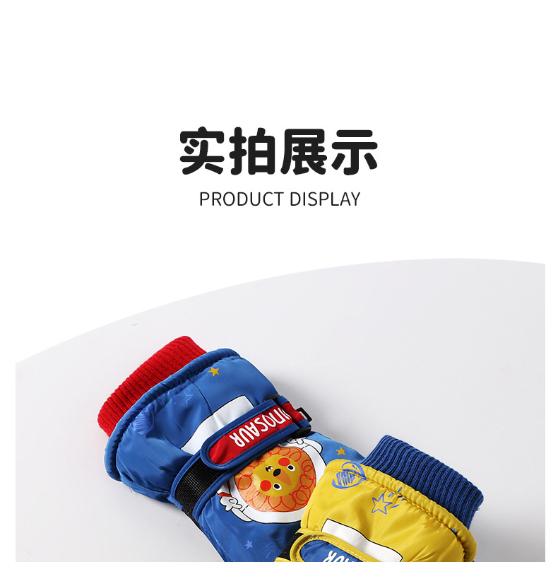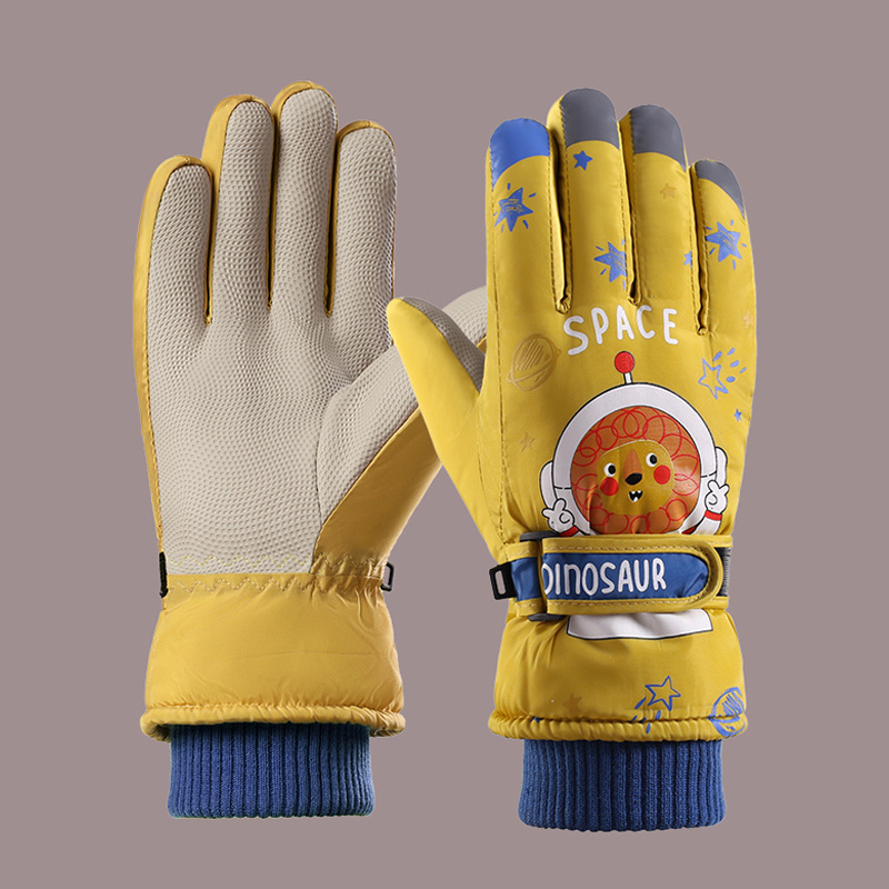 어린이 스키 장갑 소년과 소녀 겨울 기모 두꺼운 방수 작은 사자 만화 사이클링 따뜻한 장갑