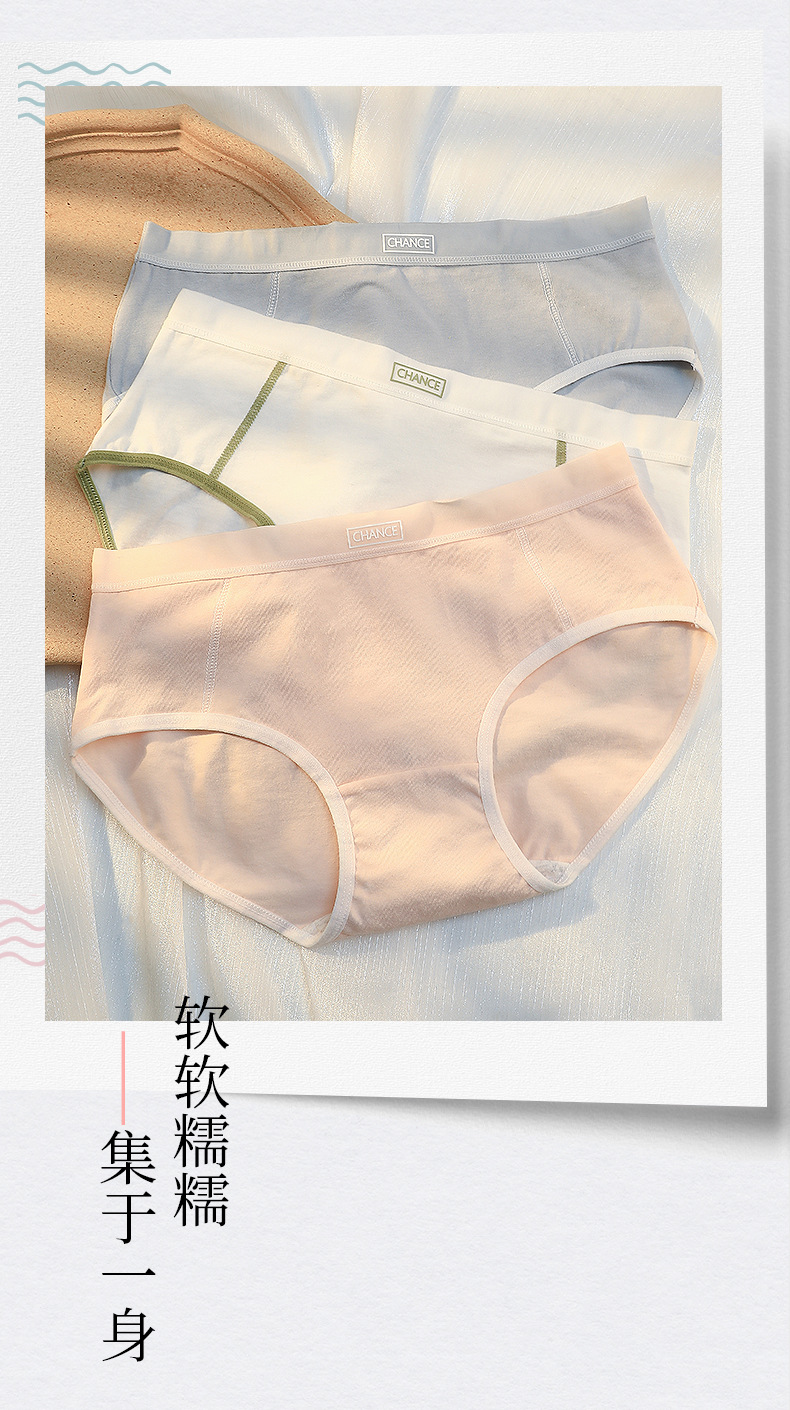 여성용 순수면 항균 브리프 일본식 리틀 여성용 미드 웨이스트 원활한 속옷 통기성 여름 얇은 여성 반바지