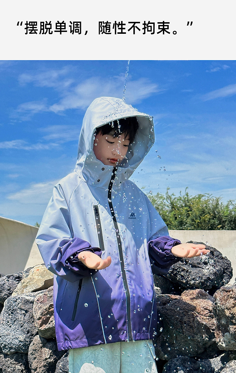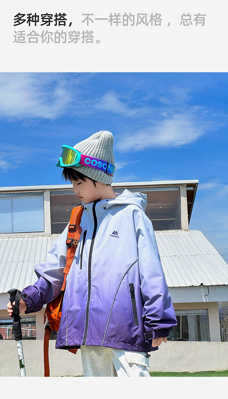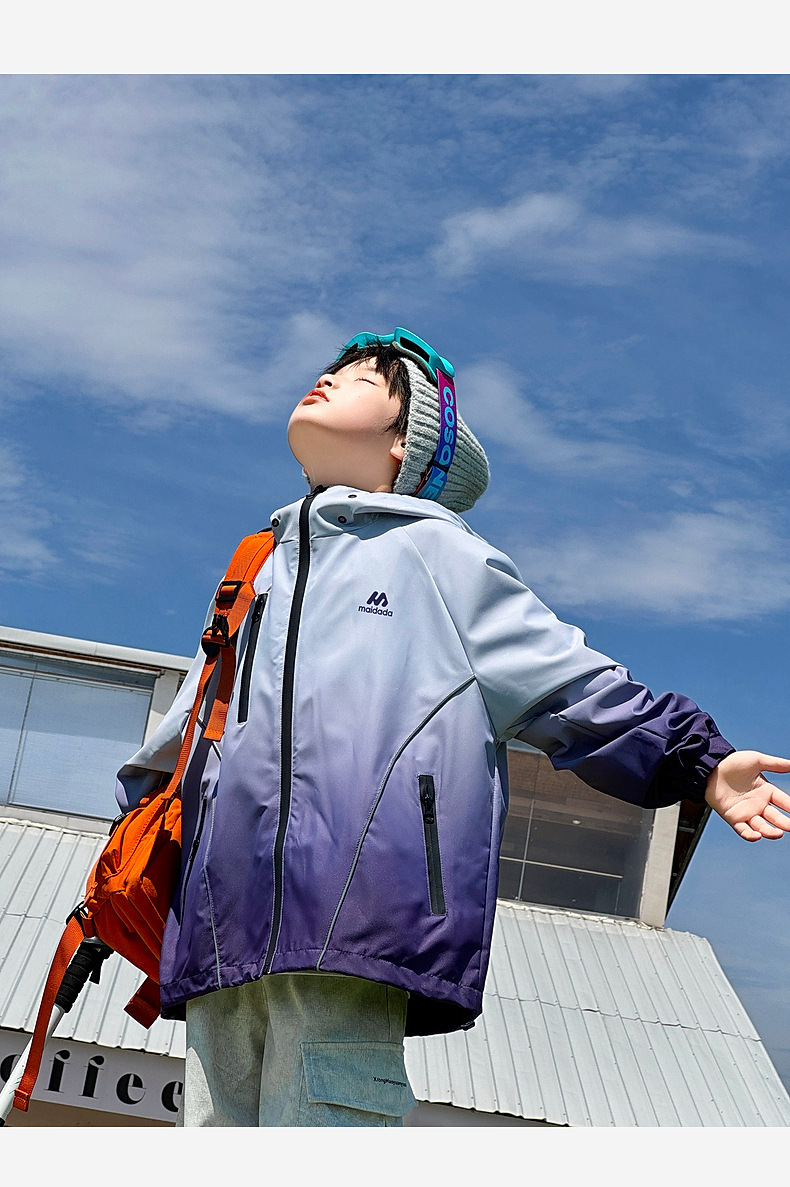 2024 년 새로운 야외 3 감 그라디언트 컬러 어린이 폭행 의류 가을 후주 Zhili 아동복 소년 가을 코트