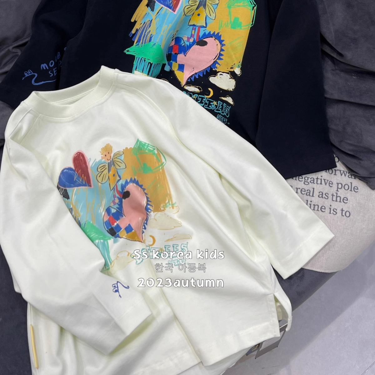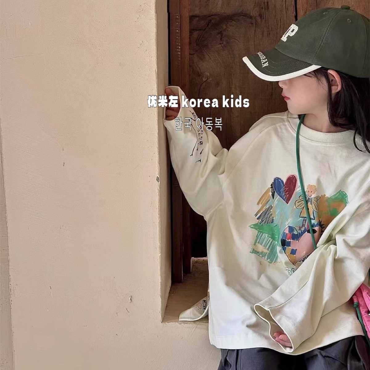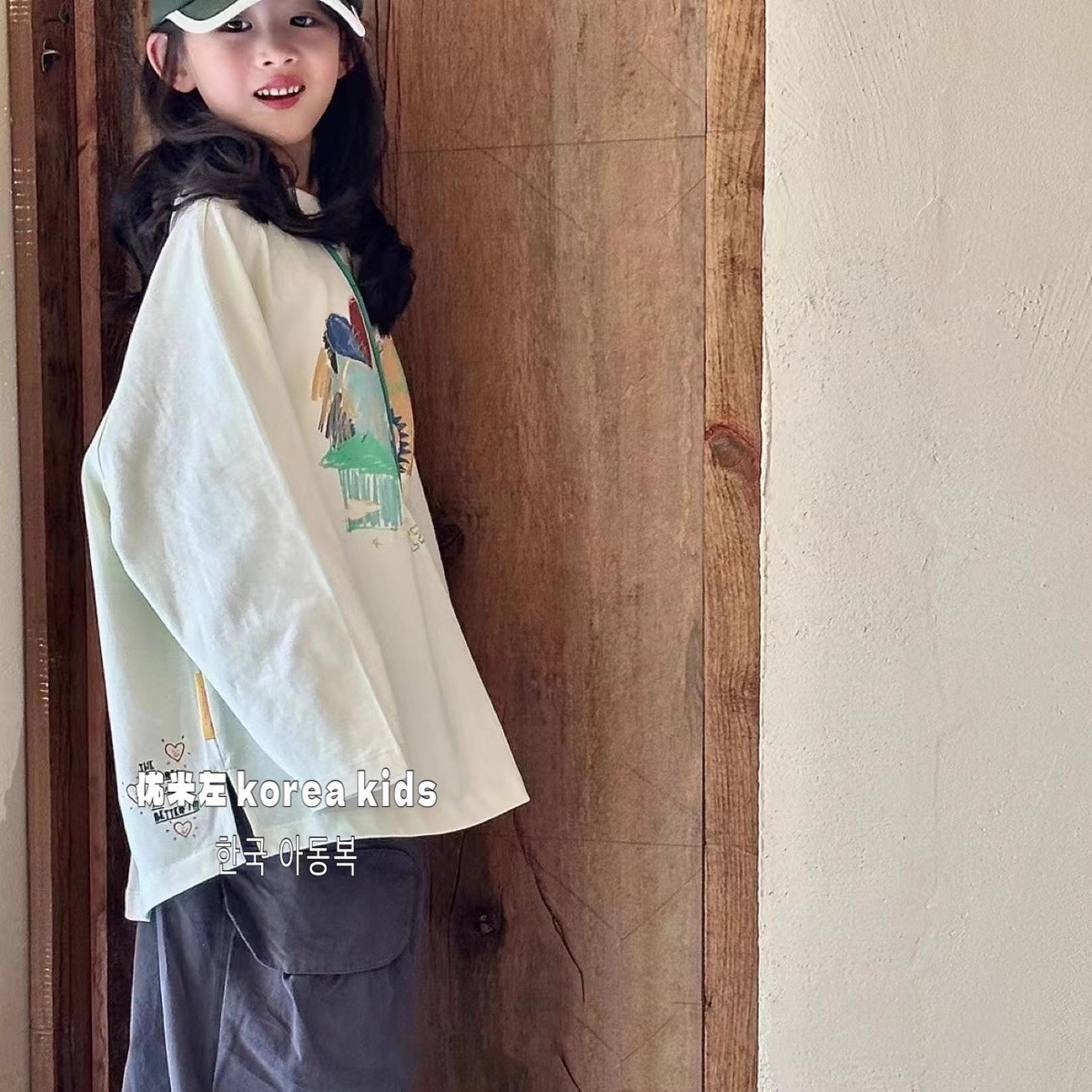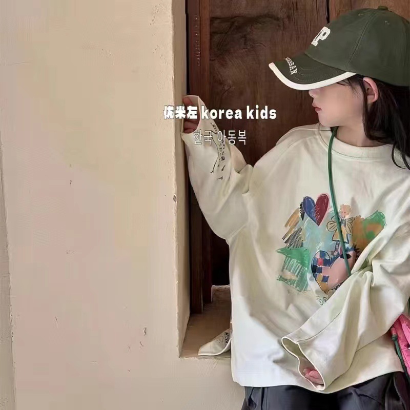 보라 한국 아동복 소녀의 가을 탑 2024 세련된 아동베이스 셔츠 소녀의 가을 착용스토어 가기