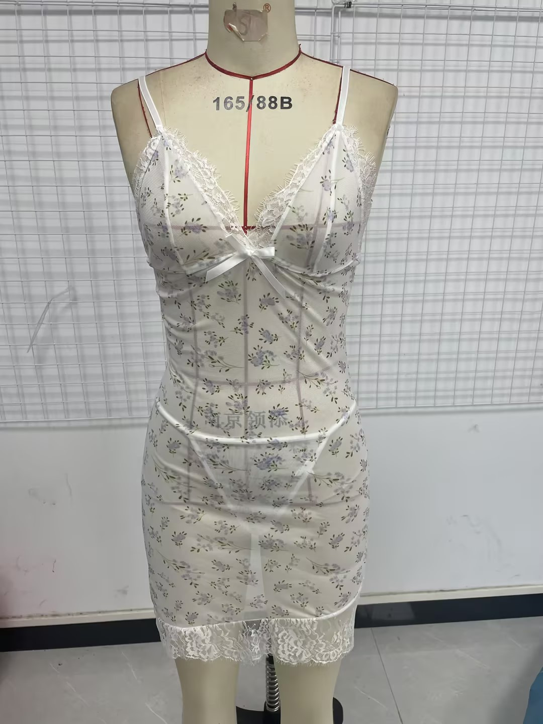 하이 엔드 뉴 파자마 여름 섹시한 슬링 중간 길이 스커트 섹시한 여성 유혹 감정적 인 홈 의류 세트