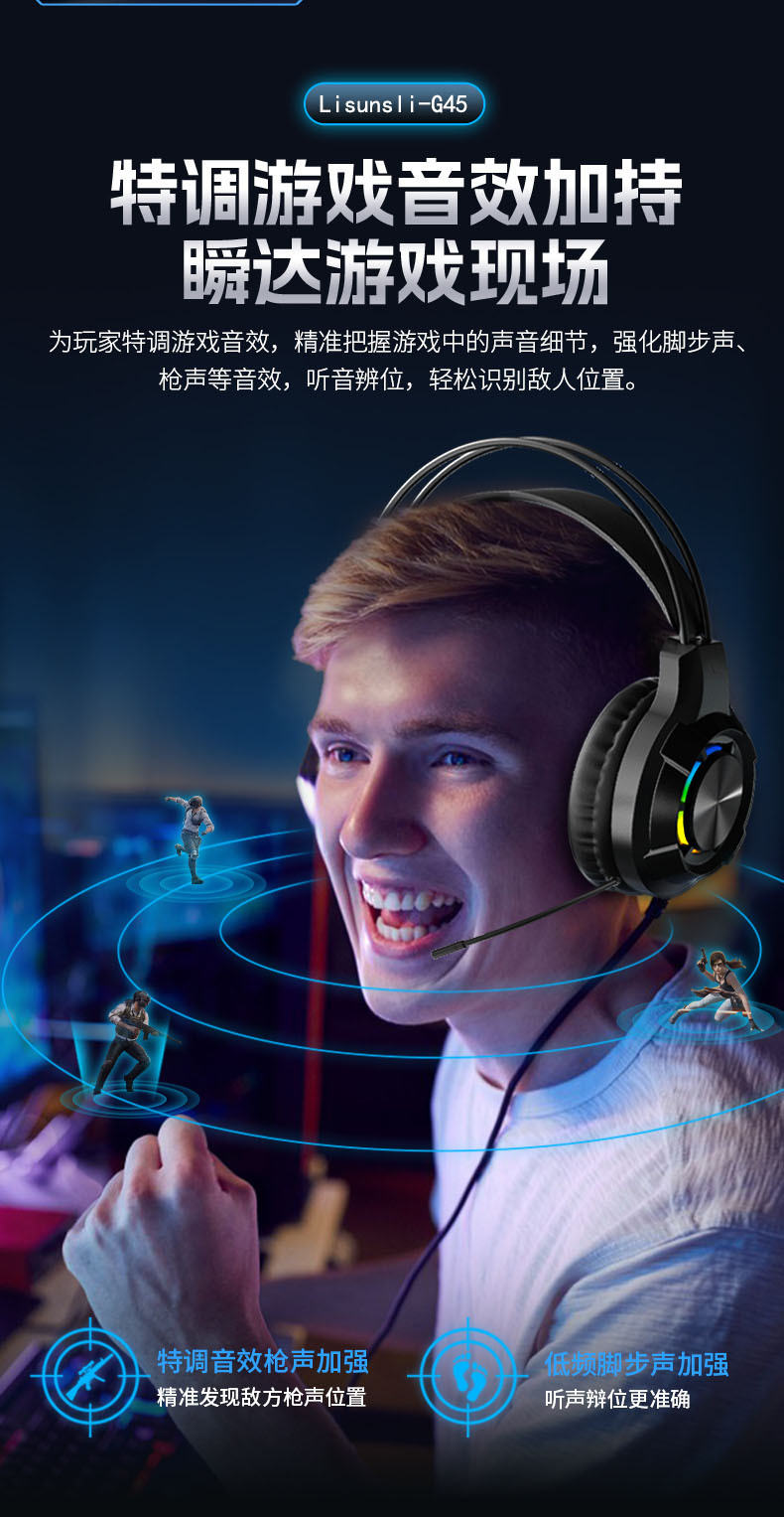국경을 넘는 새로운 폭발은 마이크가있는 치킨 헤드 장착 유선 서브 우퍼 e-스포츠 노트북 데스크톱 컴퓨터 게임 헤드셋을 먹습니다.스토어 가기