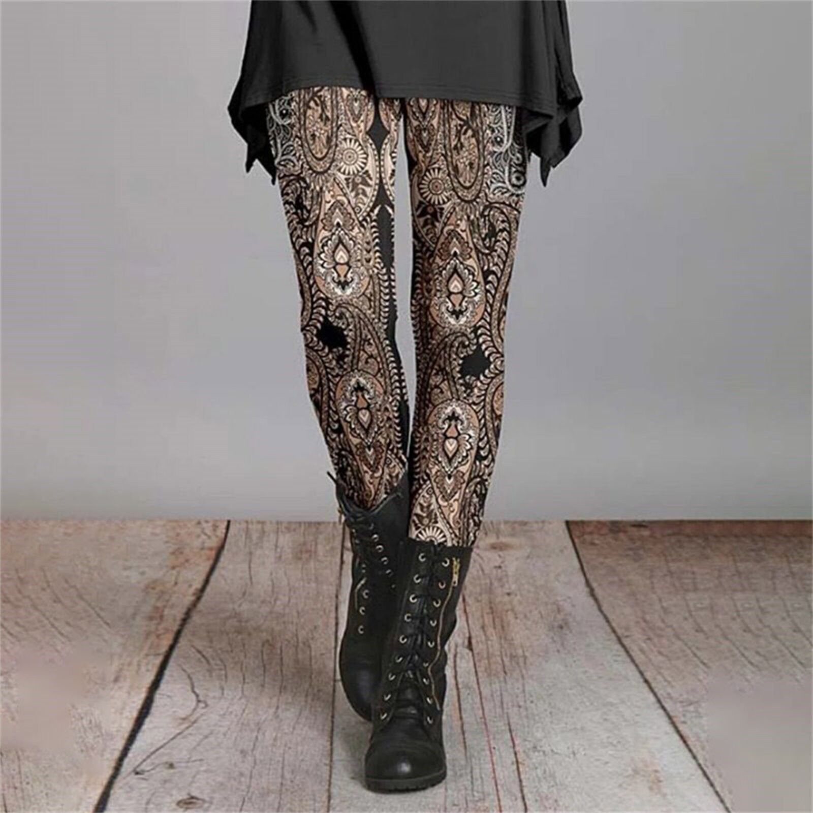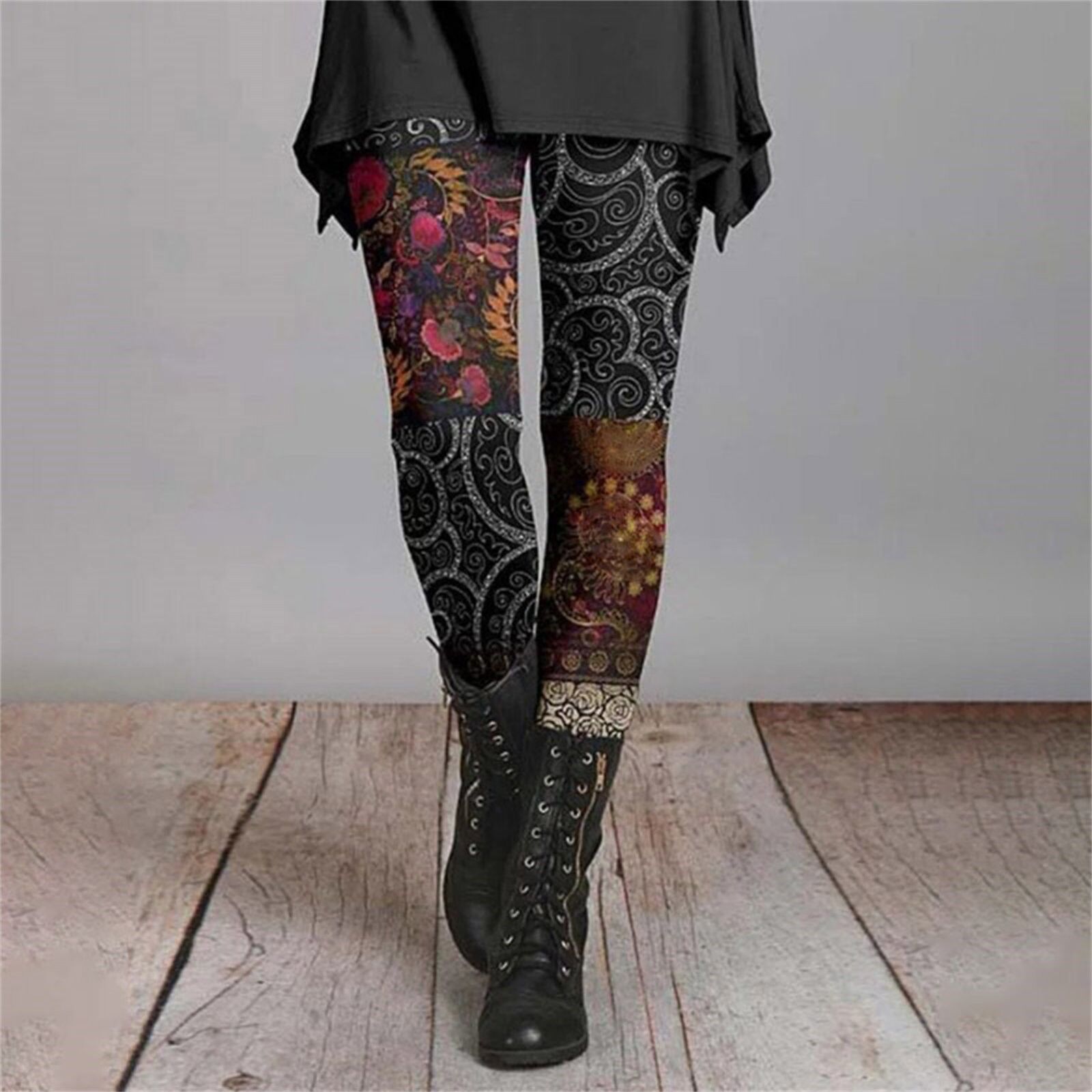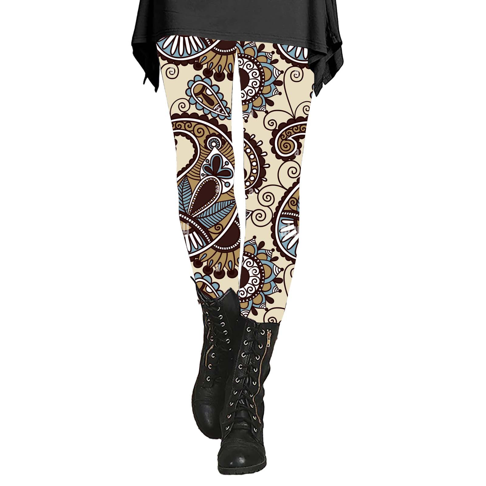 긴 슬림 핏 2024 가을과 겨울 여성의 복고풍 민족 스타일 슬림 인쇄 Bottoming 바지 얇은 통기성스토어 가기