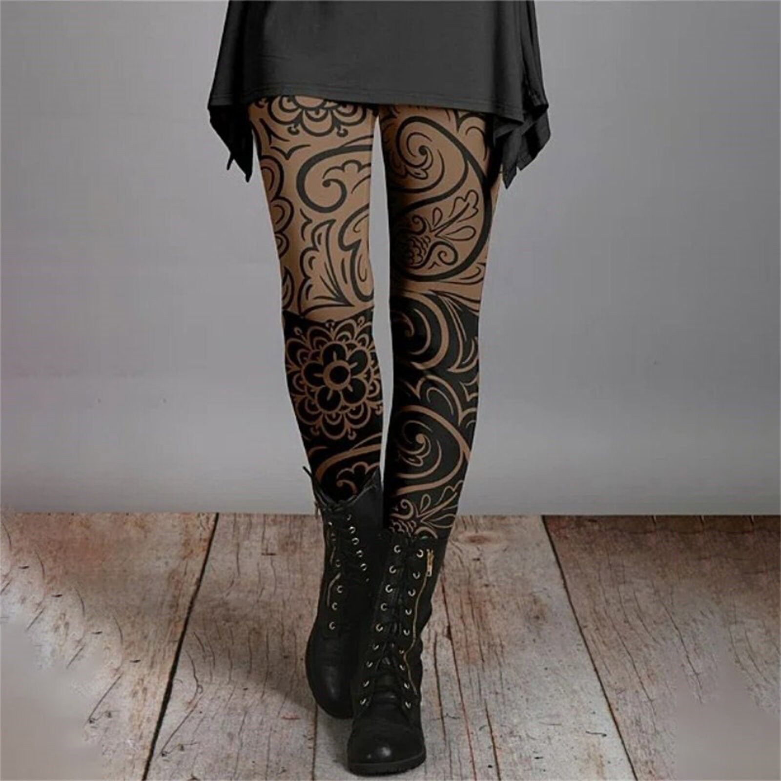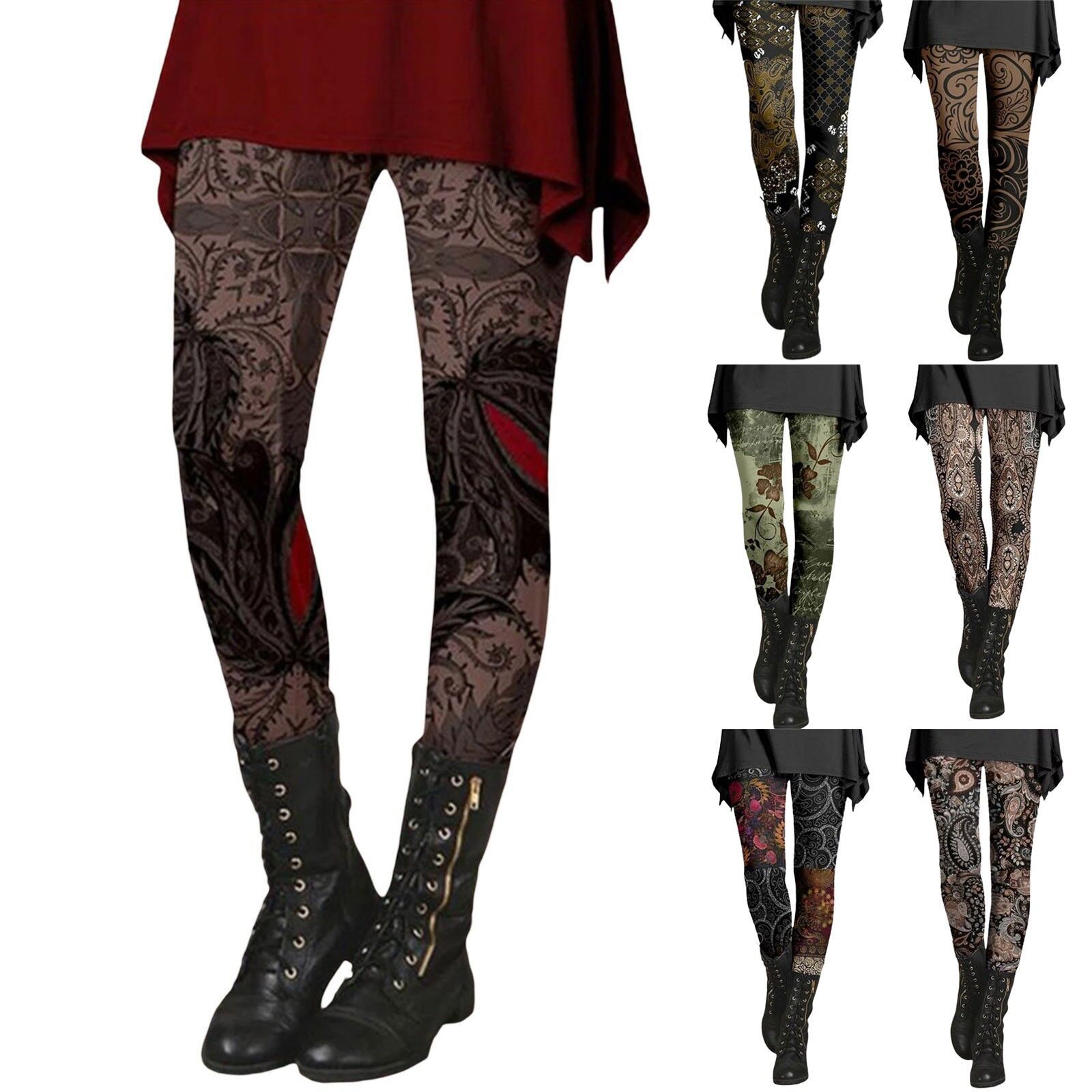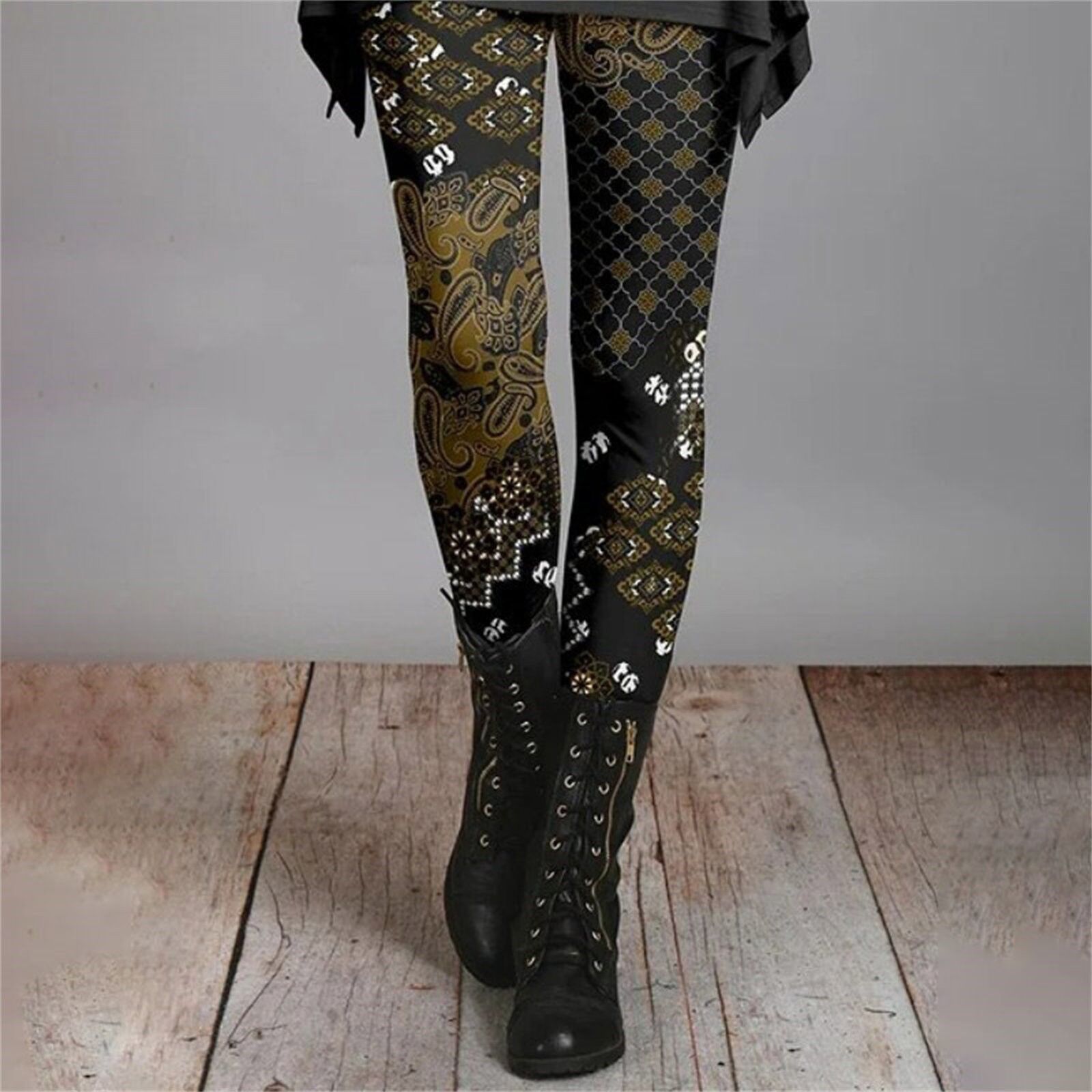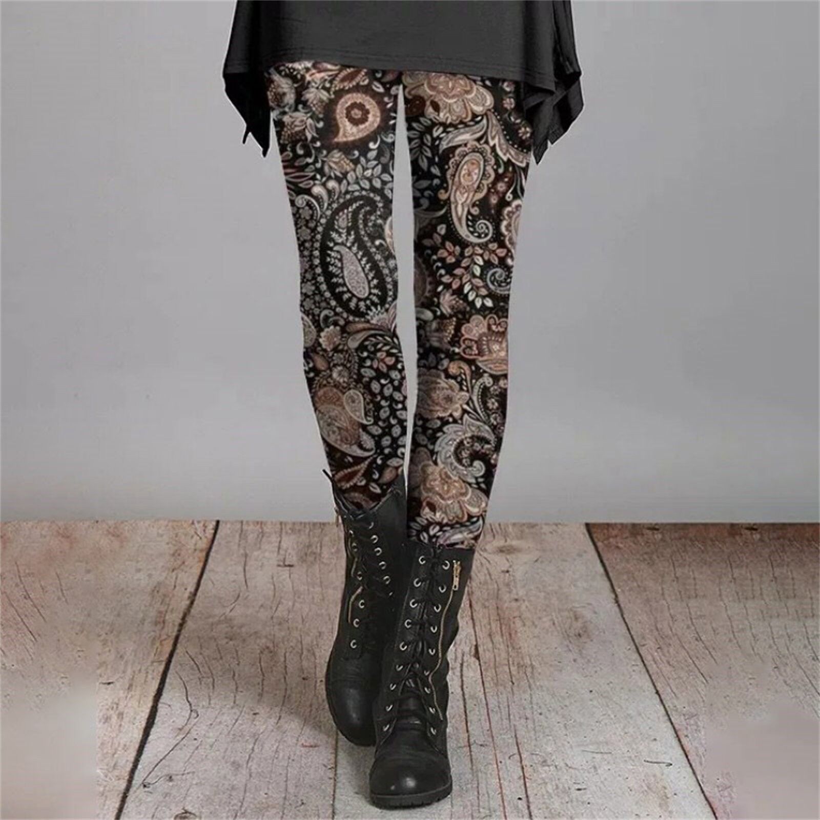 긴 슬림 핏 2024 가을과 겨울 여성의 복고풍 민족 스타일 슬림 인쇄 Bottoming 바지 얇은 통기성스토어 가기