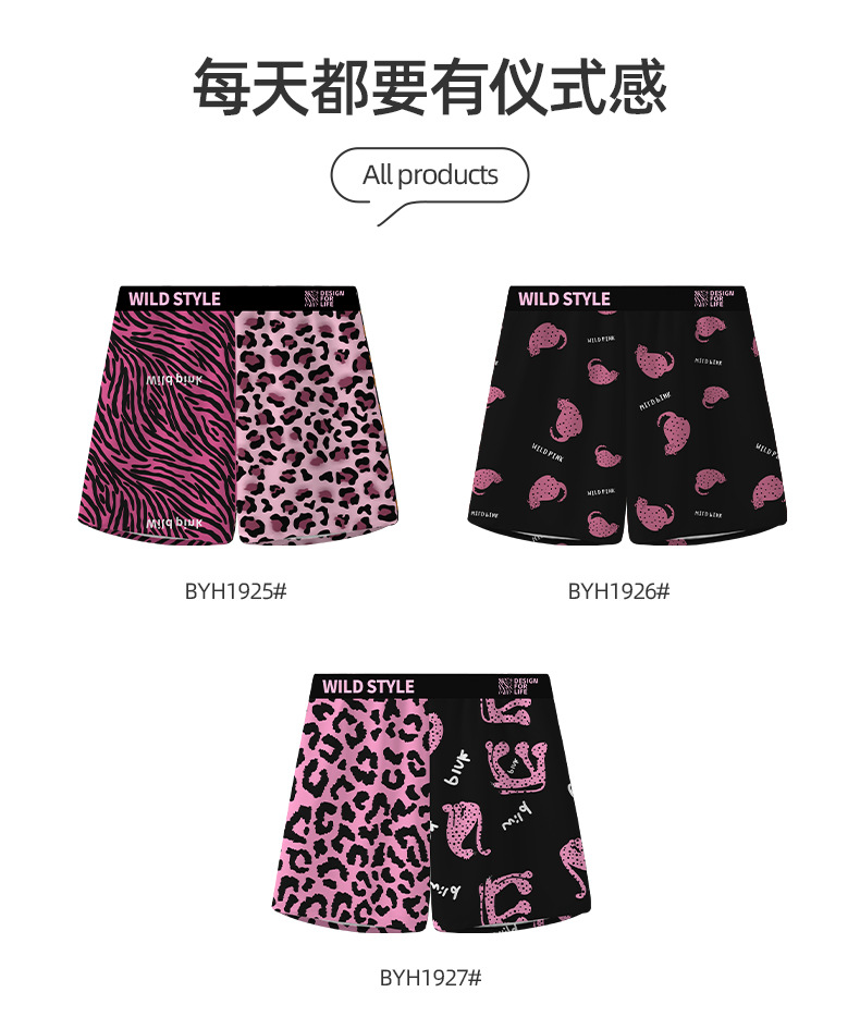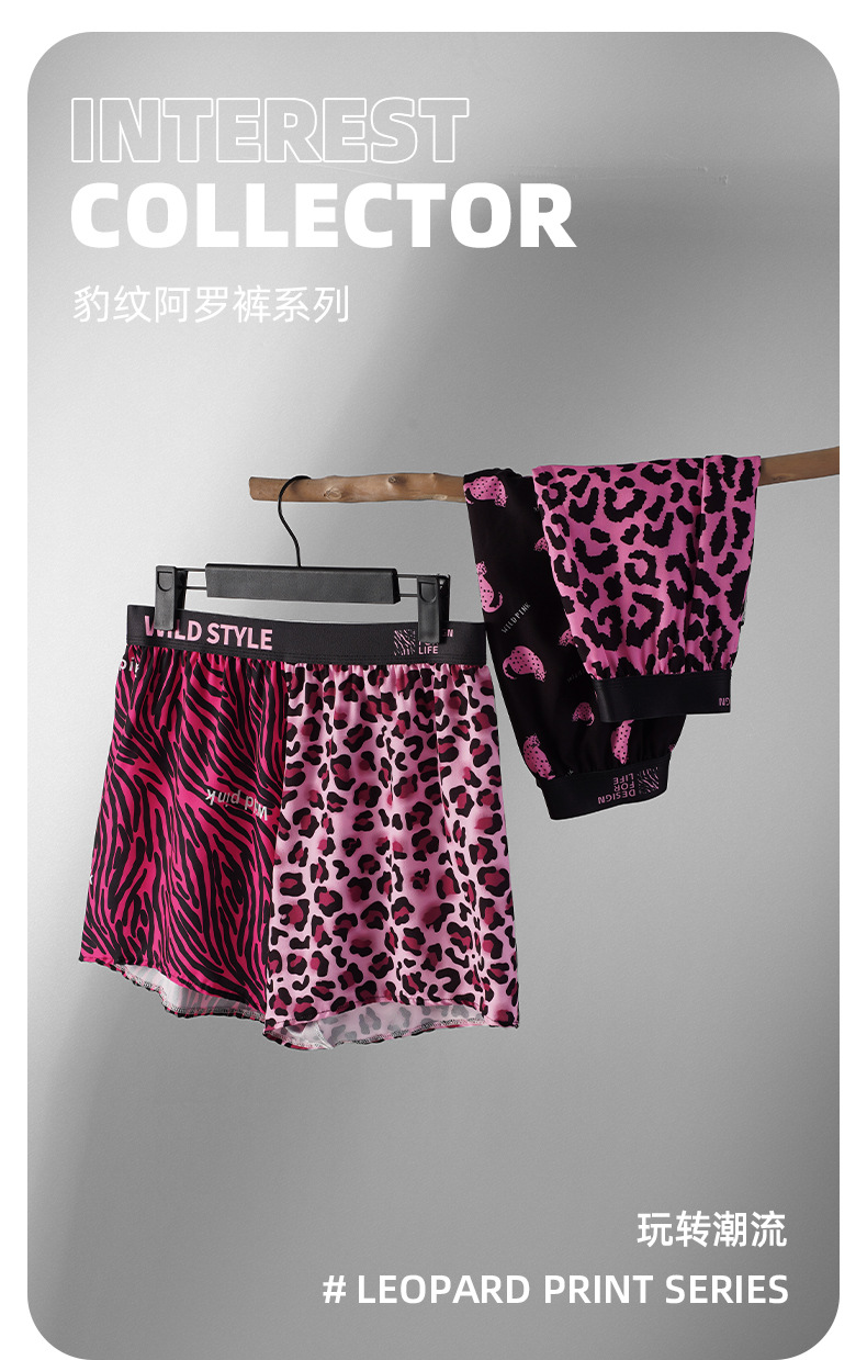 인기 남성용 아로 팬츠 핑크 레오파드 무늬 홈웨어 캐주얼 루즈핏 대형 사이즈 트렌디 직조 사각 팬티 남성 도매스토어 가기