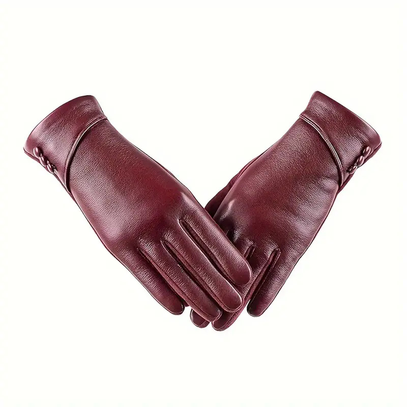 크로스보더 레드 가죽 장갑 공장 도매 여성용 3버튼 플러스 벨벳 방한 보온 부드러운 봄 가을 겨울 터치스크린