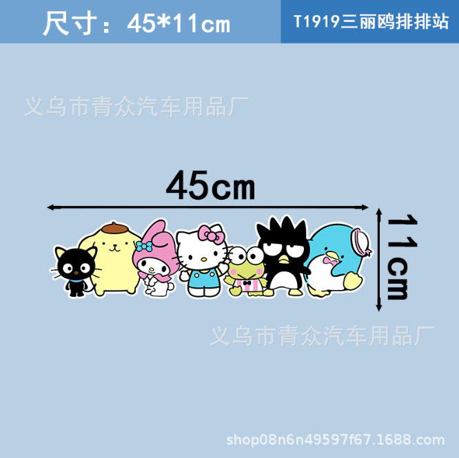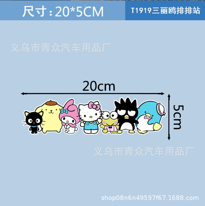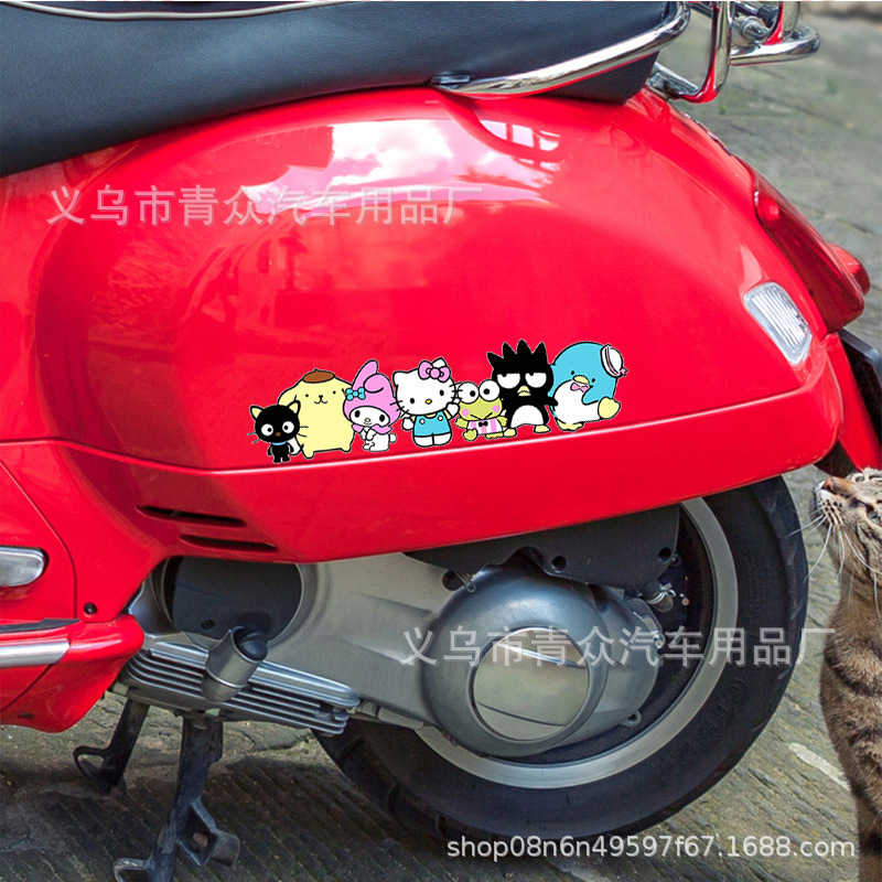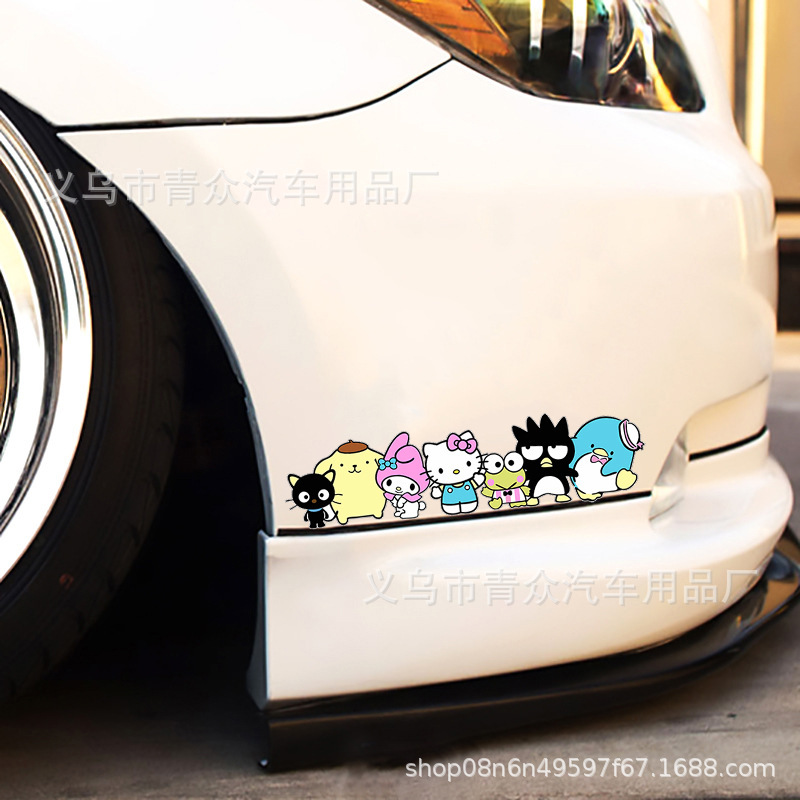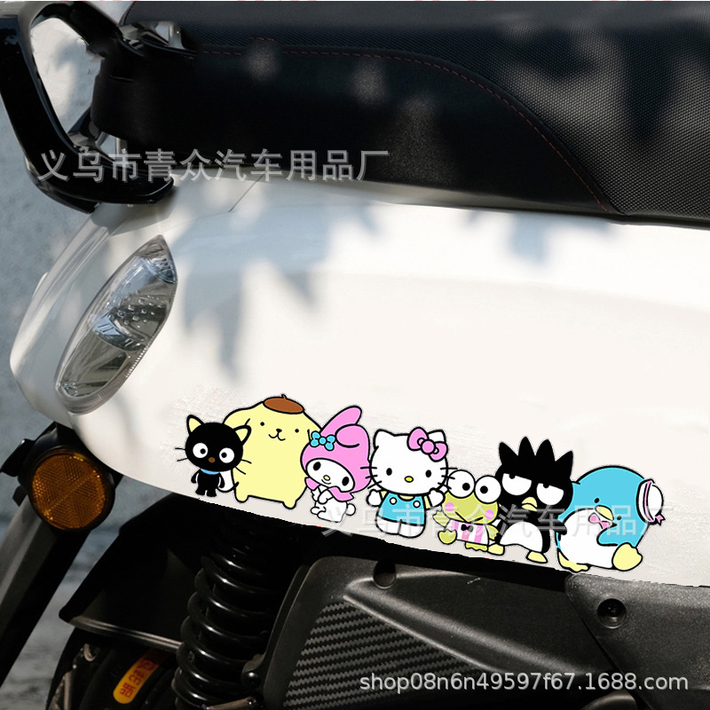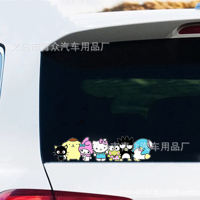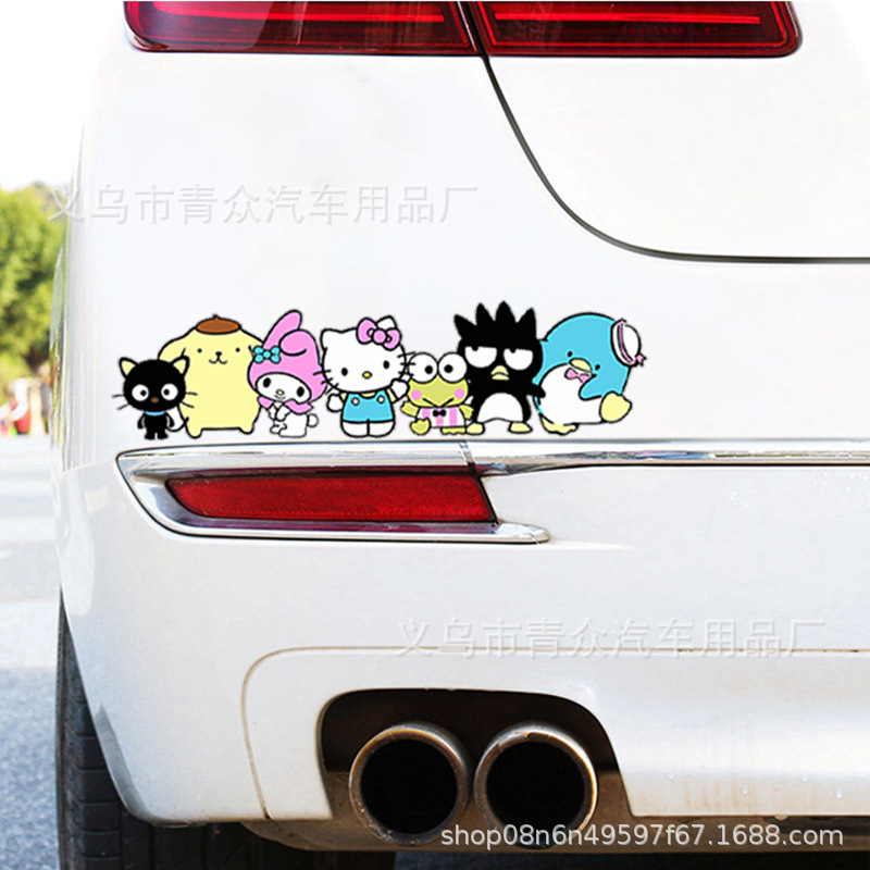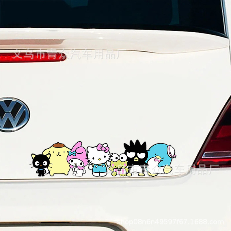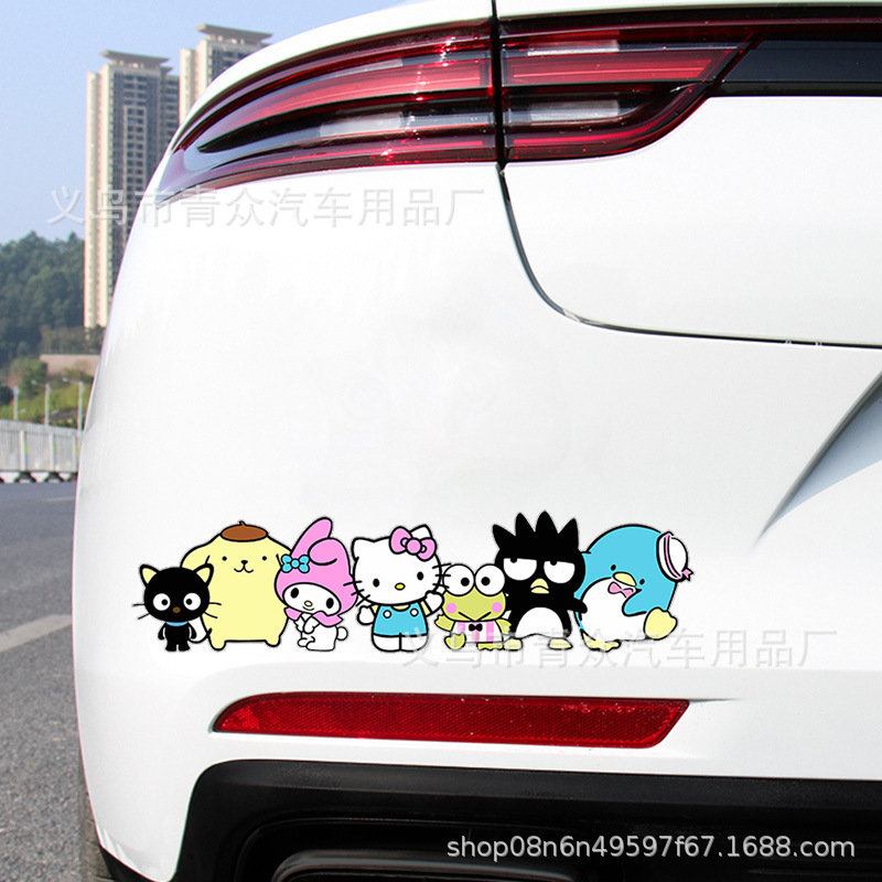 산리오 귀여운 만화 스티커 자동차 창 유리 후면 범퍼 스크래치 성격 전기 오토바이 바디 스티커스토어 가기