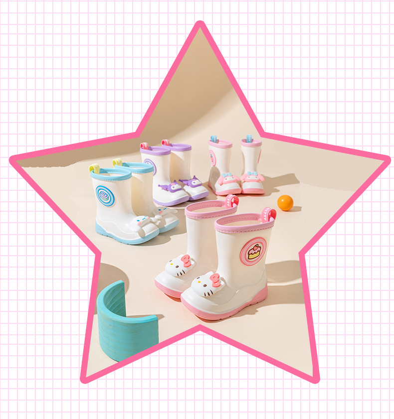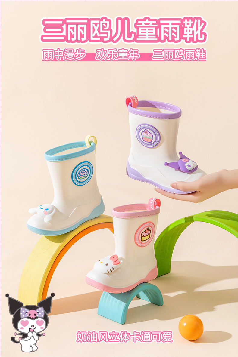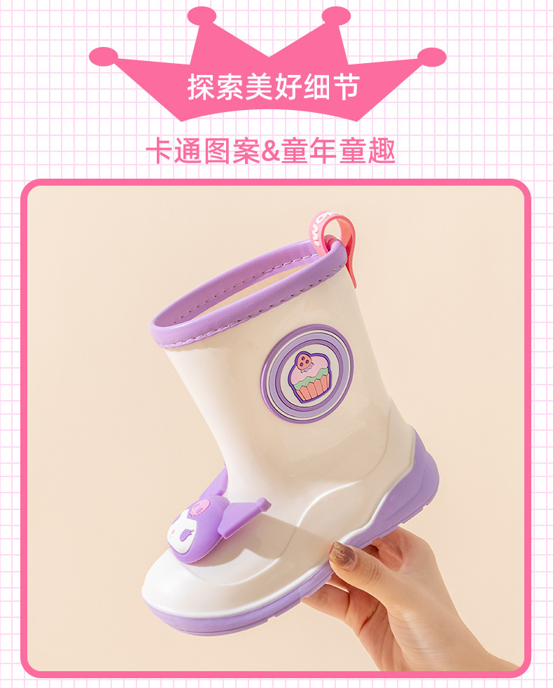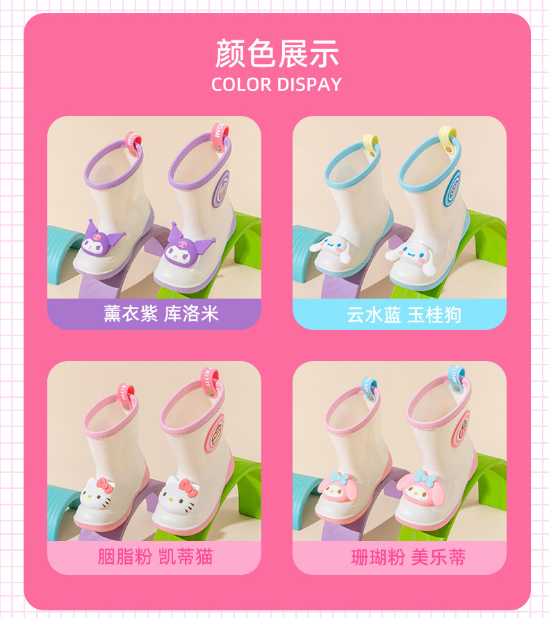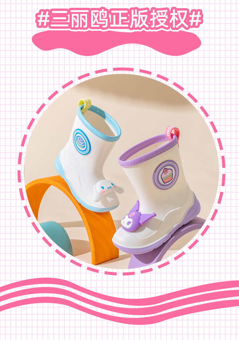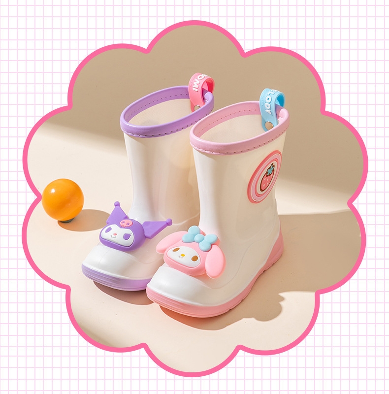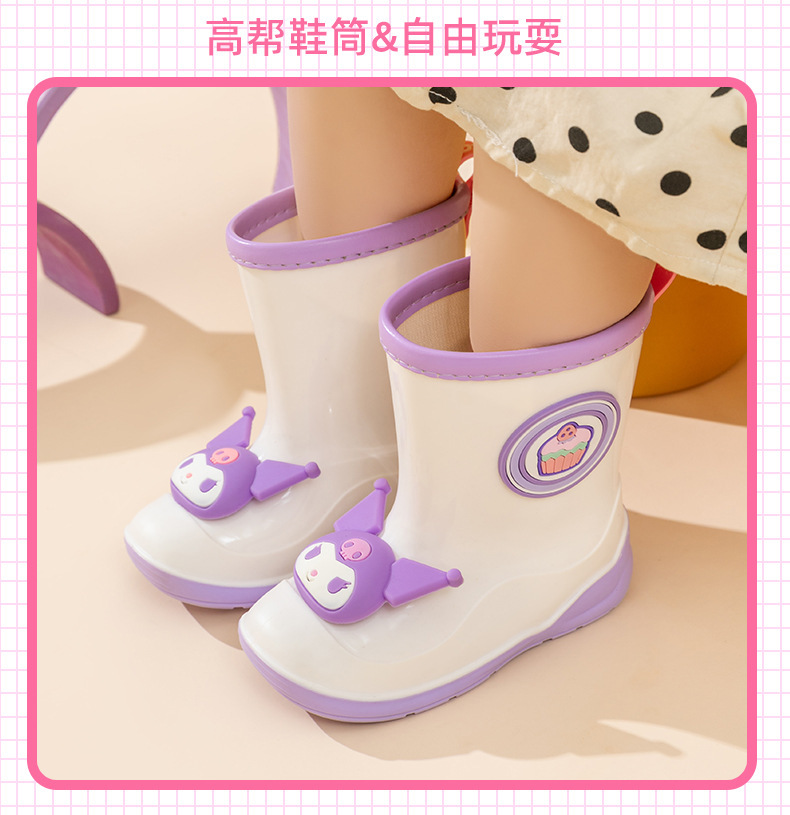 산리오 정품 어린이 장화 귀여운 만화 쿨로미 장화 유치원 소녀 장화 미끄럼 방지 고무 워터 슈즈