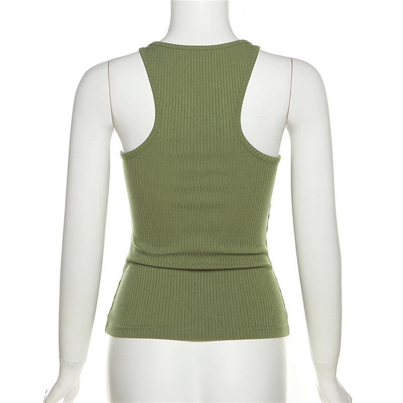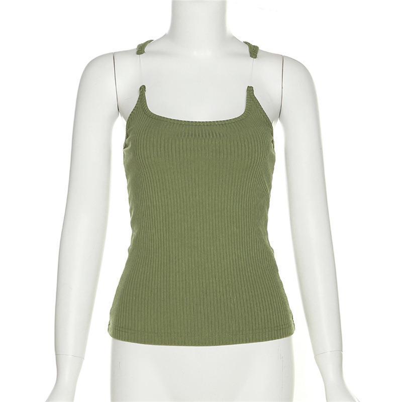 유럽과 미국 여성의 2024 여름 새로운 여성 패션 보이지 않는 슬링 섹시한 스파이스 걸스 솔리드 컬러 슬림 룩 조끼스토어 가기