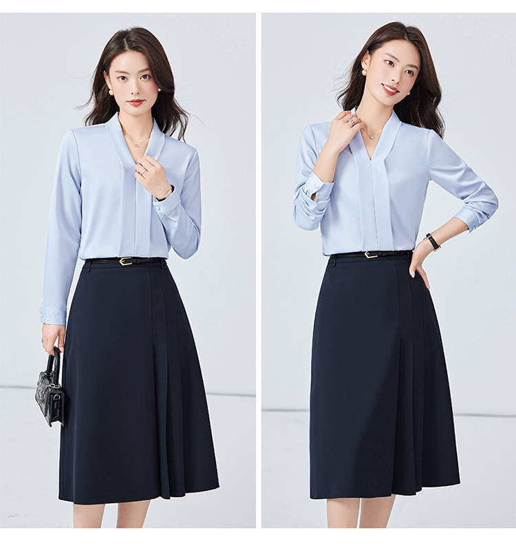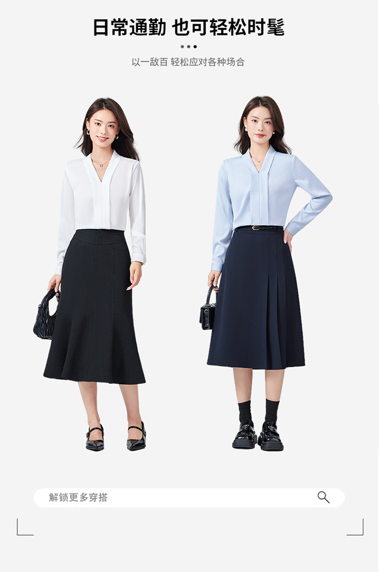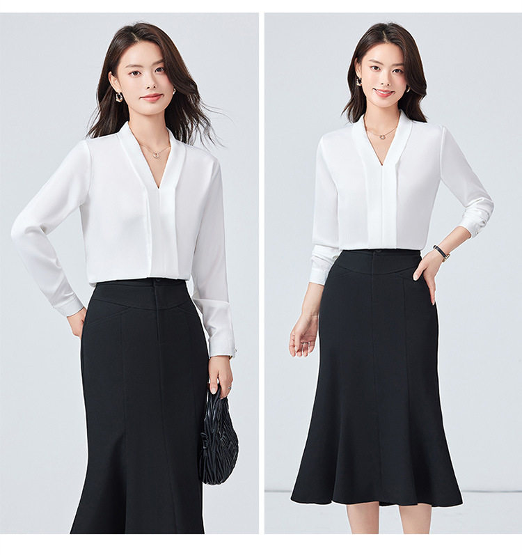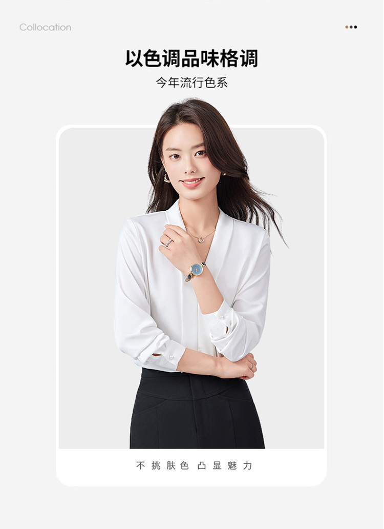 2024 새로운 가을 V 넥 셔츠 인터뷰 올매치 베이스 쉬폰 셔츠 여자 긴 소매 전문 셔츠 탑