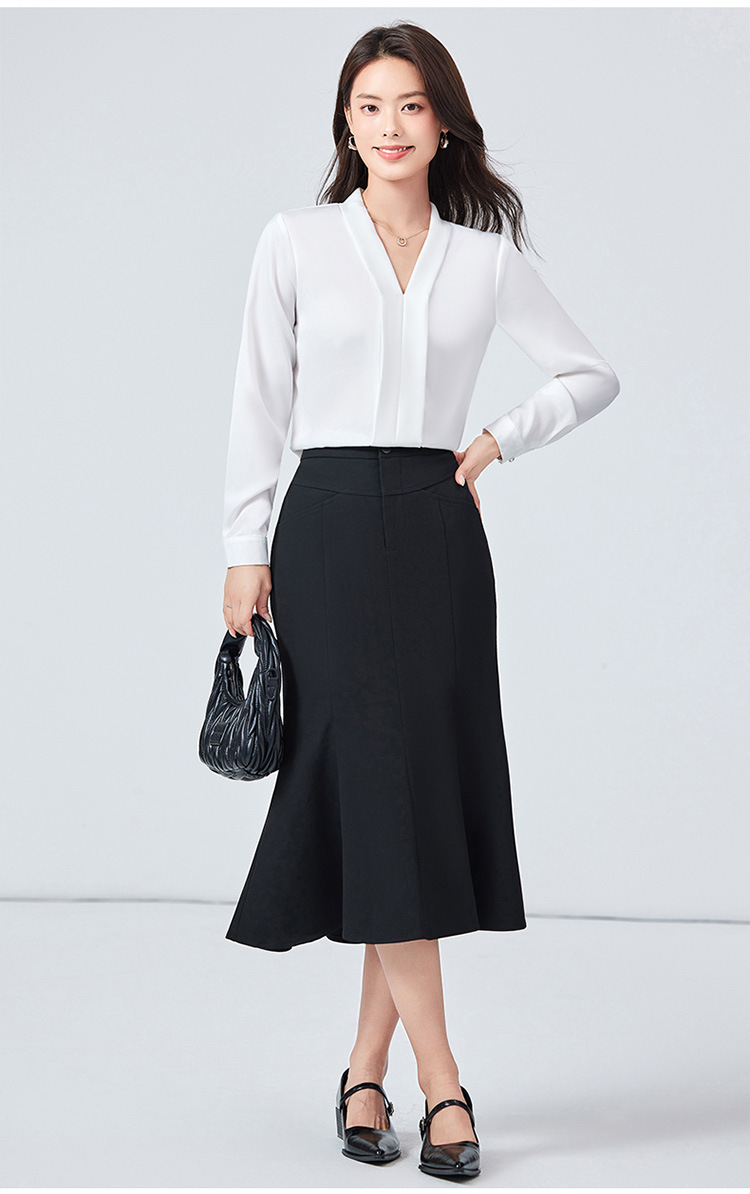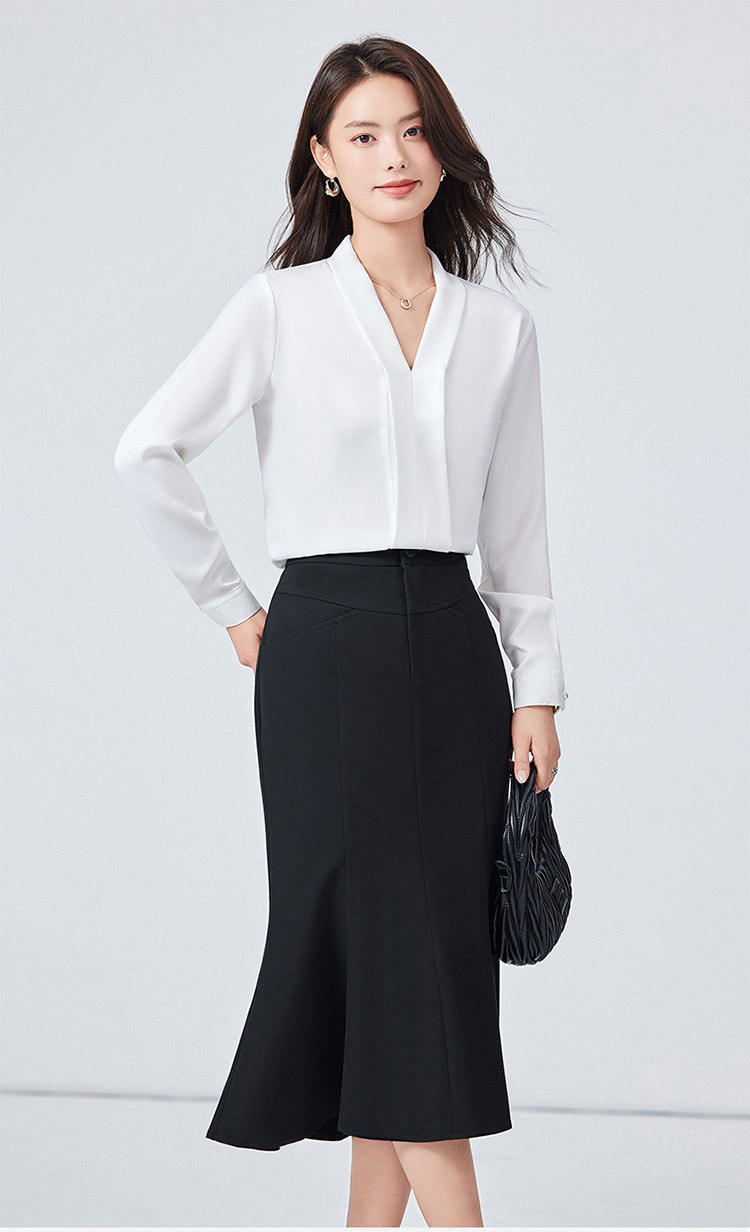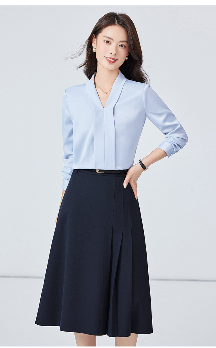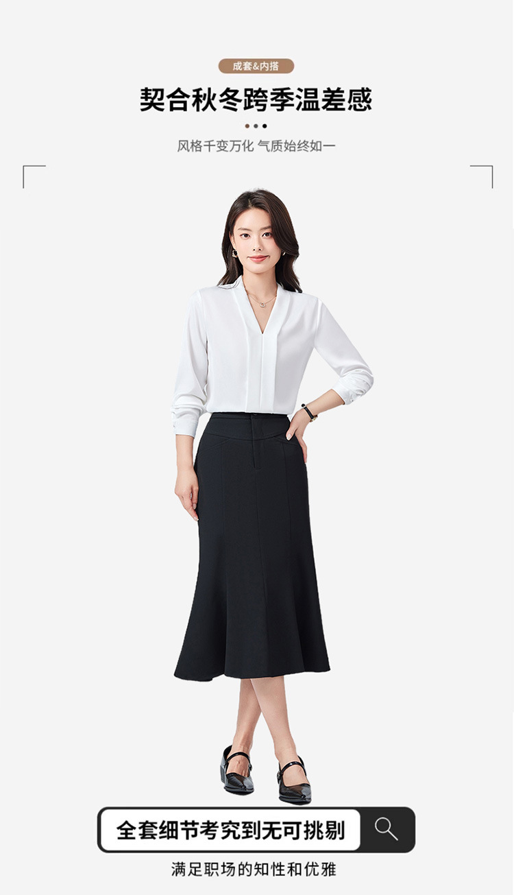 2024 새로운 가을 V 넥 셔츠 인터뷰 올매치 베이스 쉬폰 셔츠 여자 긴 소매 전문 셔츠 탑