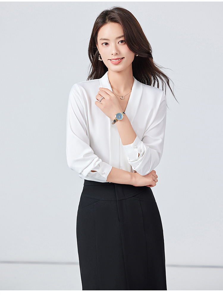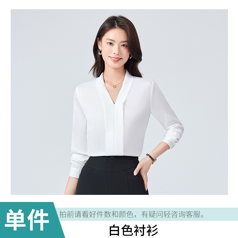 2024 새로운 가을 V 넥 셔츠 인터뷰 올매치 베이스 쉬폰 셔츠 여자 긴 소매 전문 셔츠 탑스토어 가기