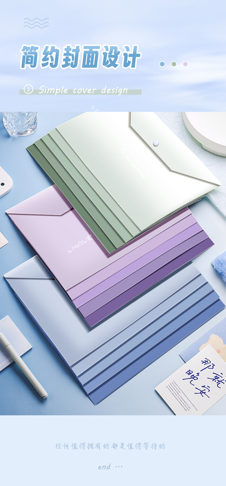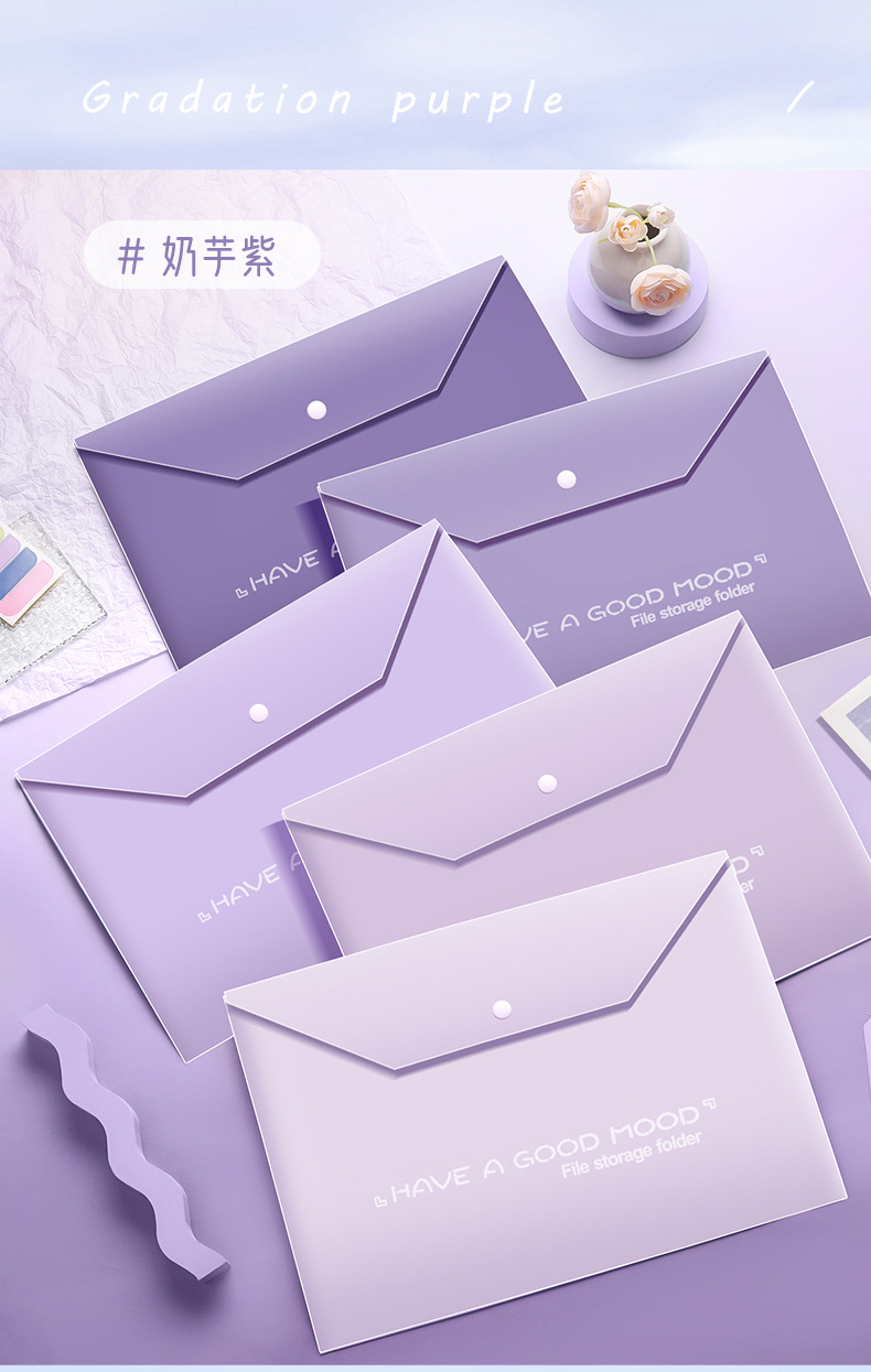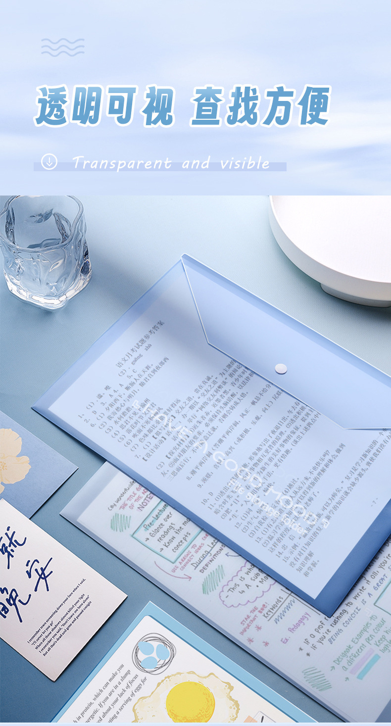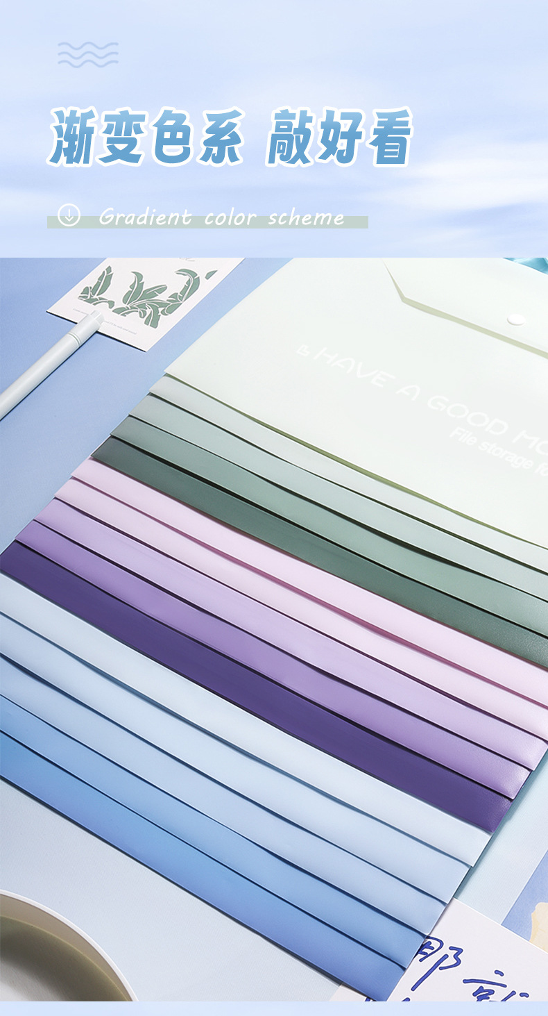 그라디언트 A4 스냅 파일 가방 플라스틱 투명 폴더 두꺼운 파일 가방 사무실 정보 파일 저장 가방스토어 가기