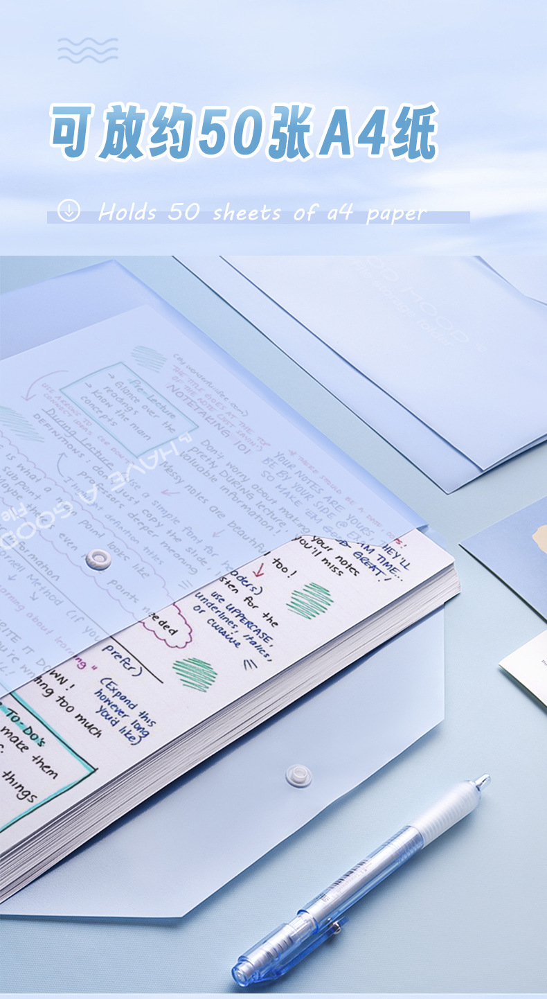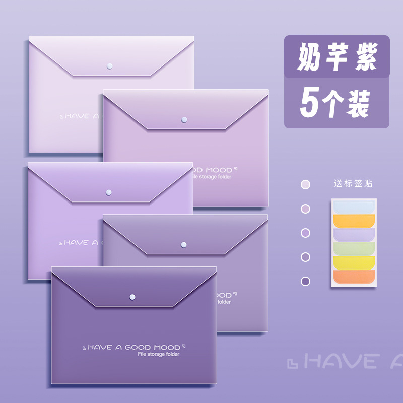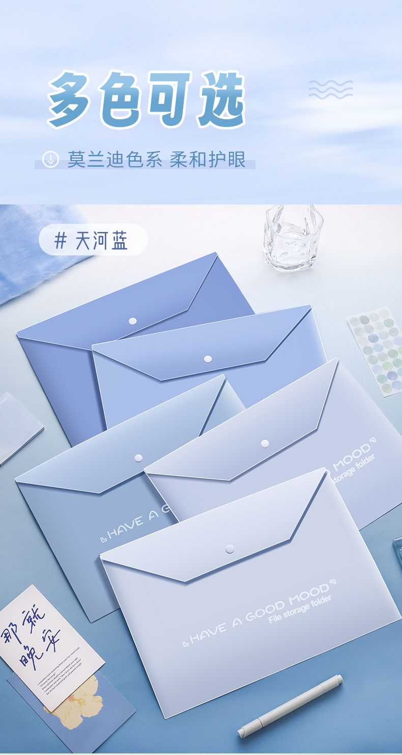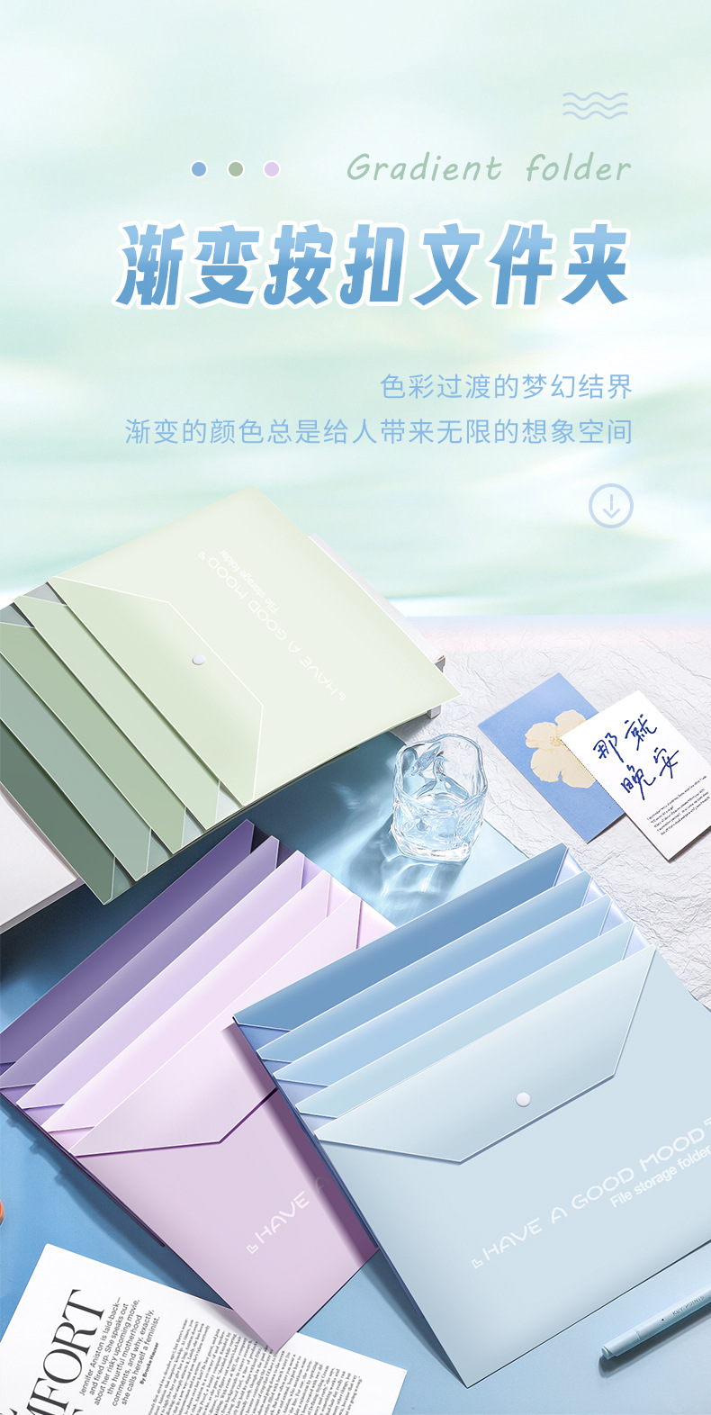 그라디언트 A4 스냅 파일 가방 플라스틱 투명 폴더 두꺼운 파일 가방 사무실 정보 파일 저장 가방스토어 가기