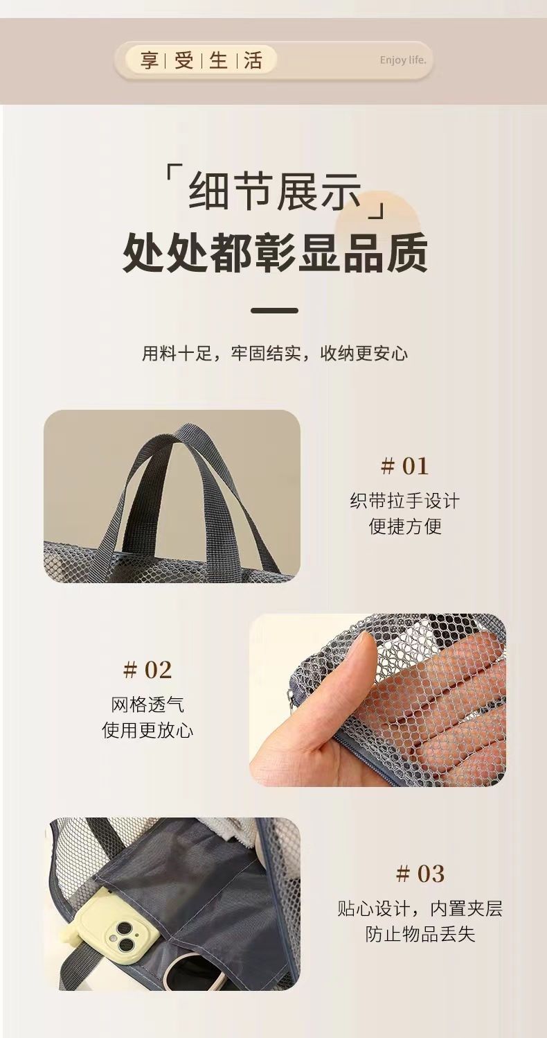 대용량 휴대용 세면도구 가방, 메쉬 통기성 잡화 화장품 세면도구 보관 가방, 야외 여행 필수품스토어 가기