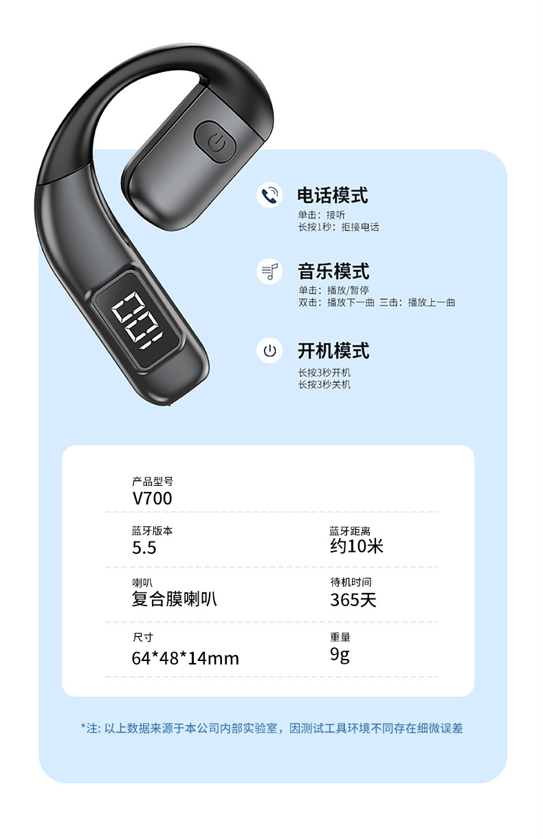 개인 V700 블루투스 헤드셋 귀 착용 파워 디스플레이 스포츠 러닝 안티 땀 안드로이드