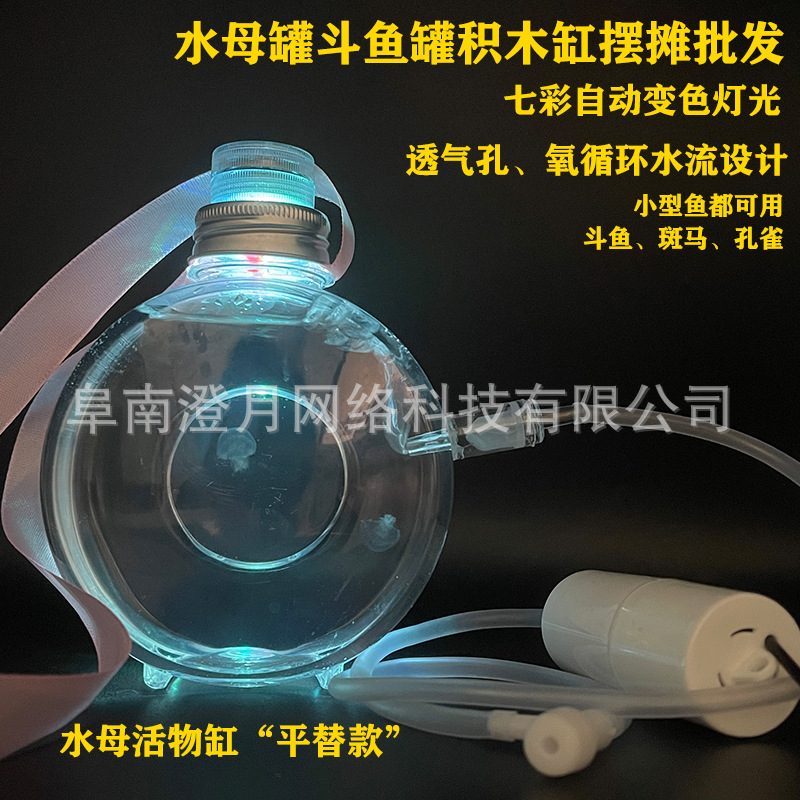 • 운반용 로프 + USB 산소 순환 펌프 + 컬러 조명 또는 백색광 + 편원형 해파리 탱크 + 구멍이 있는 알루미늄 뚜껑