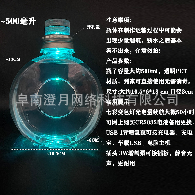 • USB 산소 순환 펌프 + 컬러 조명 또는 백색광 + 편원형 해파리 탱크 + 구멍이 있는 알루미늄 뚜껑