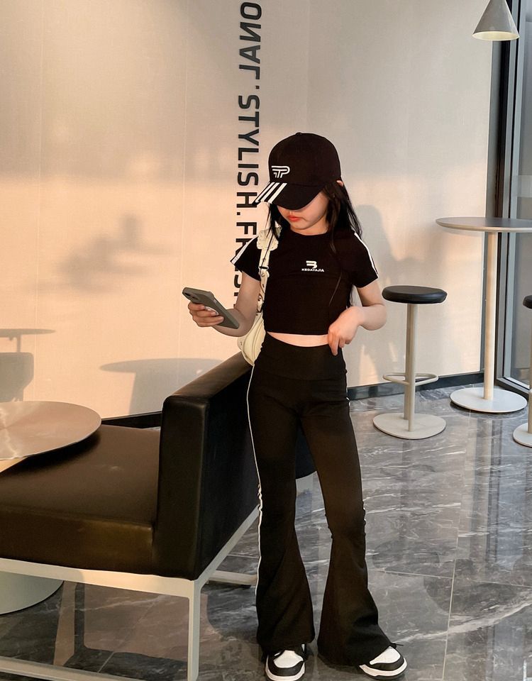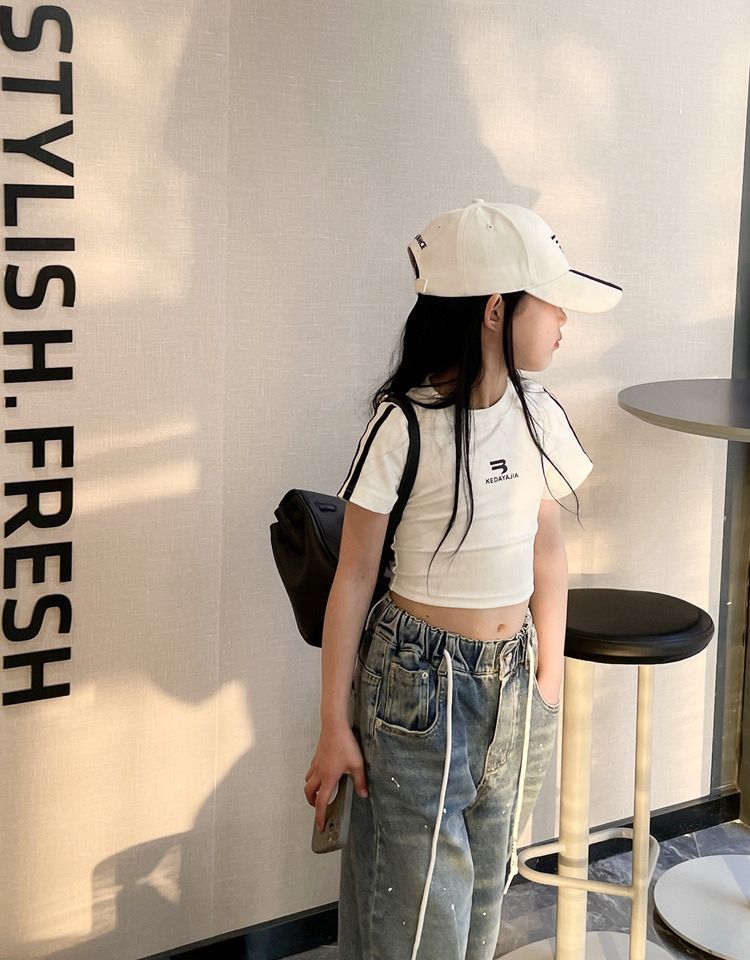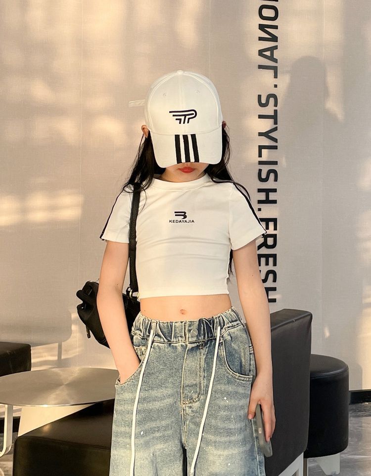 2024 여름 어린이 착용 달콤한 쿨 소녀의 슬림 핏 짧은 코튼 티셔츠 유행 어머니-딸 Parin-child 착용 반팔 최고 트렌디