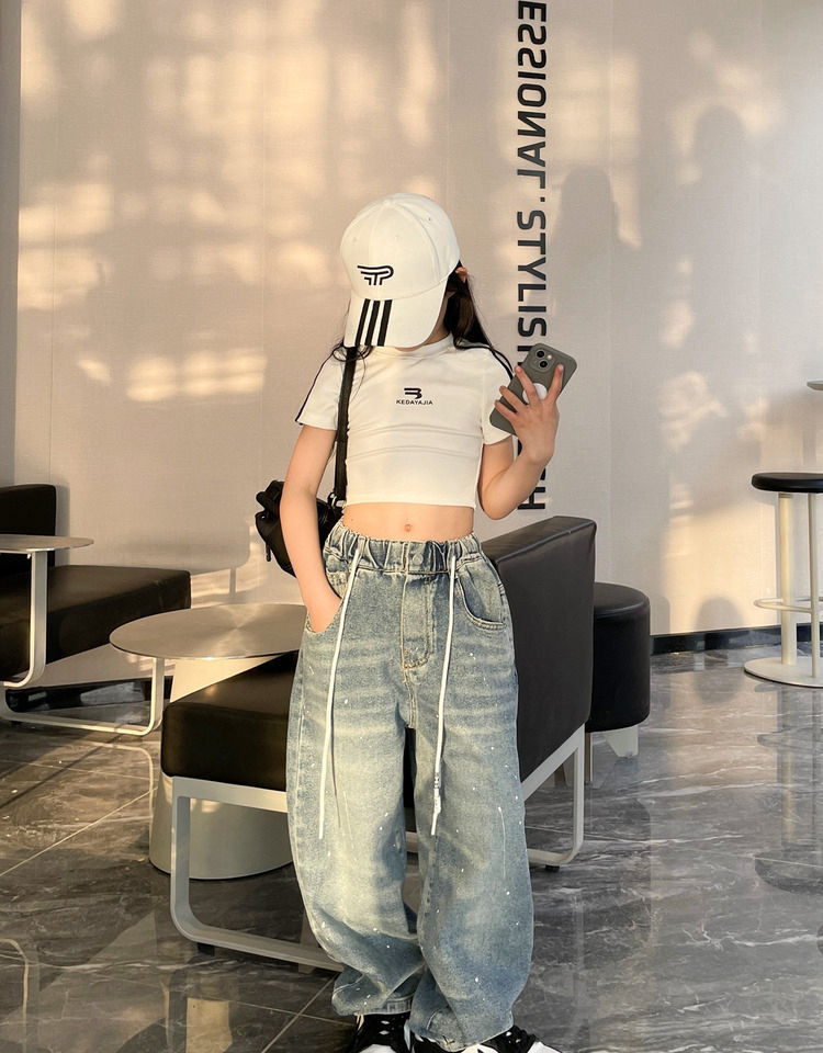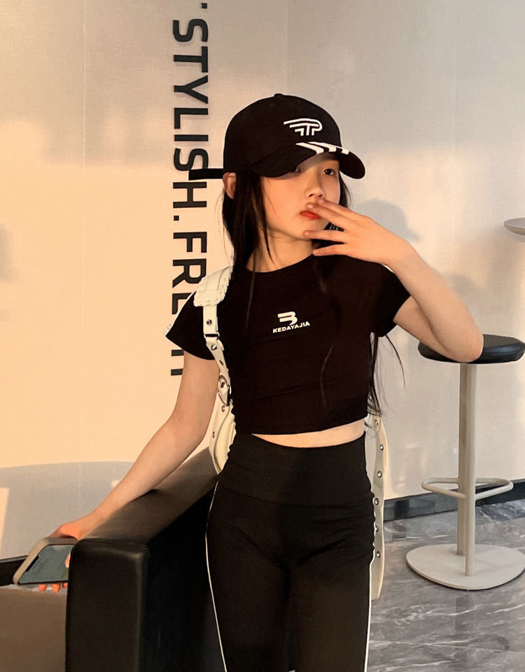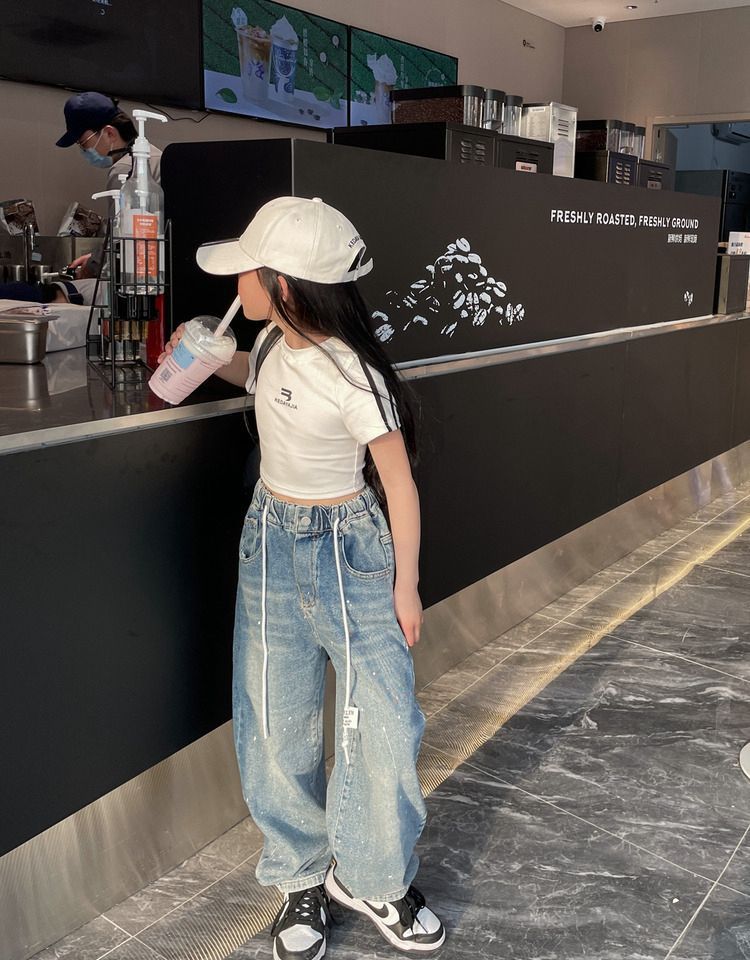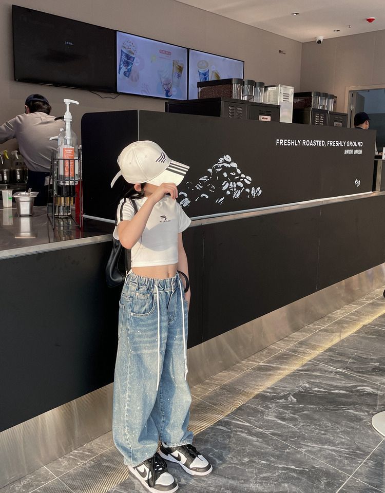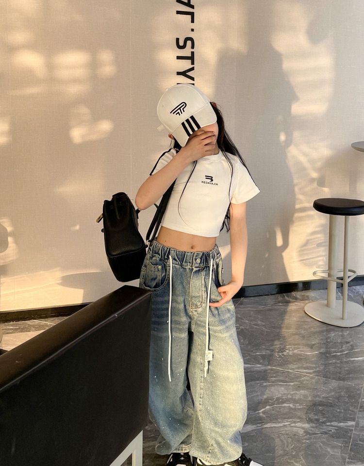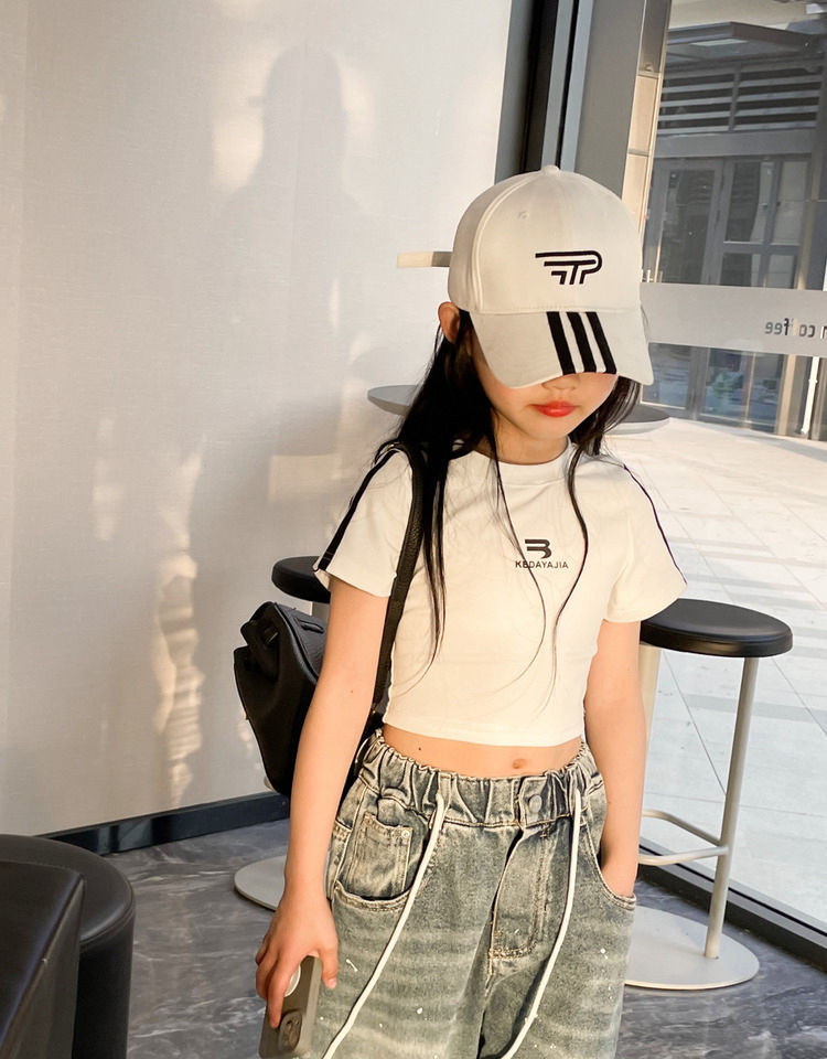 2024 여름 어린이 착용 달콤한 쿨 소녀의 슬림 핏 짧은 코튼 티셔츠 유행 어머니-딸 Parin-child 착용 반팔 최고 트렌디스토어 가기