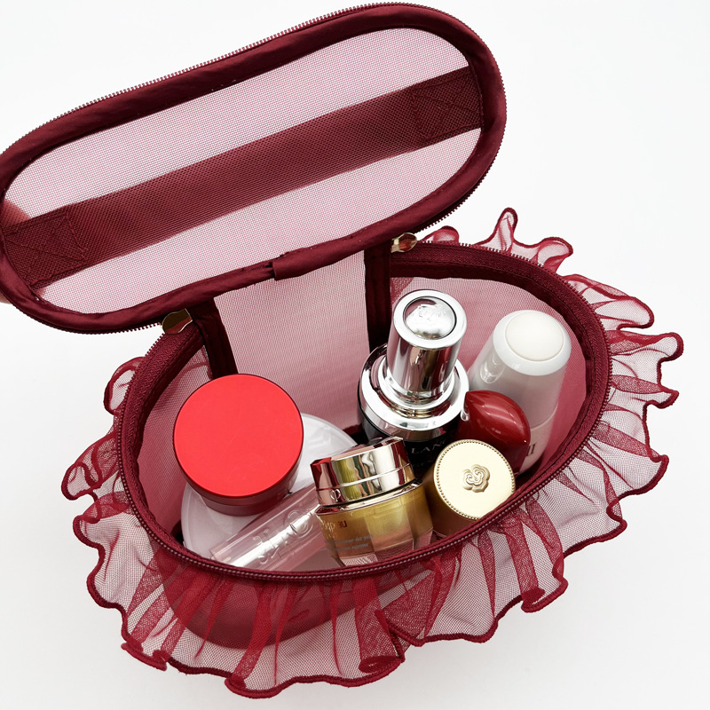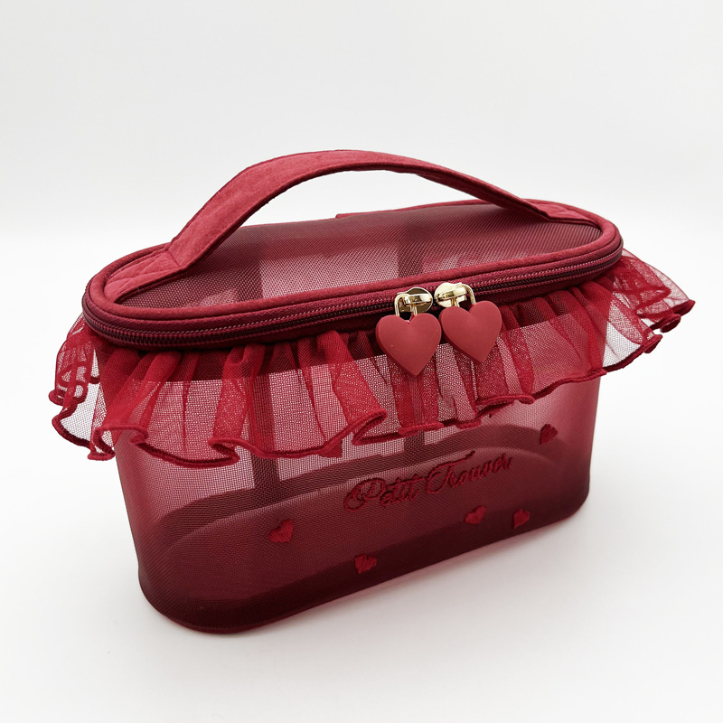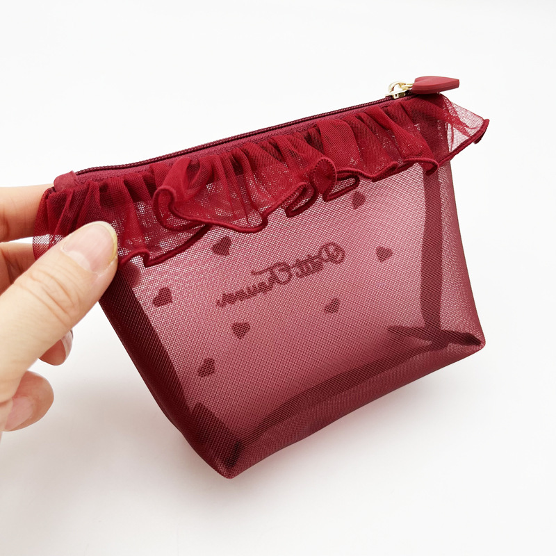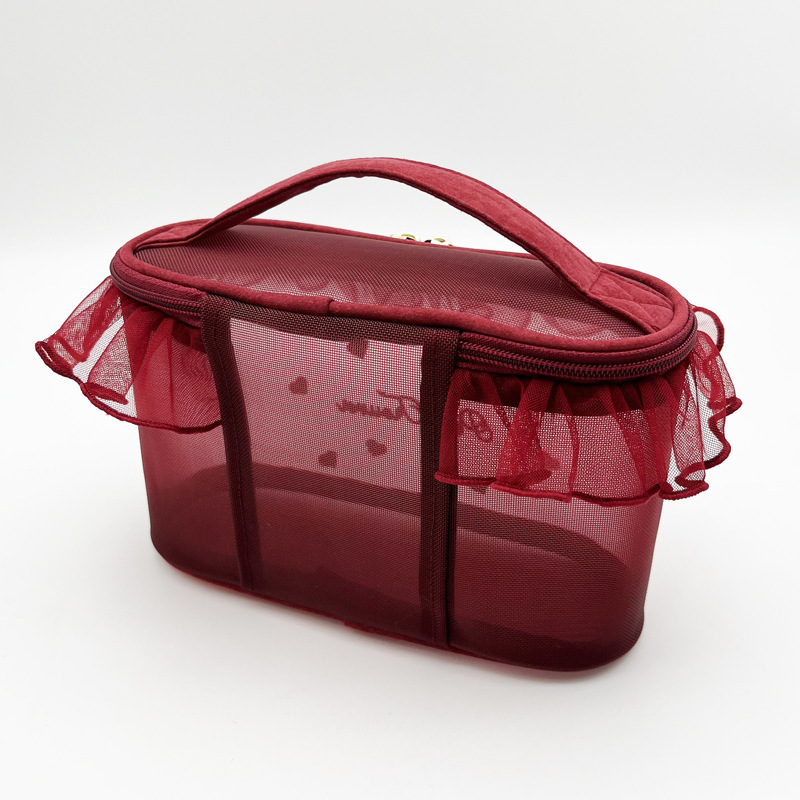 • 메쉬 레이스 휴대용 화장품 가방 (레드)