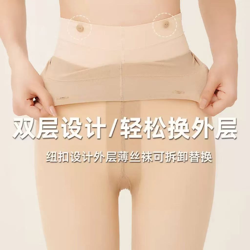 하드루시 신상품 이중 레이어 탈부착 가능한 레그 웨어 가을 겨울 여성용 기모 두꺼운 누드감 팬티스타킹스토어 가기