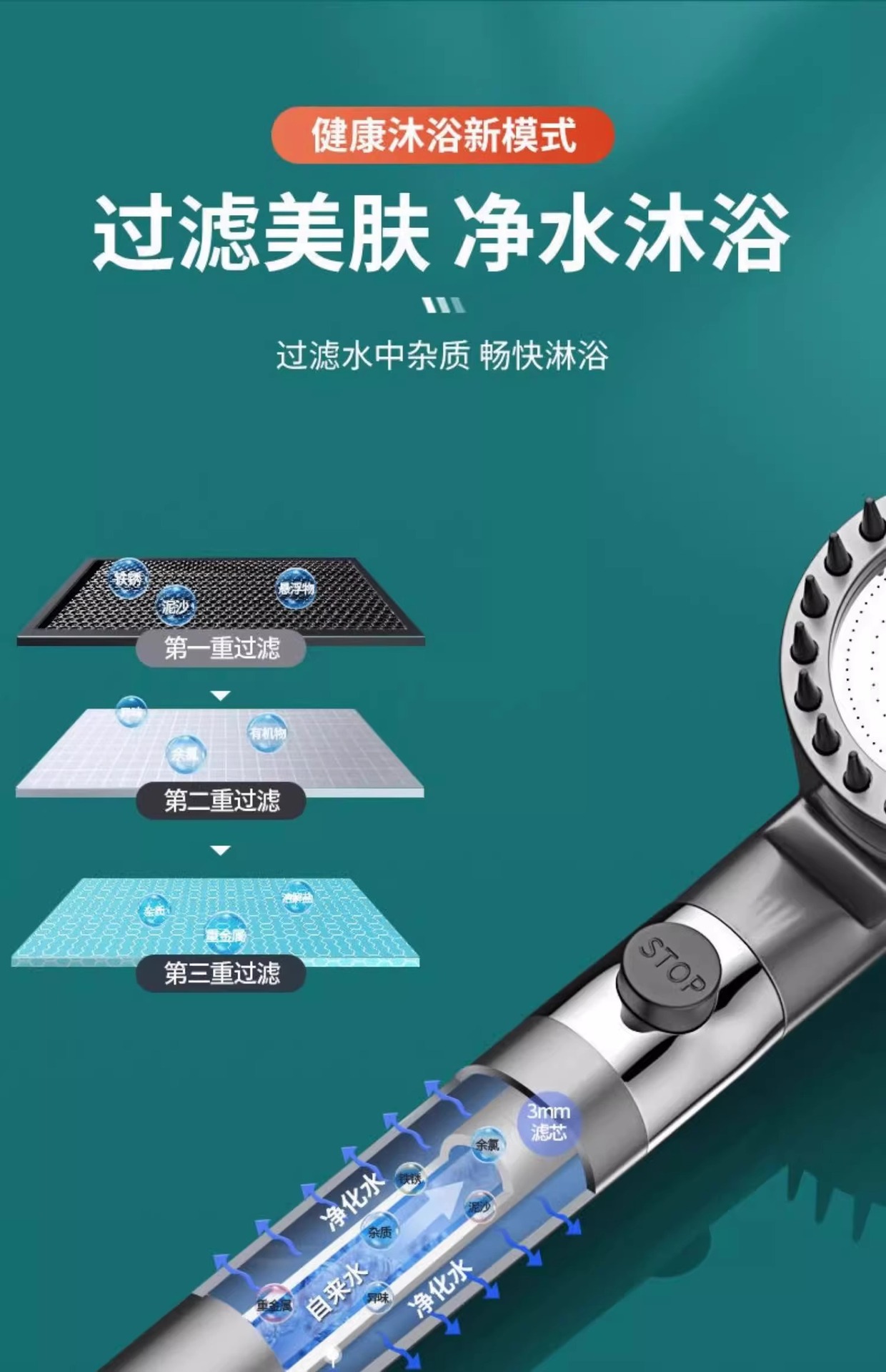 • [슈퍼차징 및 피부에 해롭지 않음] 건애쉬 마사지 필터 샤워 헤드(마사지 실리콘 브러시 포함)