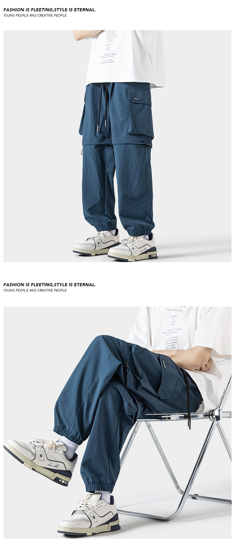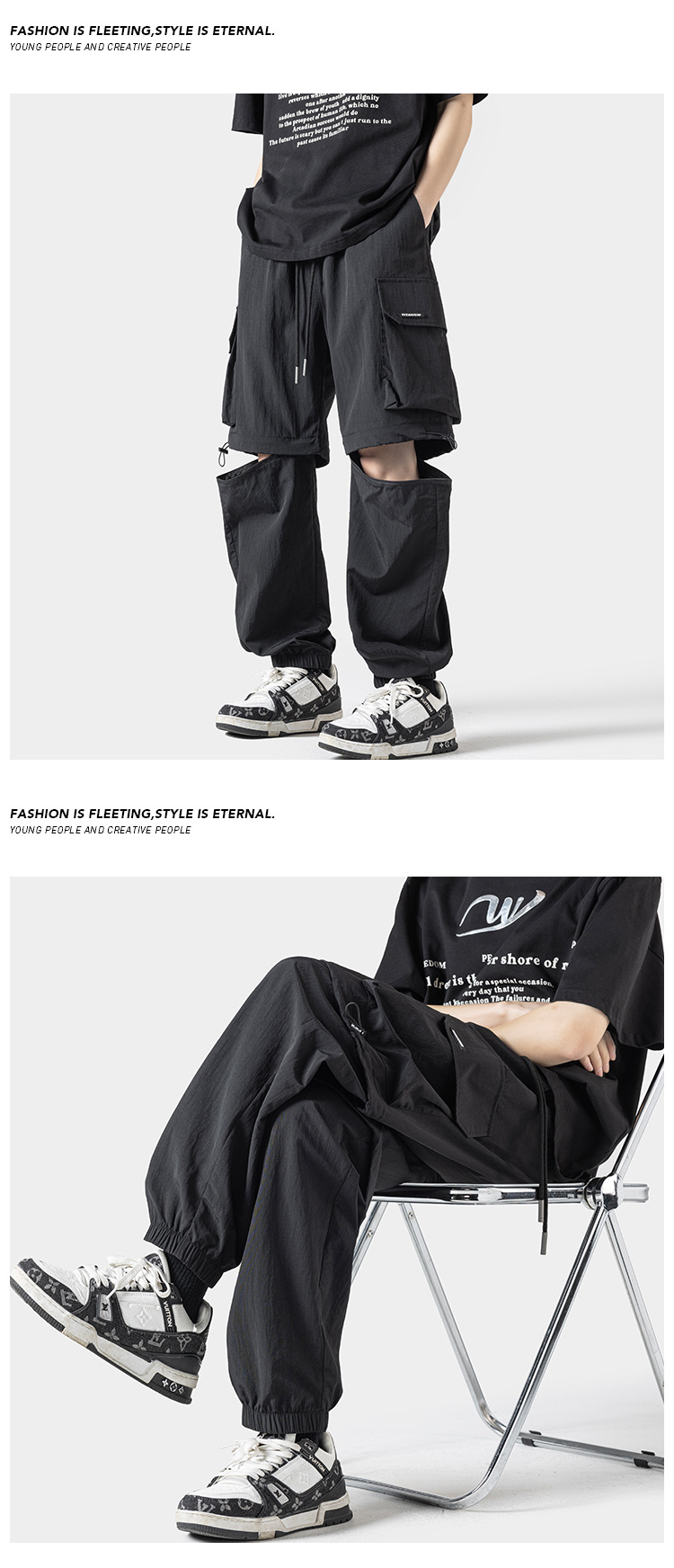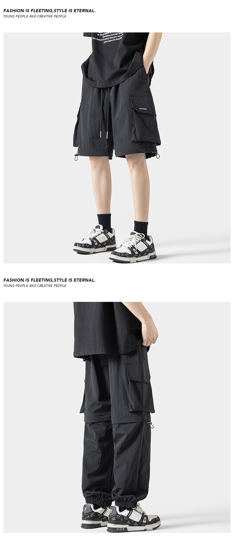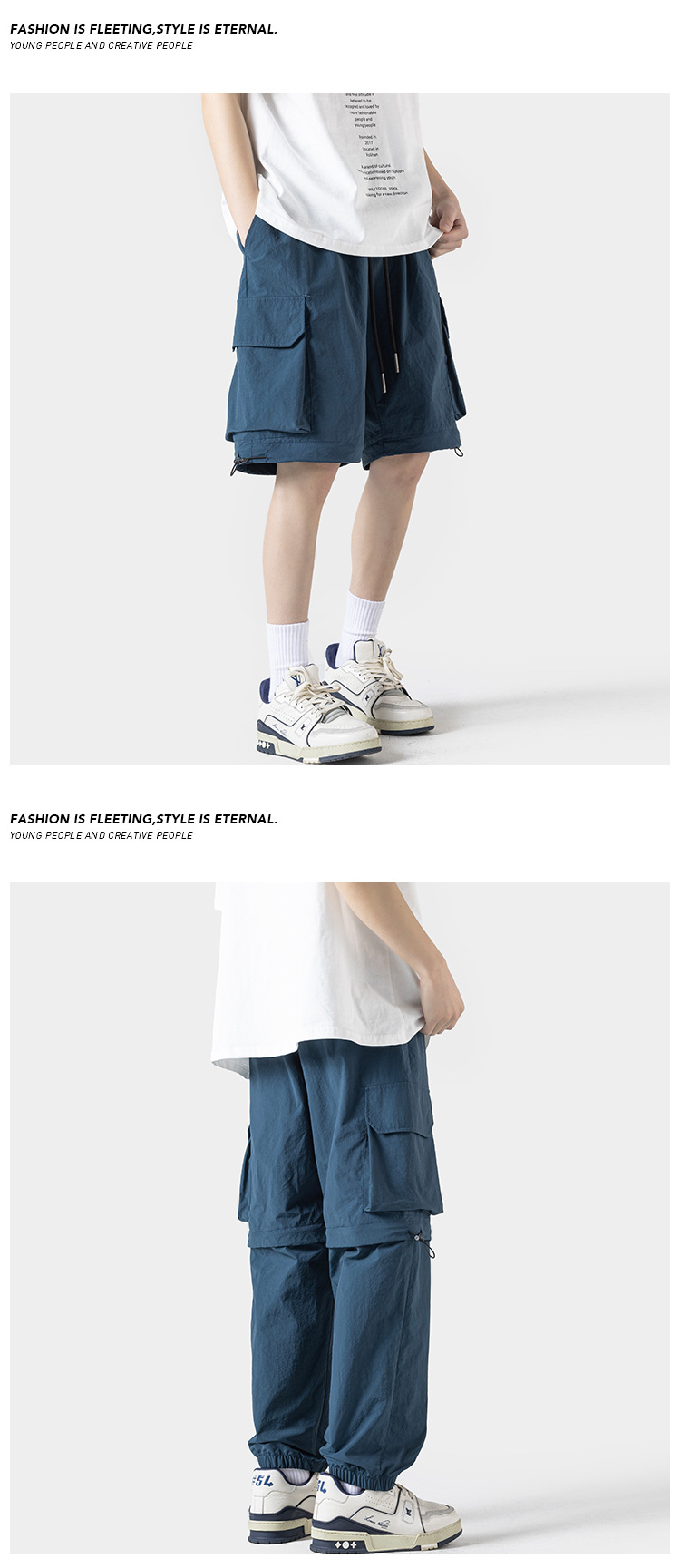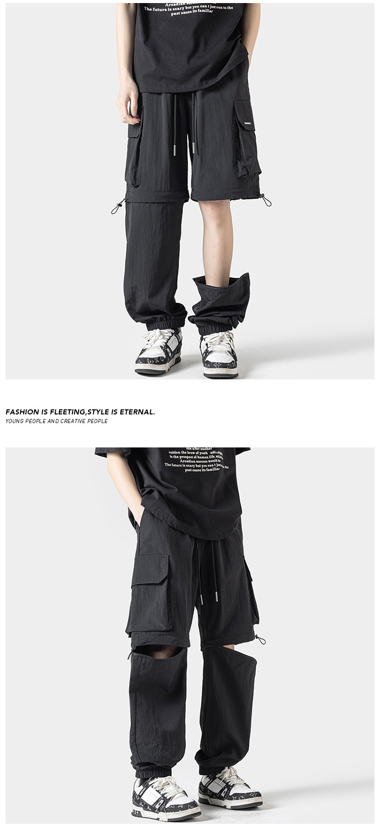 봄 및 여름에 야외 스포츠를위한 새로운 스타일 충전 바지 분리 가능한 투웨어 바지 스트레이트 레그 번치 반바지 학생 남성