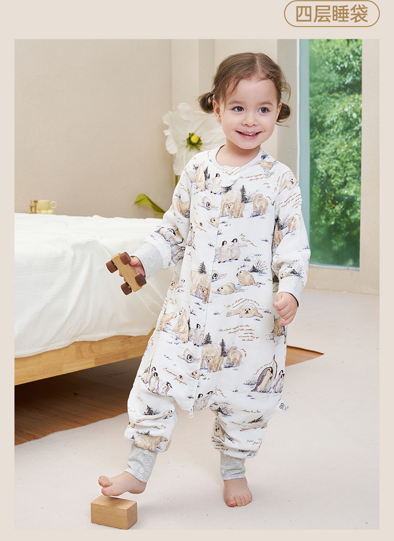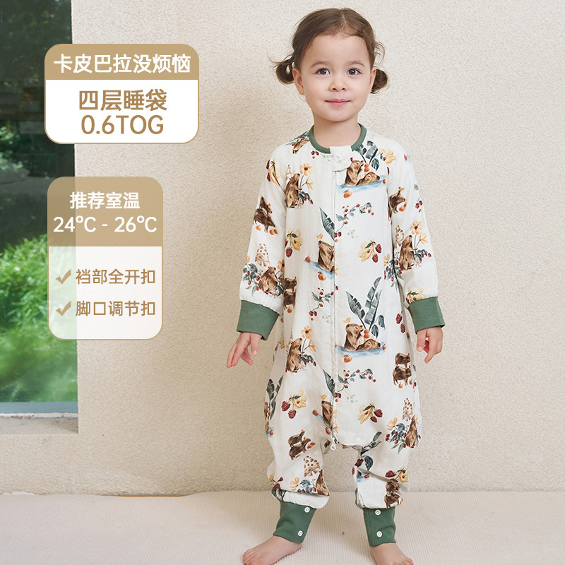 안단 봄가을 신상 아기 침낭 6겹 대나무 면 거즈 분리형 다리형 아기 사계절 어린이 침낭 발차기 방지 이불스토어 가기