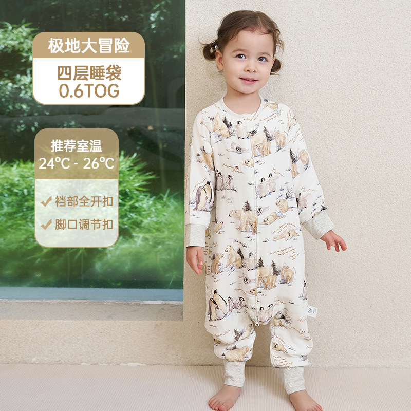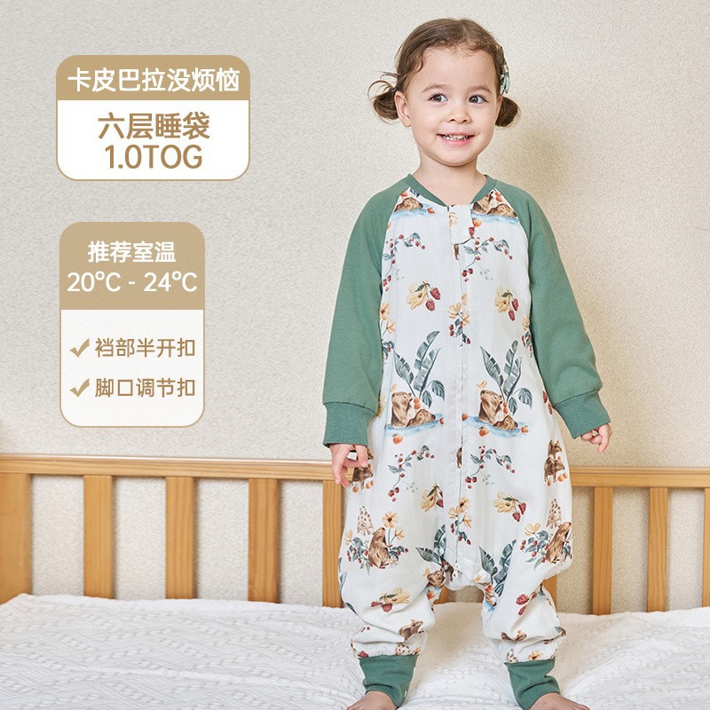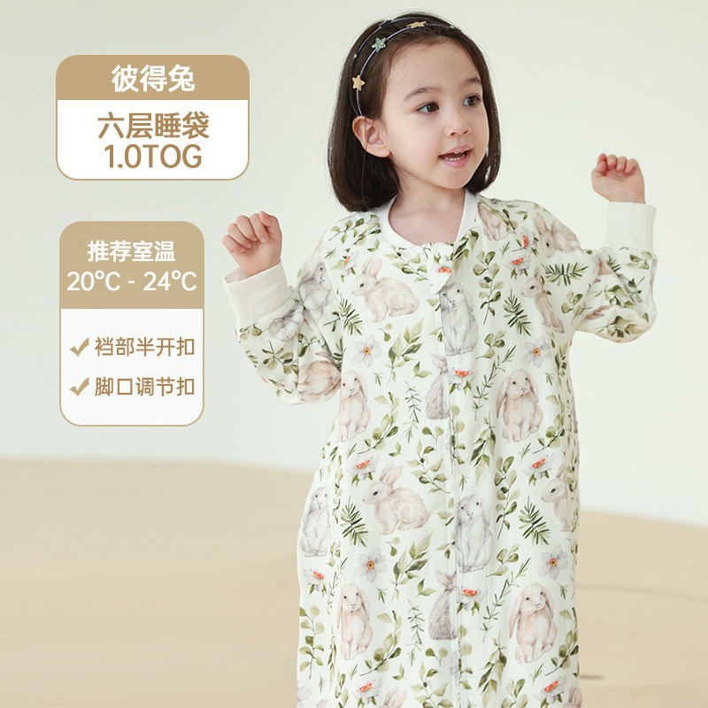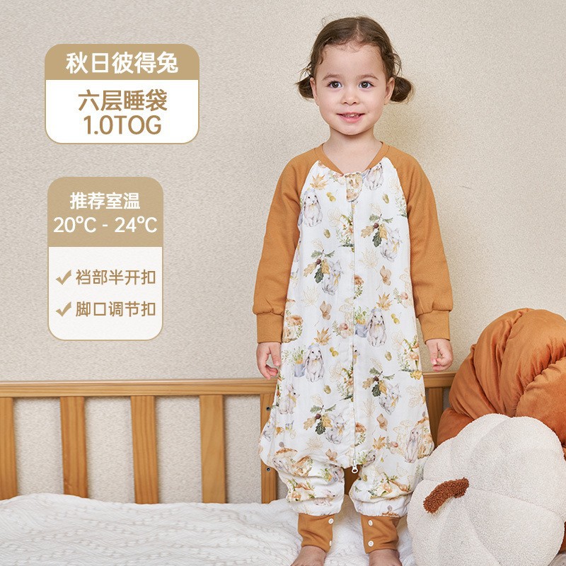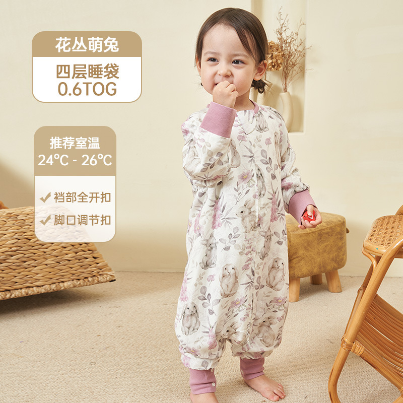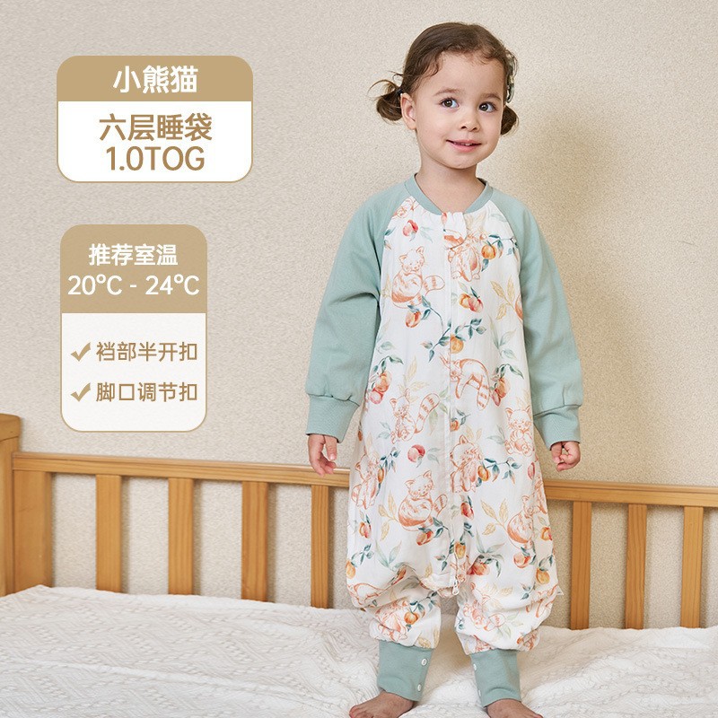 안단 봄가을 신상 아기 침낭 6겹 대나무 면 거즈 분리형 다리형 아기 사계절 어린이 침낭 발차기 방지 이불