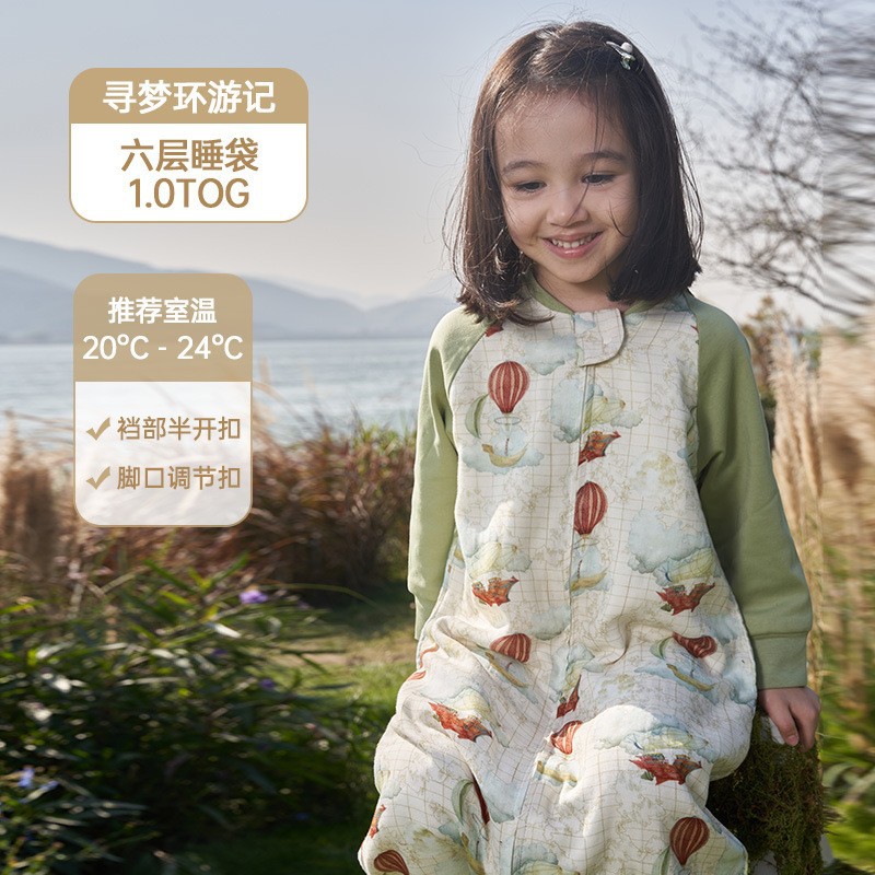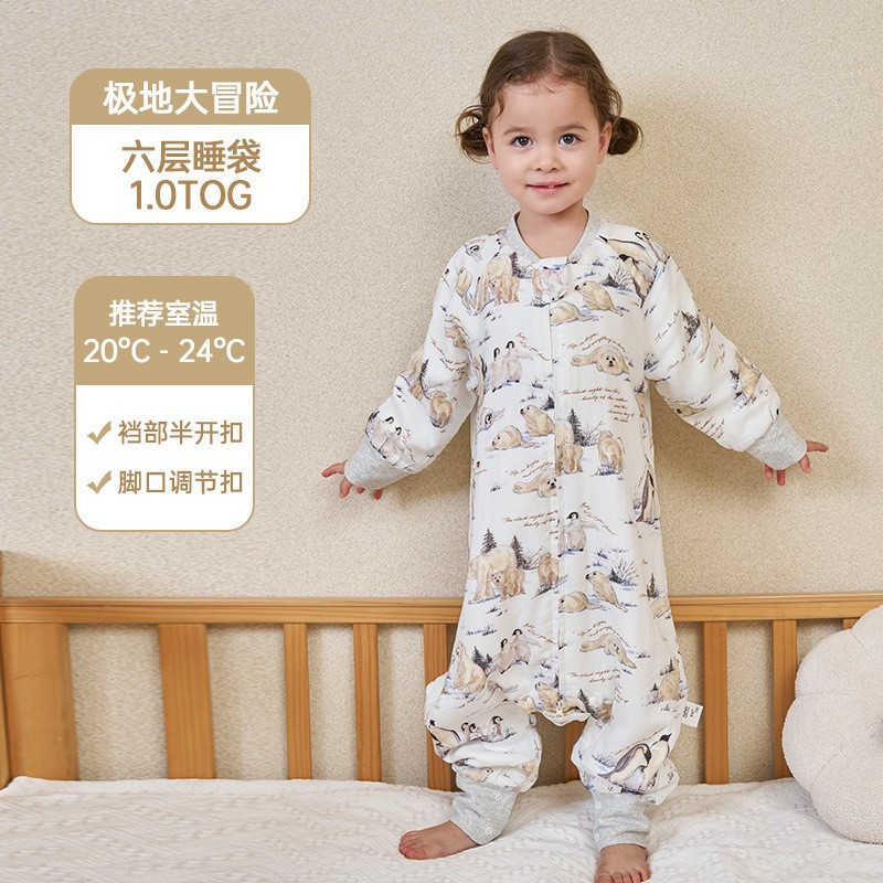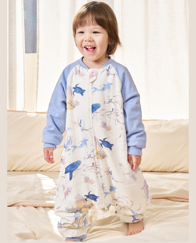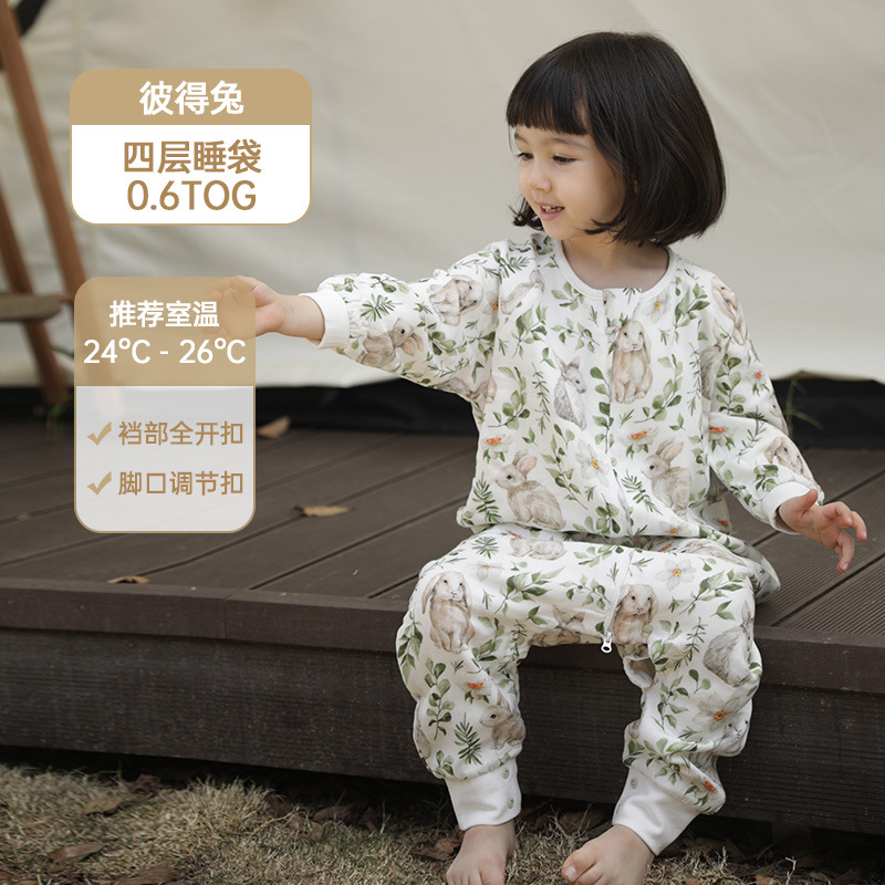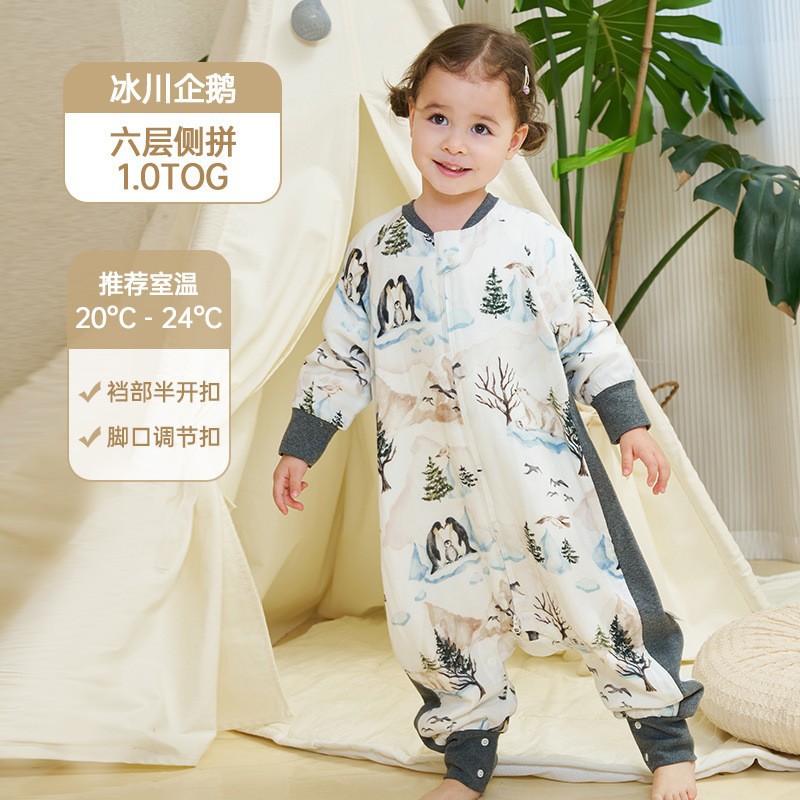 안단 봄가을 신상 아기 침낭 6겹 대나무 면 거즈 분리형 다리형 아기 사계절 어린이 침낭 발차기 방지 이불