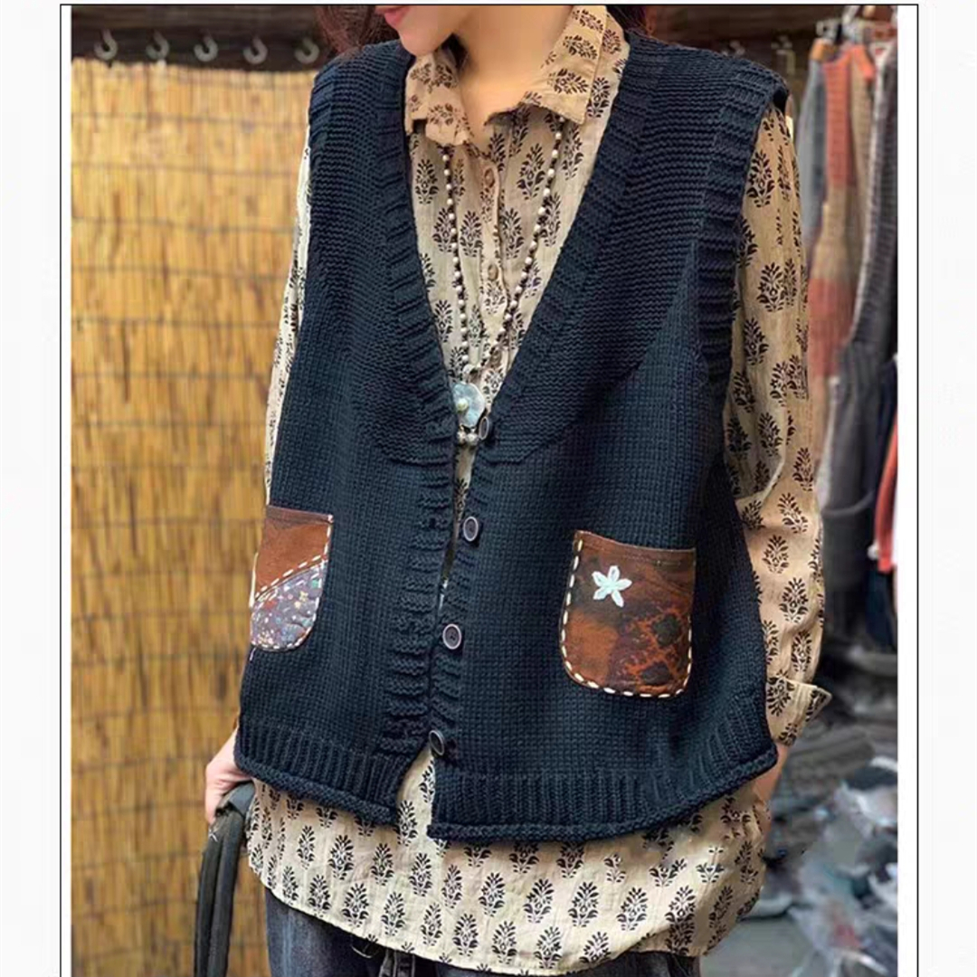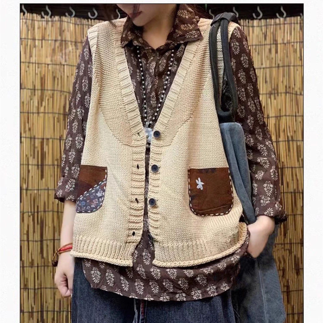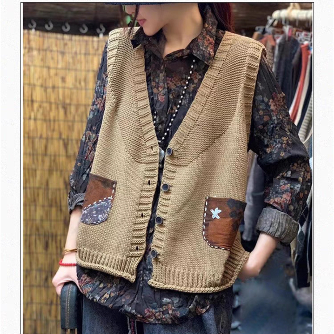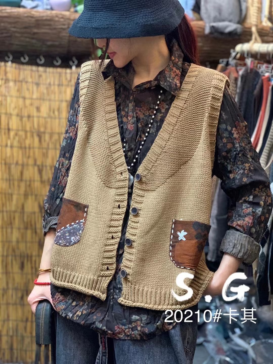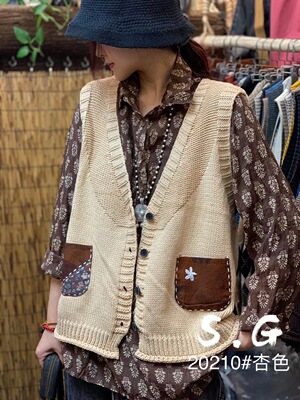 2022 신상 브이넥 니트 조끼 슬림핏 민소매 탑 솔리드 컬러 레트로 다용도 여성 가을 레트로 스타일스토어 가기