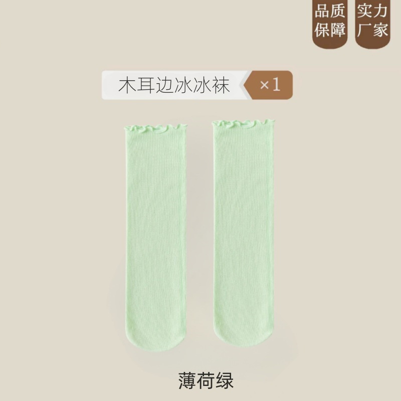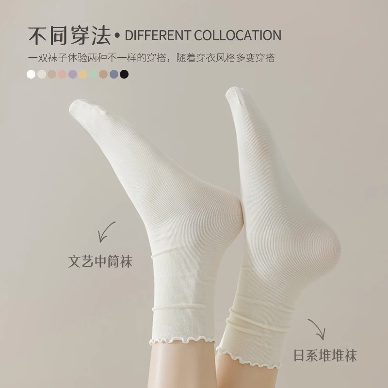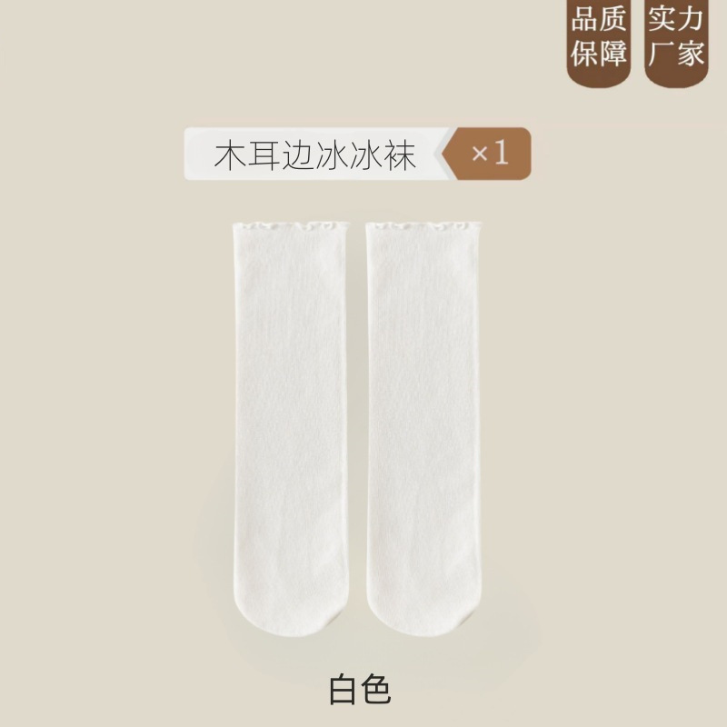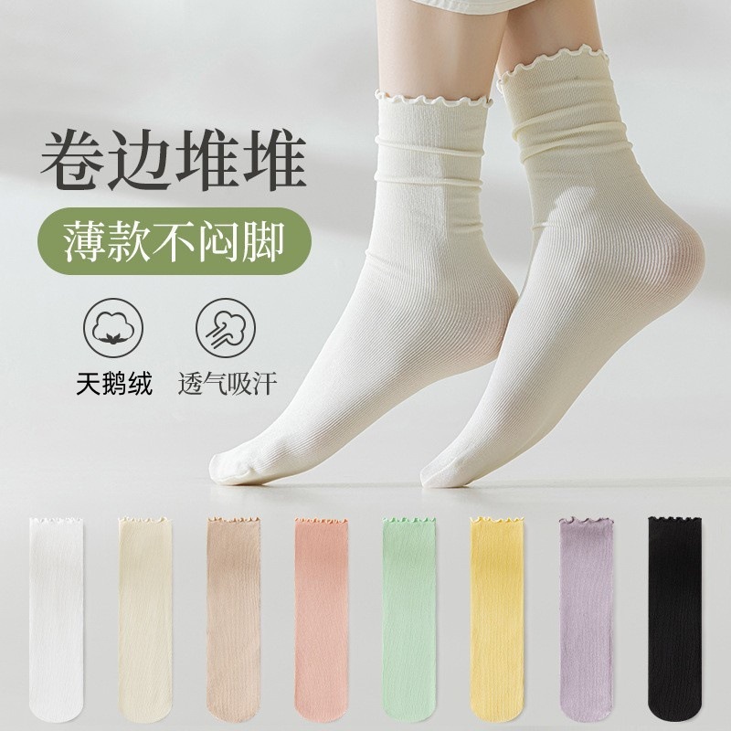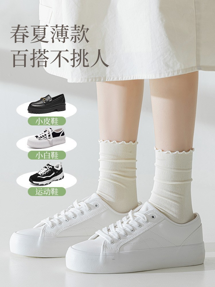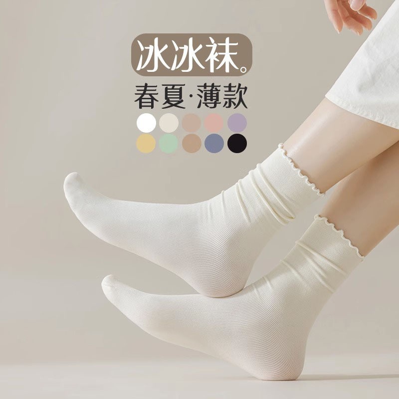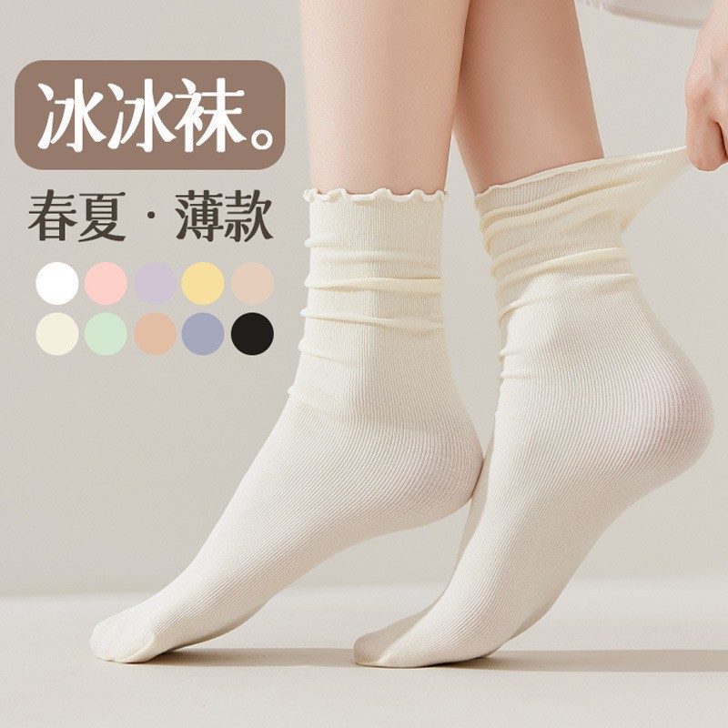 여름 얇은 얼음 양말 우드 이어 사이드 양말 여성용 스택 양말 벨벳 레이스 양말 일본 캔디 컬러 중간 길이 양말