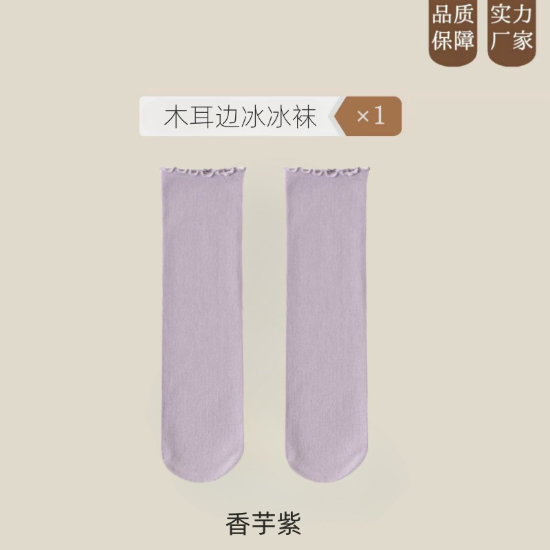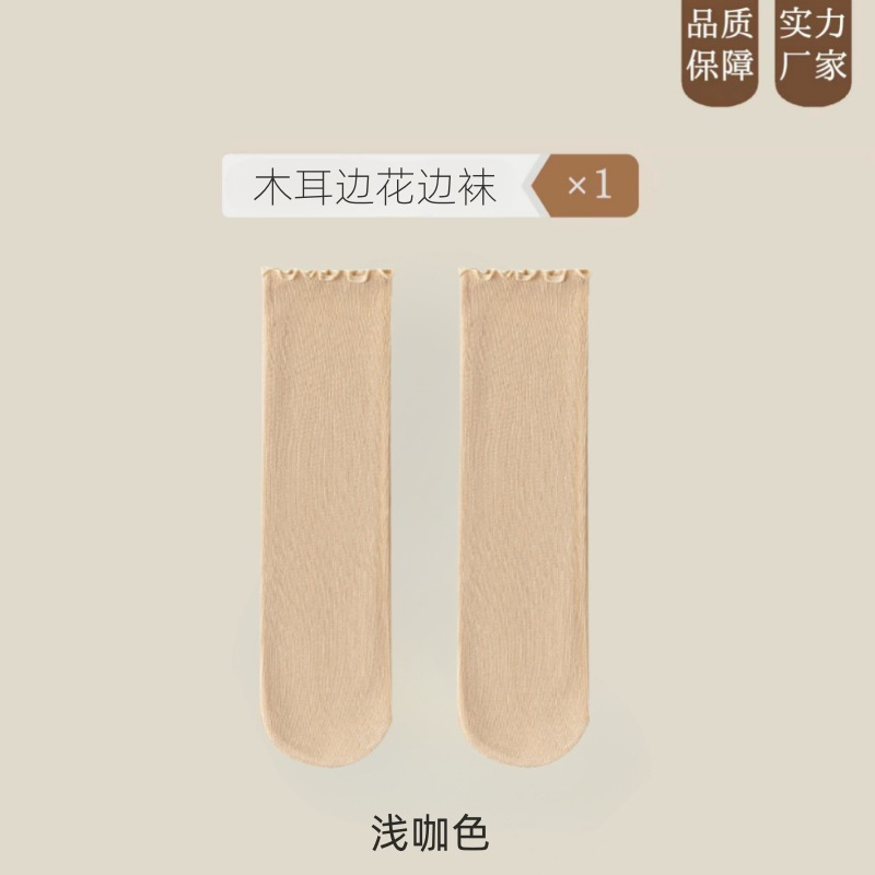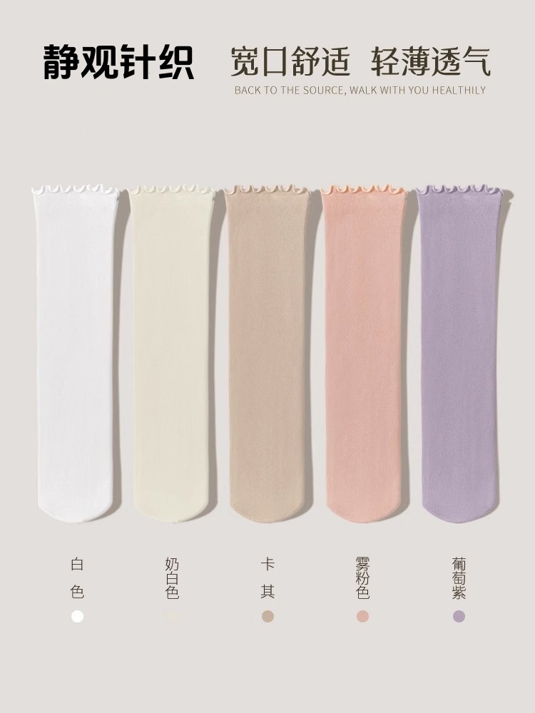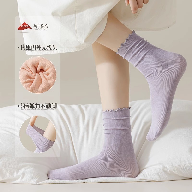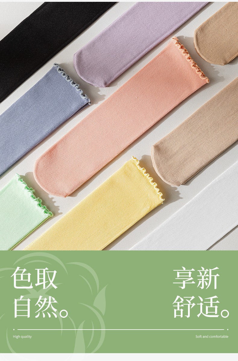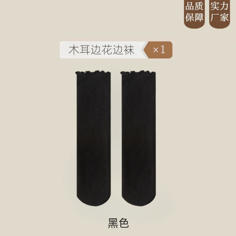 여름 얇은 얼음 양말 우드 이어 사이드 양말 여성용 스택 양말 벨벳 레이스 양말 일본 캔디 컬러 중간 길이 양말
